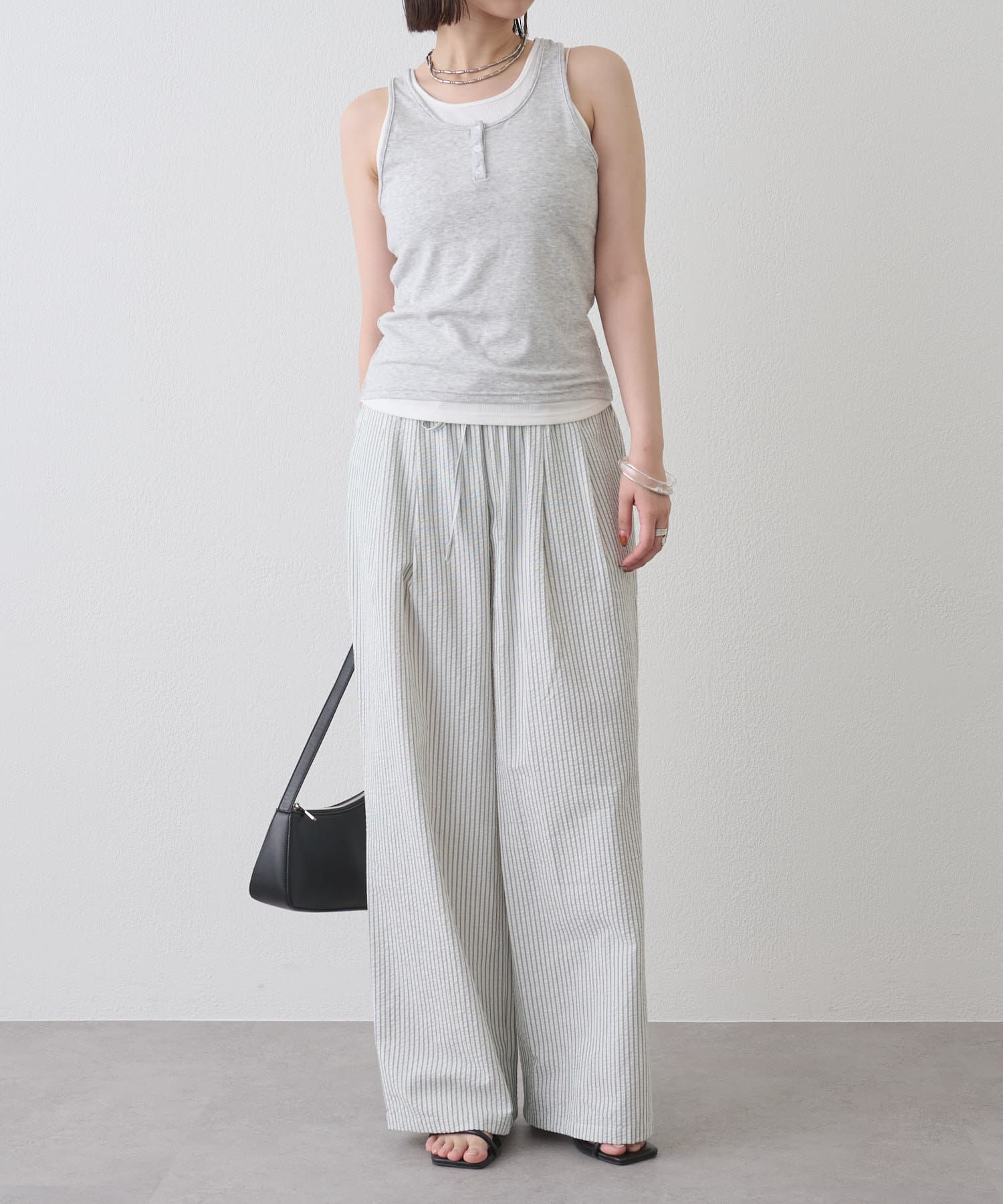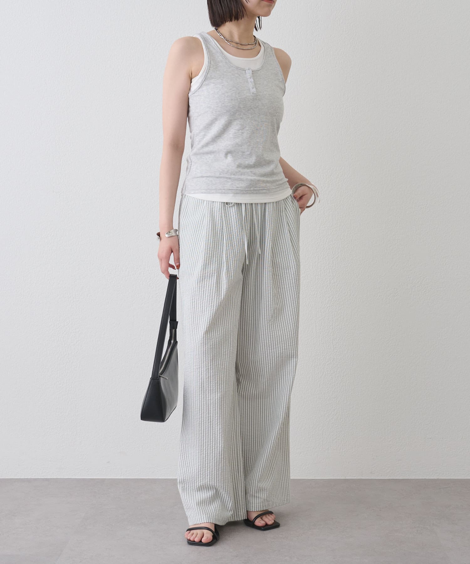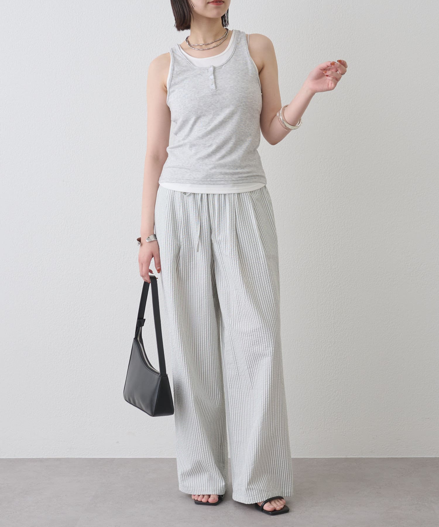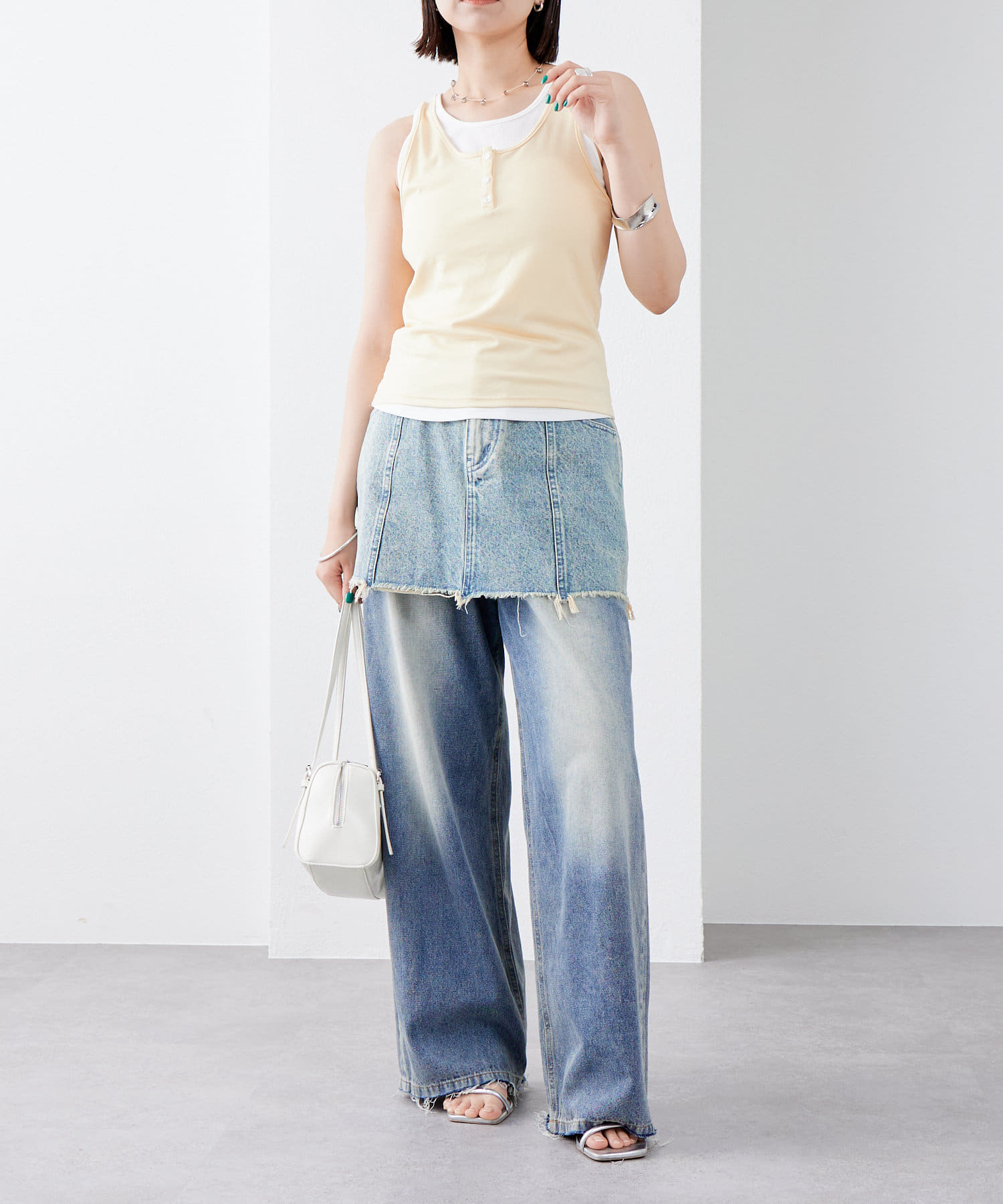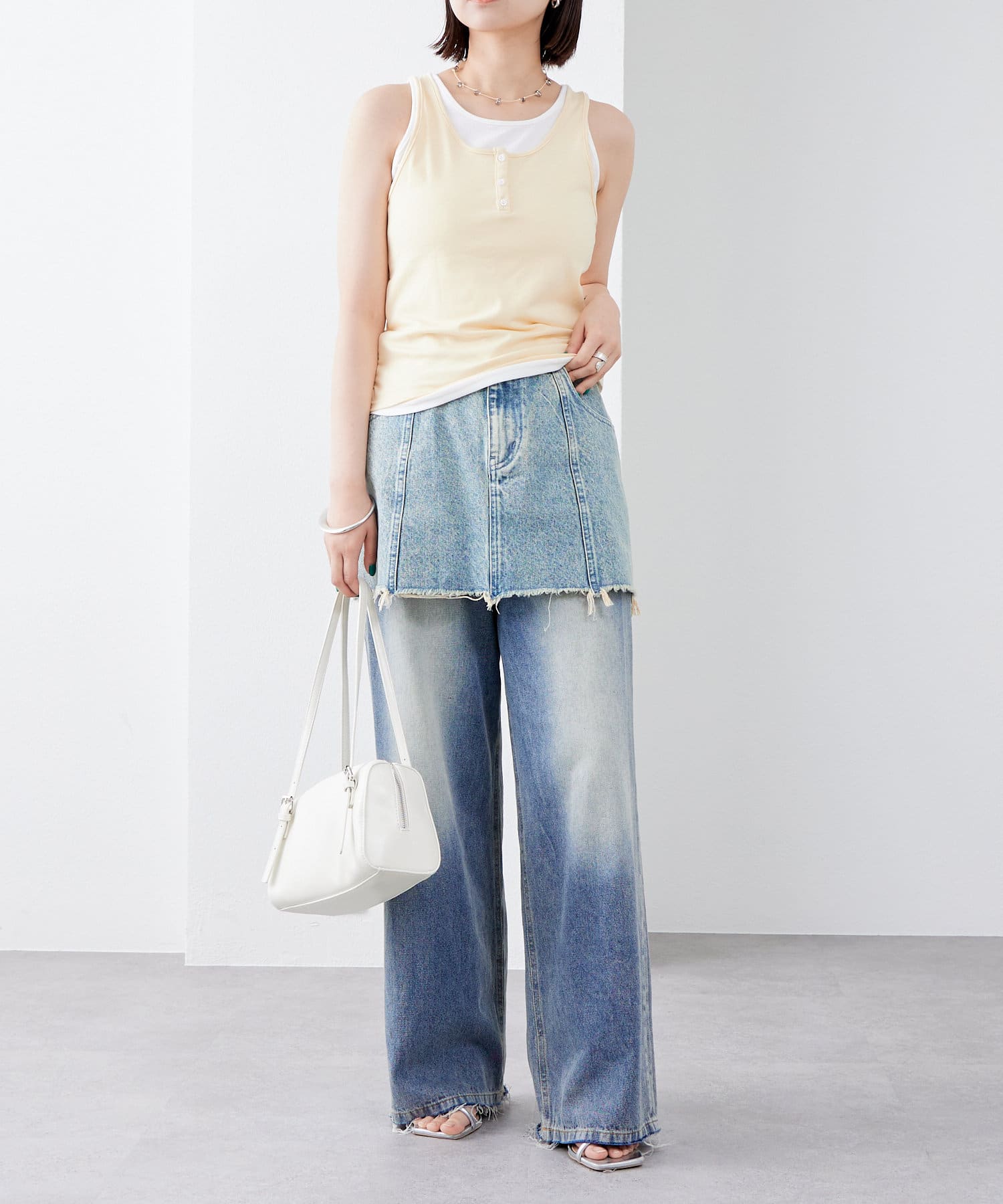 レイヤードデザインでシンプルになりすぎず、こなれ感が与えてくれるタンク◎