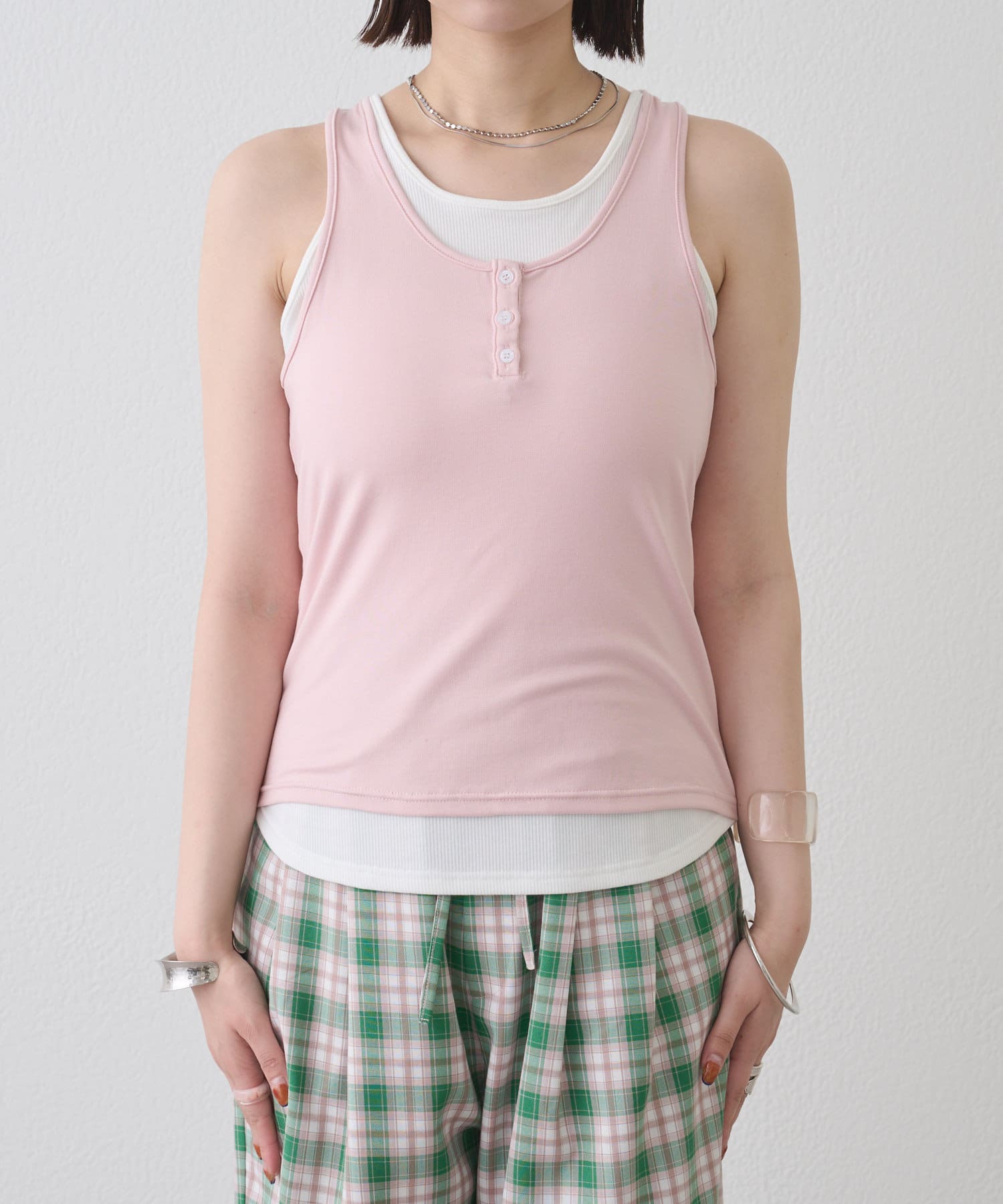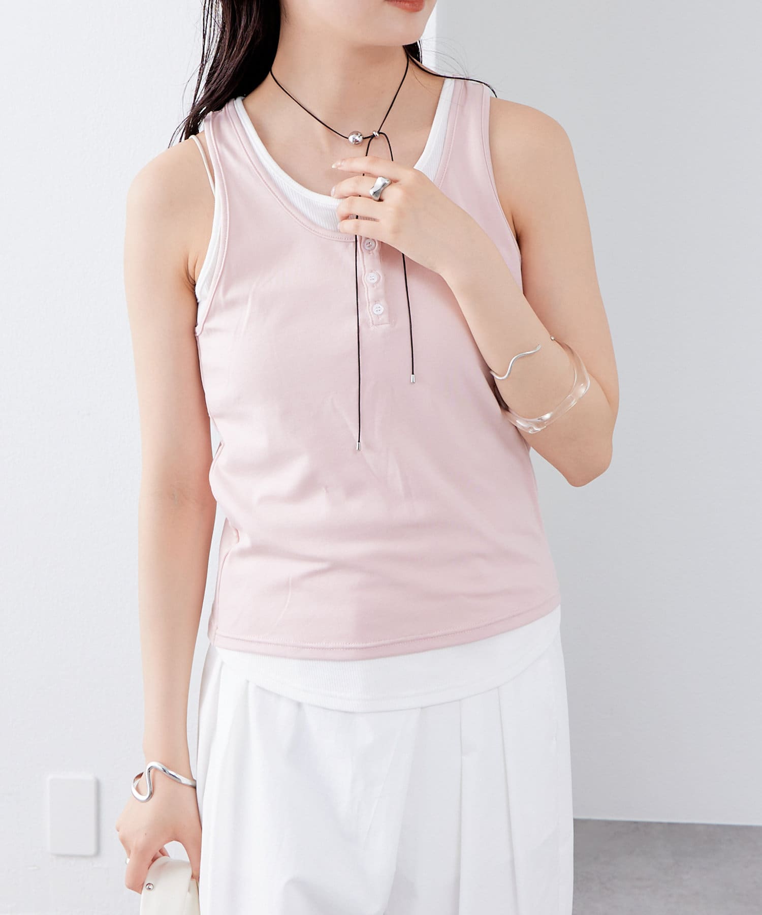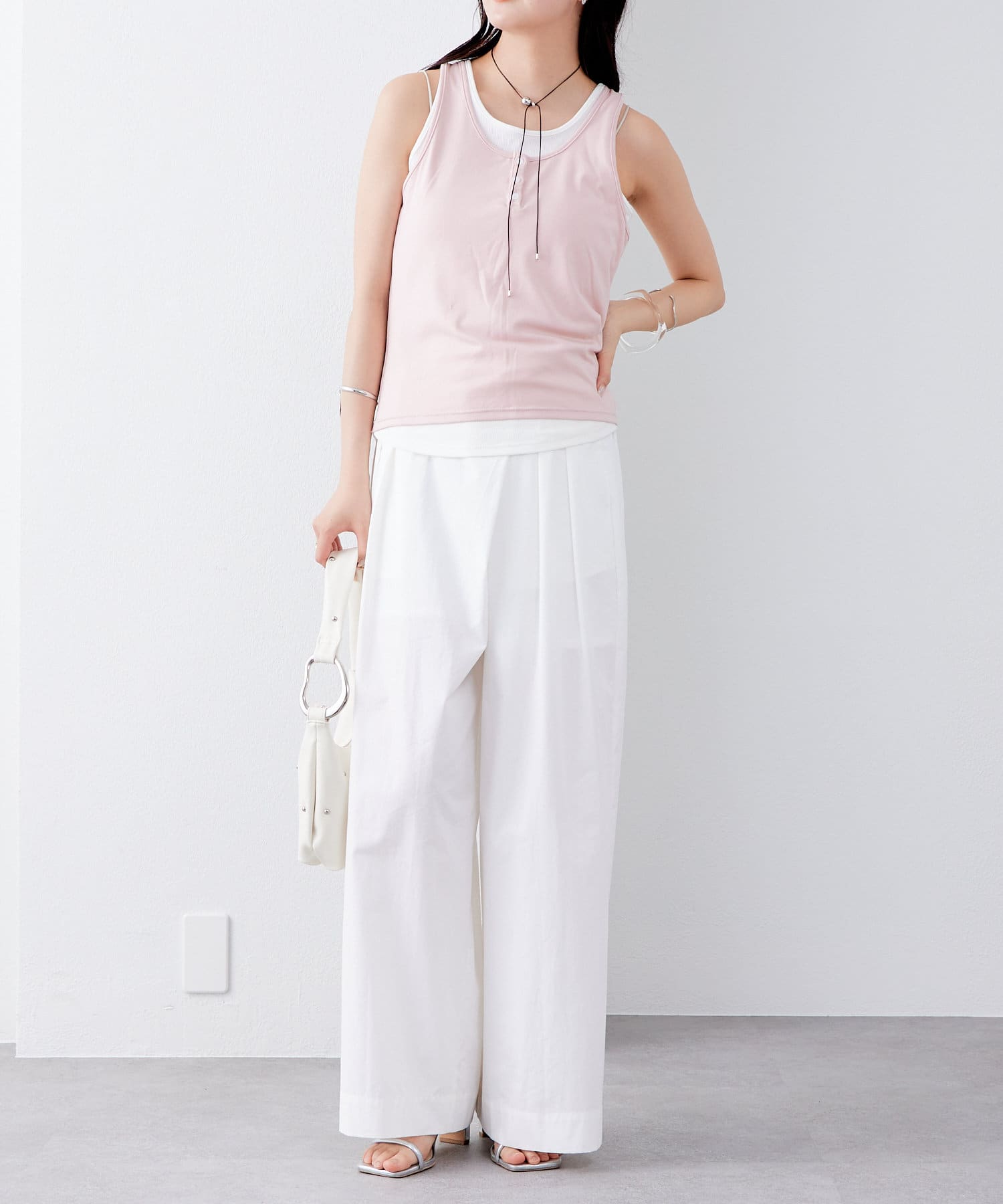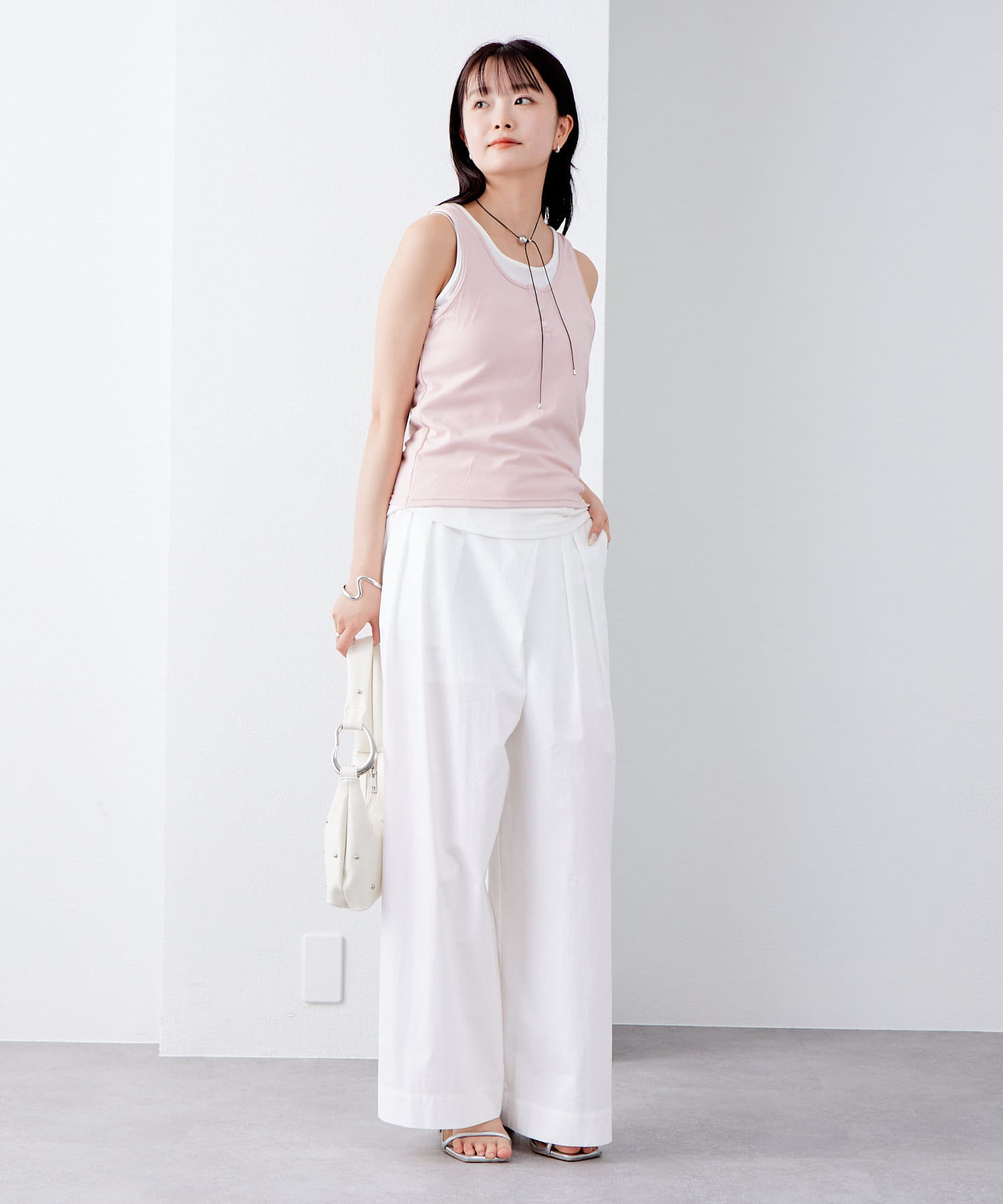 カラーのタンクトップとホワイトのタンクトップのレイヤードが他にはない可愛さです。
