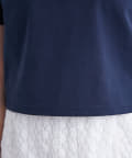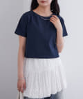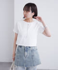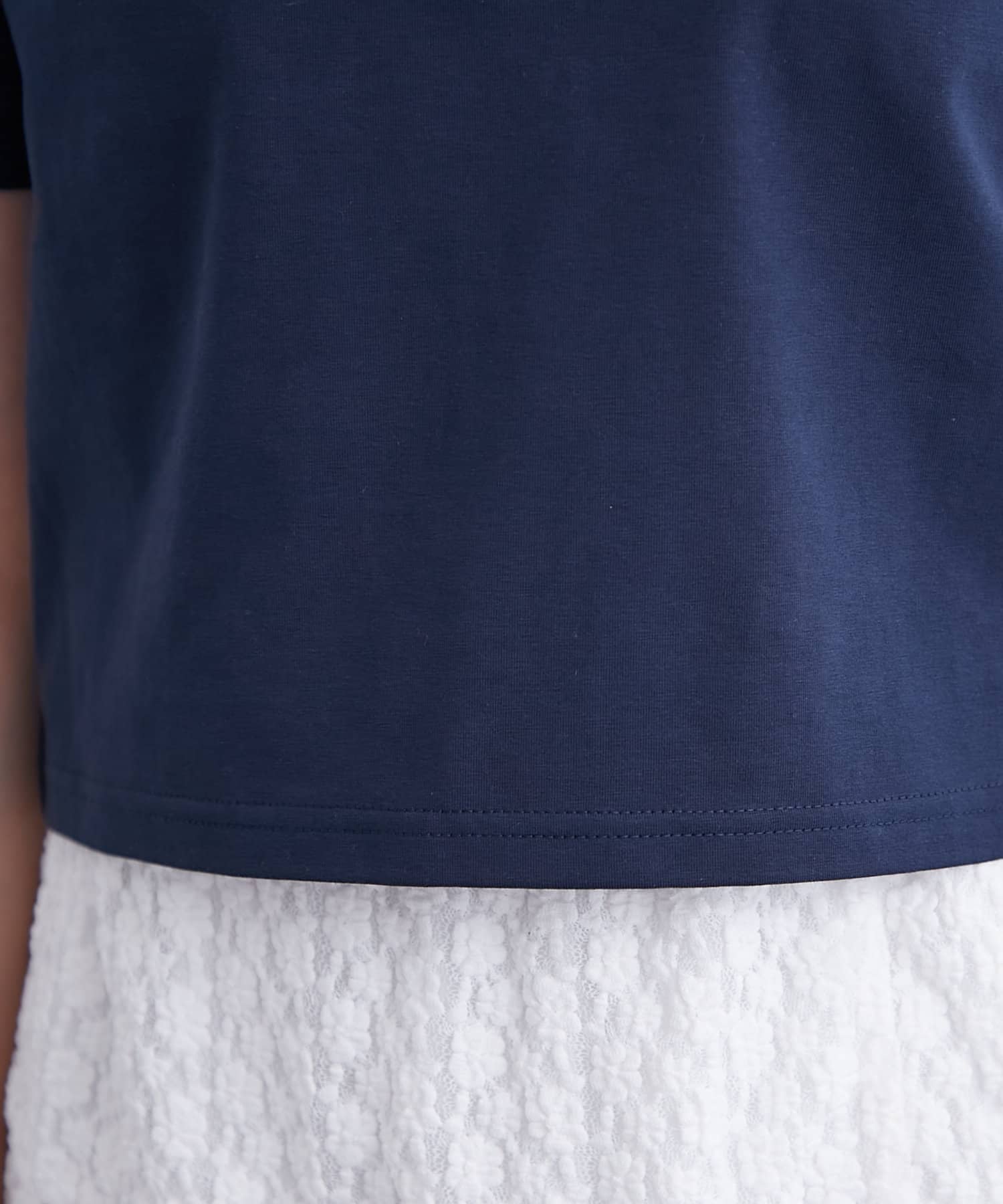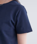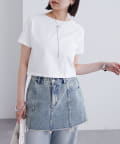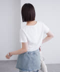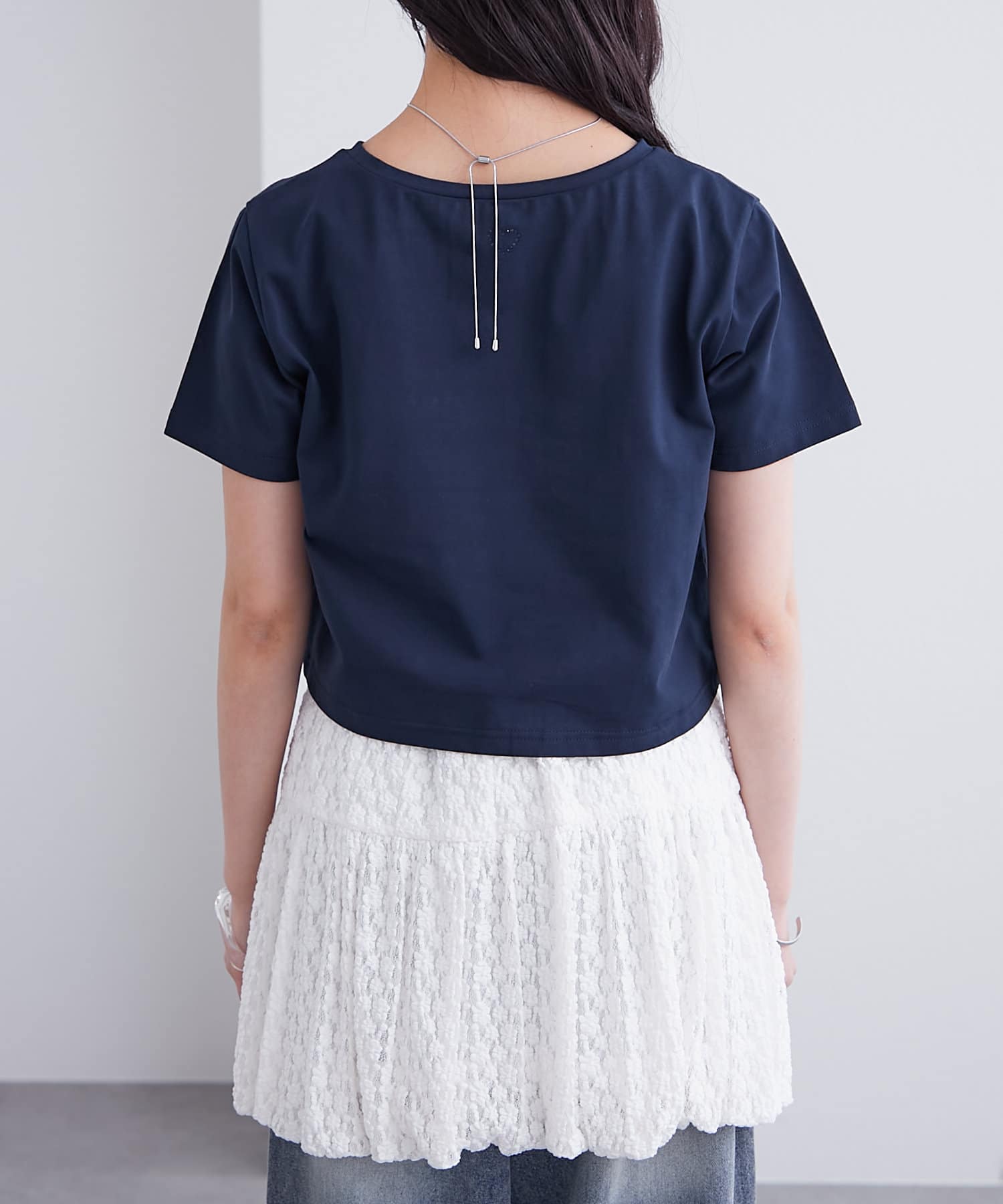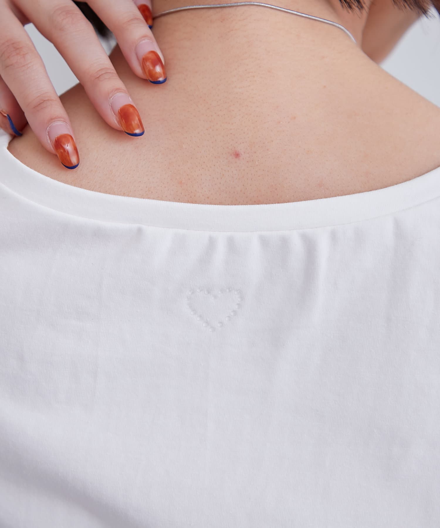 シンプルなデザインにラインストーンのロゴが入っているのがポイントの1枚。シンプルながらも着映えするアイテムです。