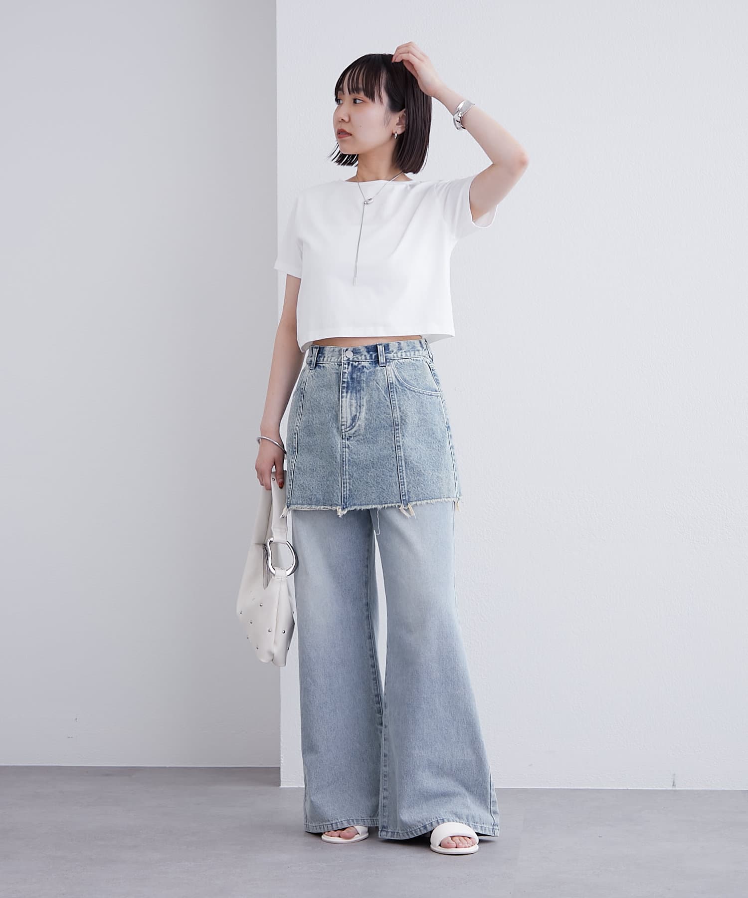 ボトムスをレイヤードデザインのアイテムと合わせると、