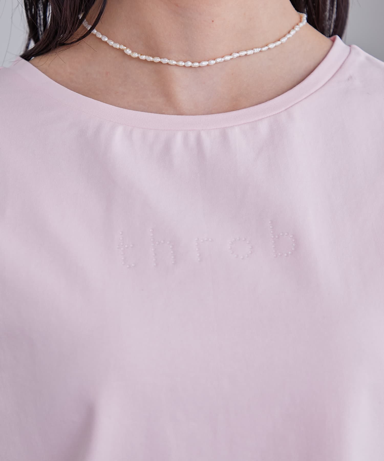 シンプルなデザインにラインストーンのロゴが入っているのがポイントの1枚。シンプルながらも着映えするアイテムです。