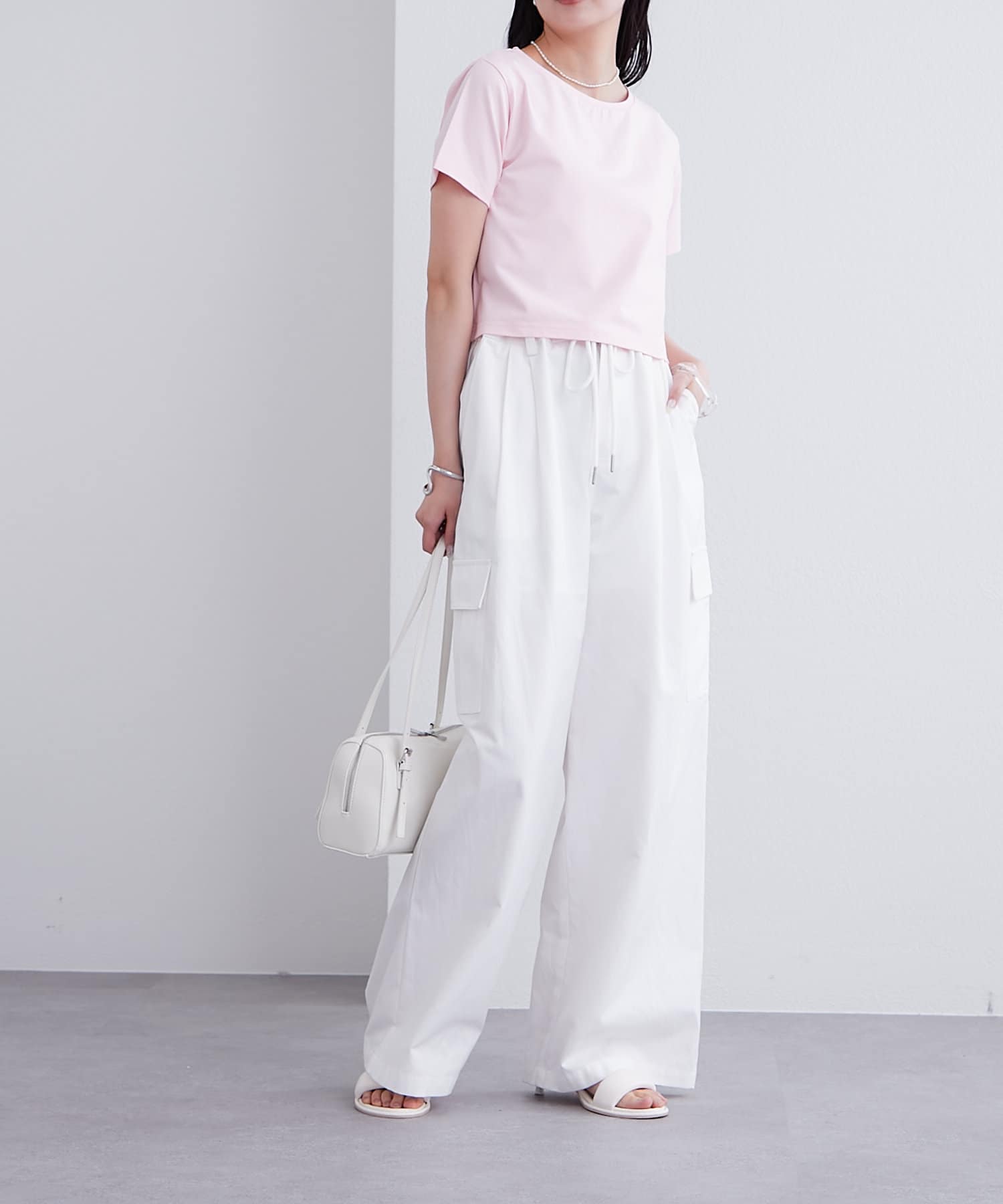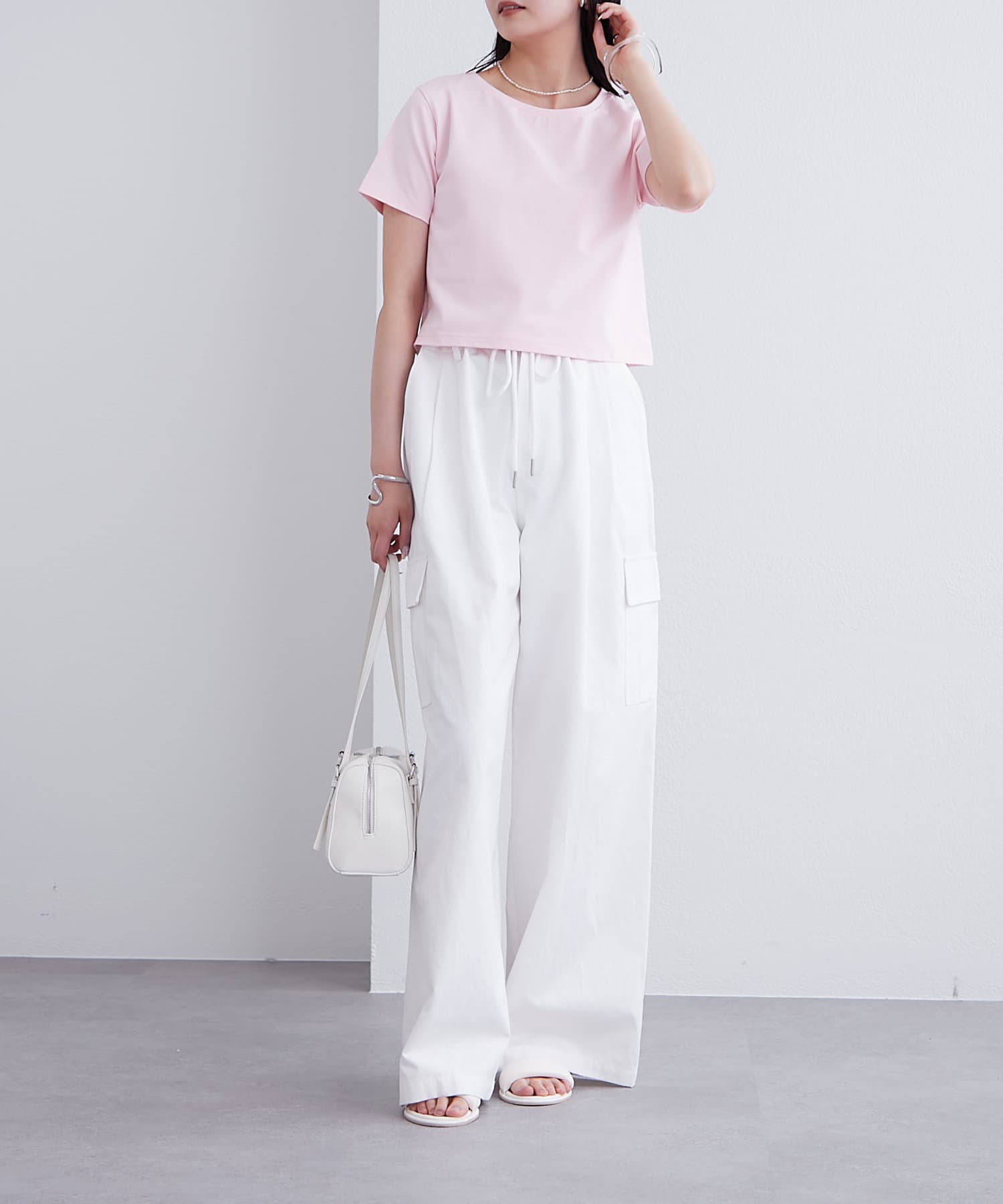ワイドめなボトムスと合わせるとバランスよく決まります◎