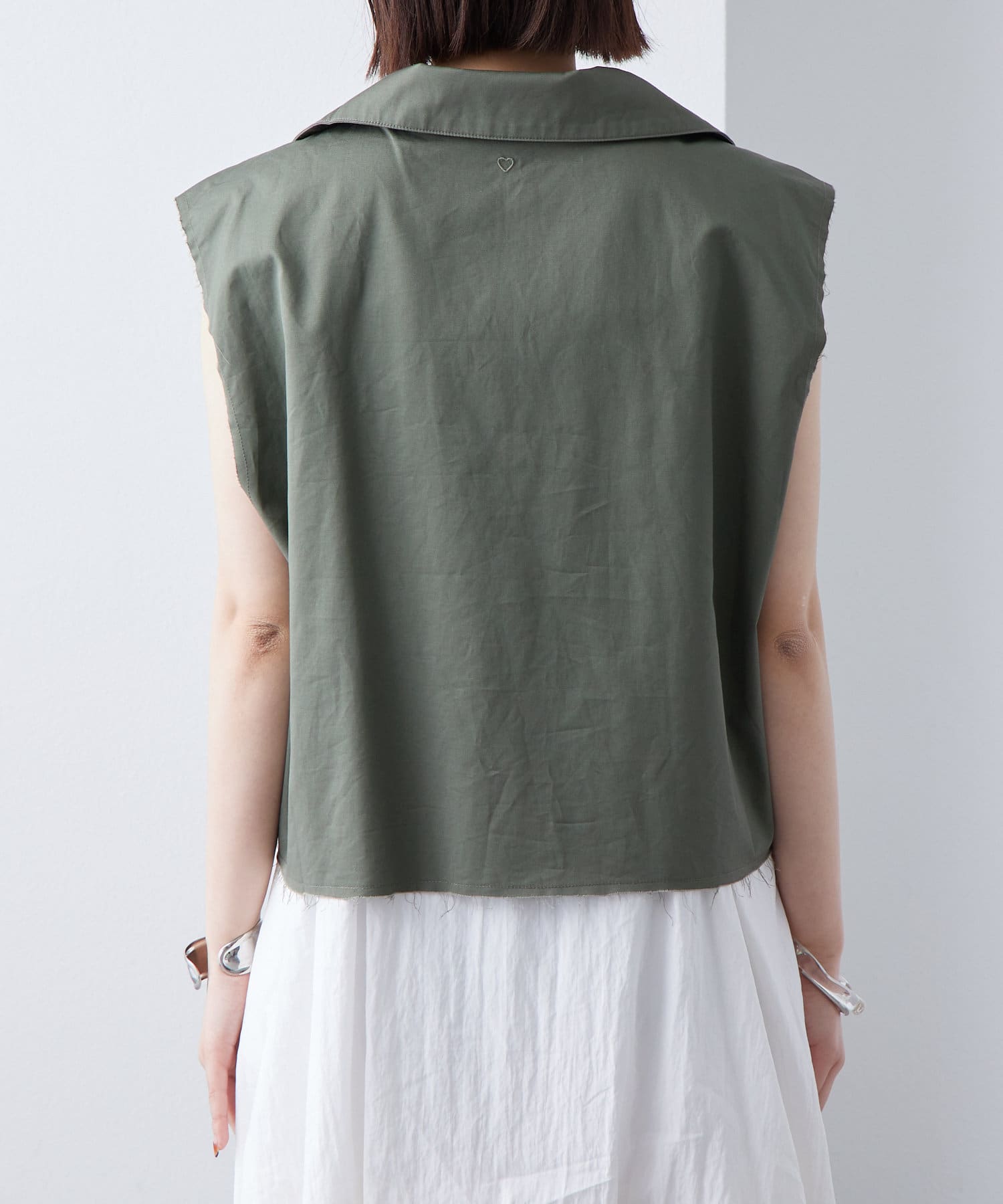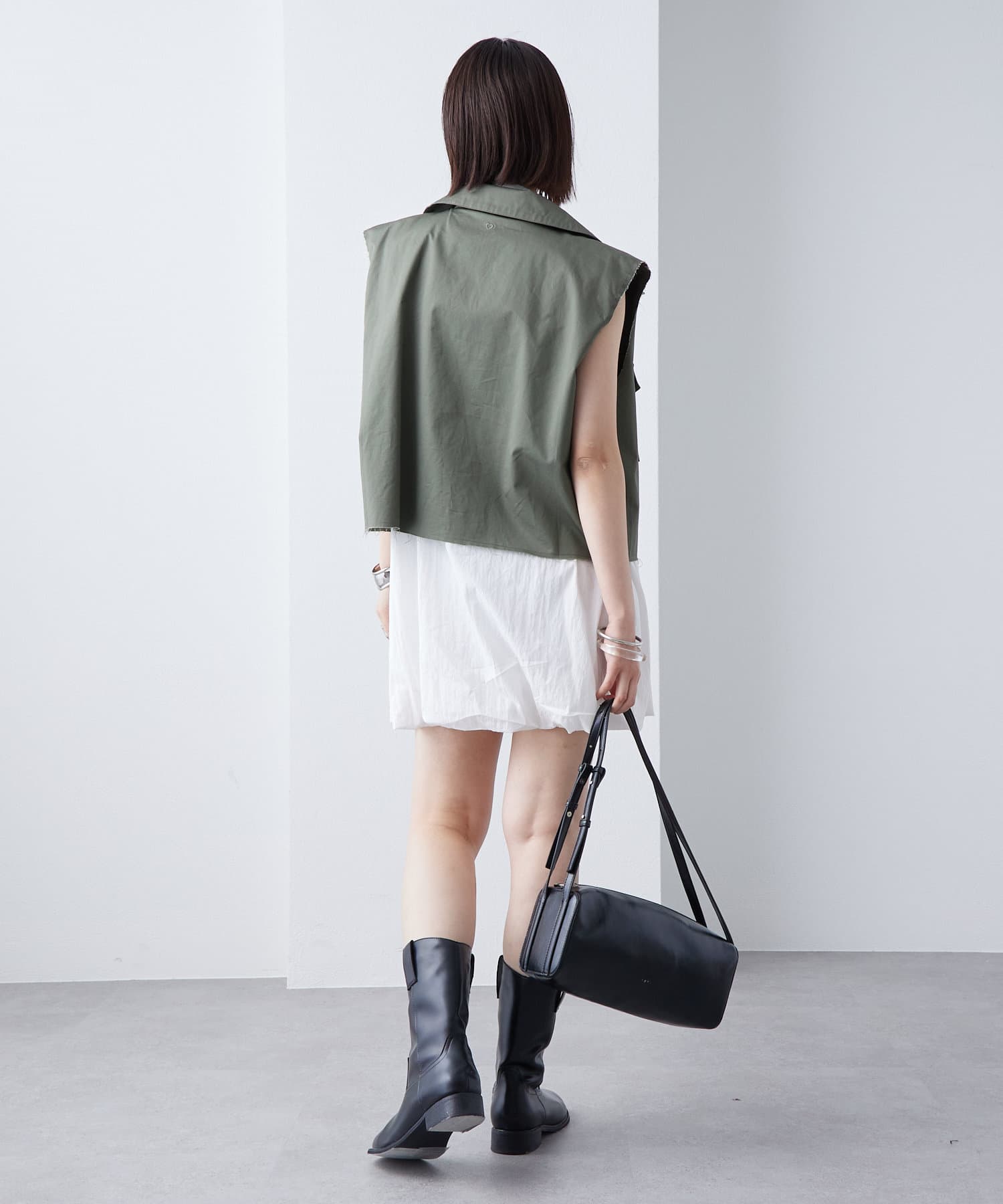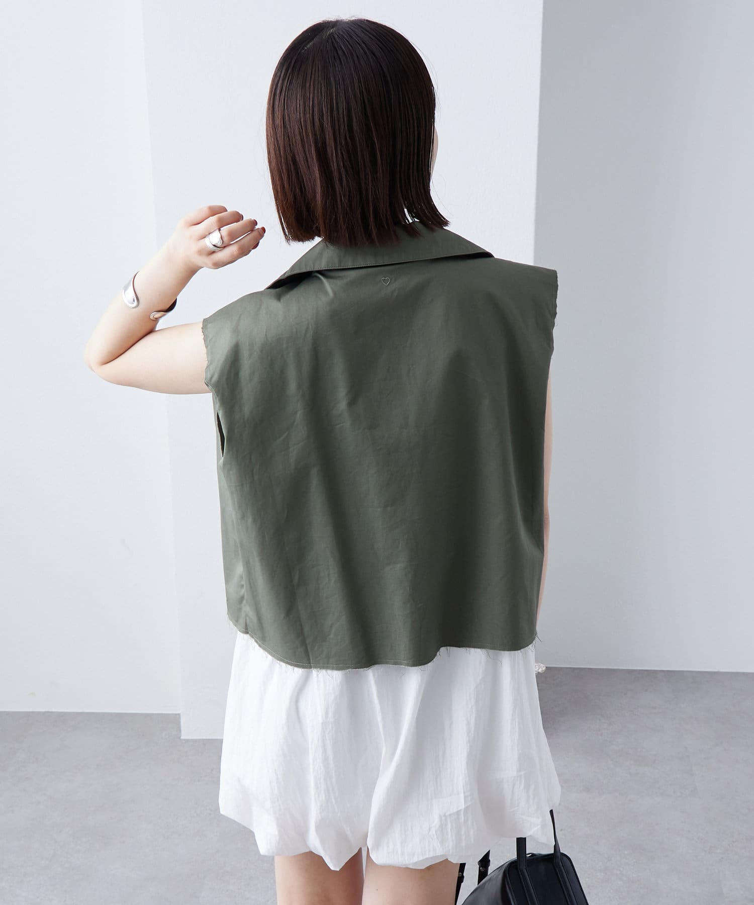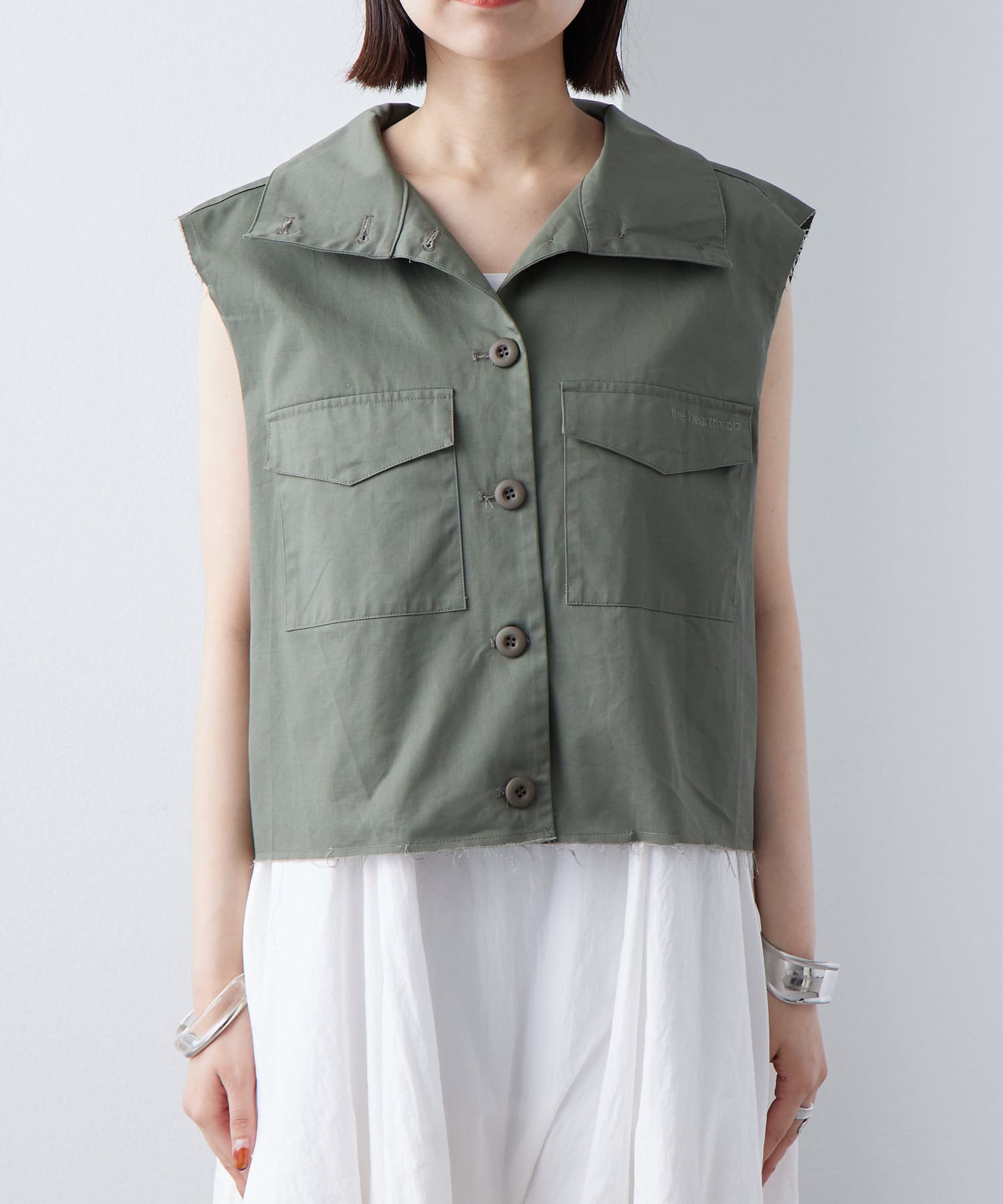 ・ミリタリーベストでも落ち着いたデザインのため、シンプルなワンピースと合わせるのも甘辛ミックスで相性抜群です◎