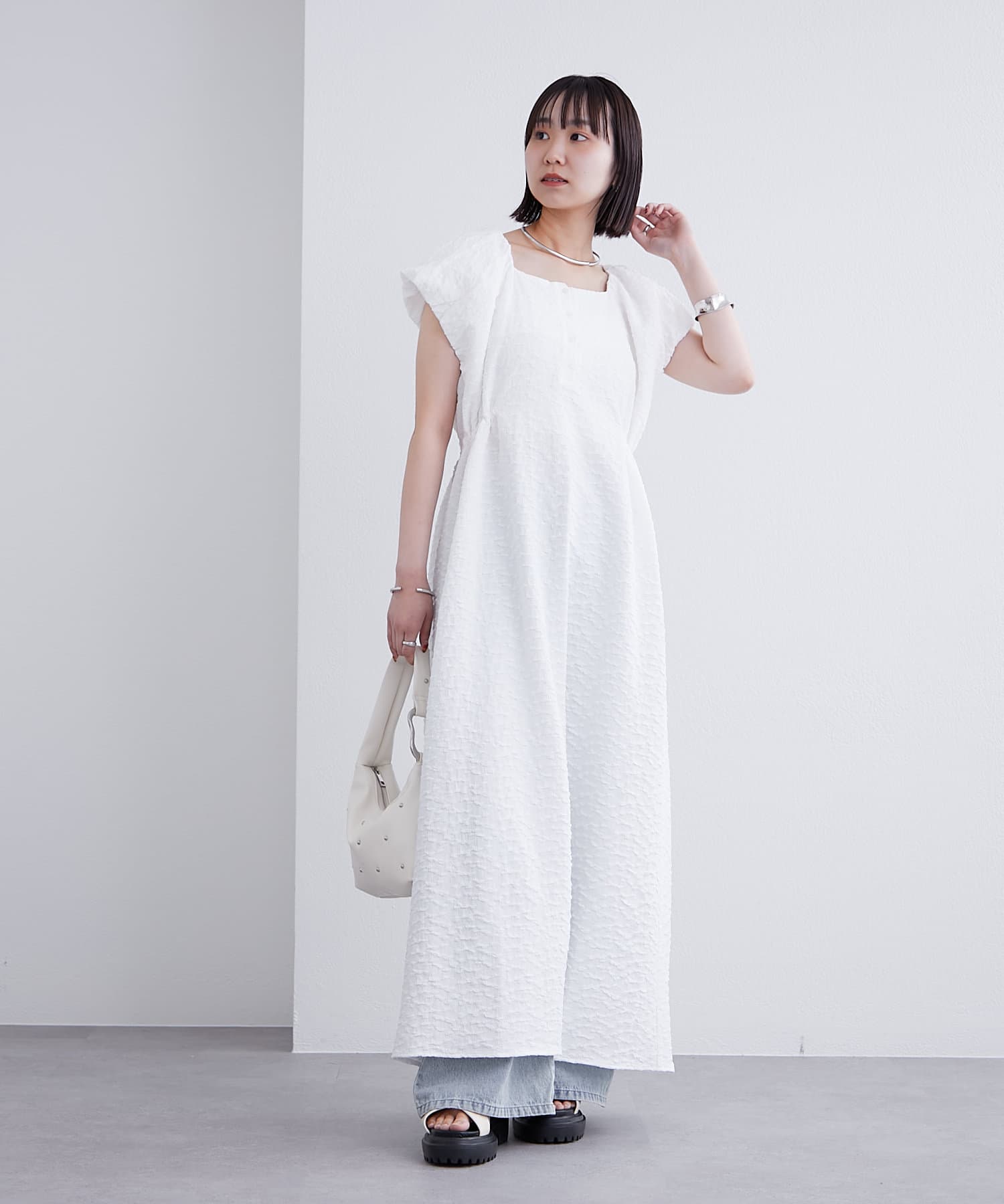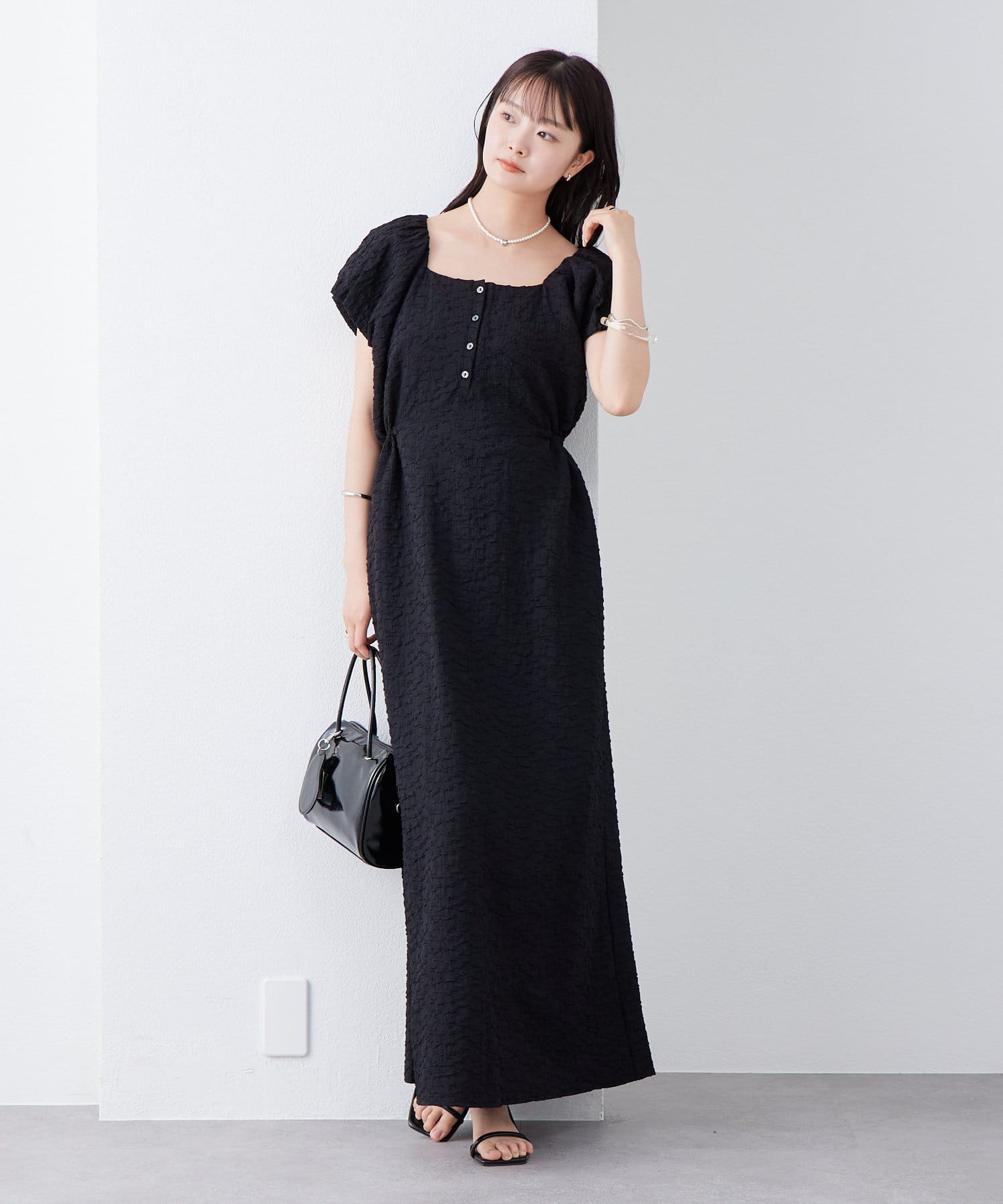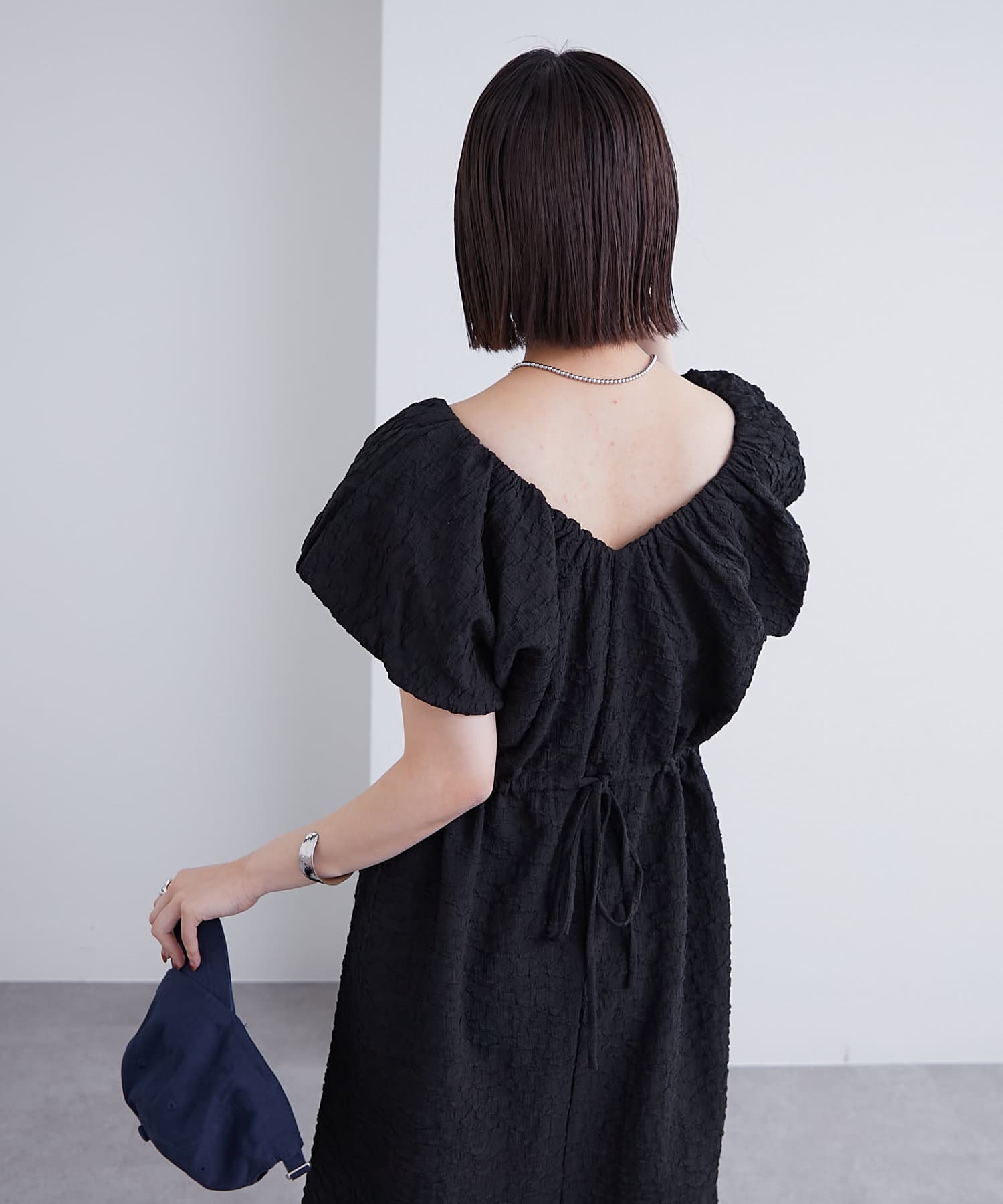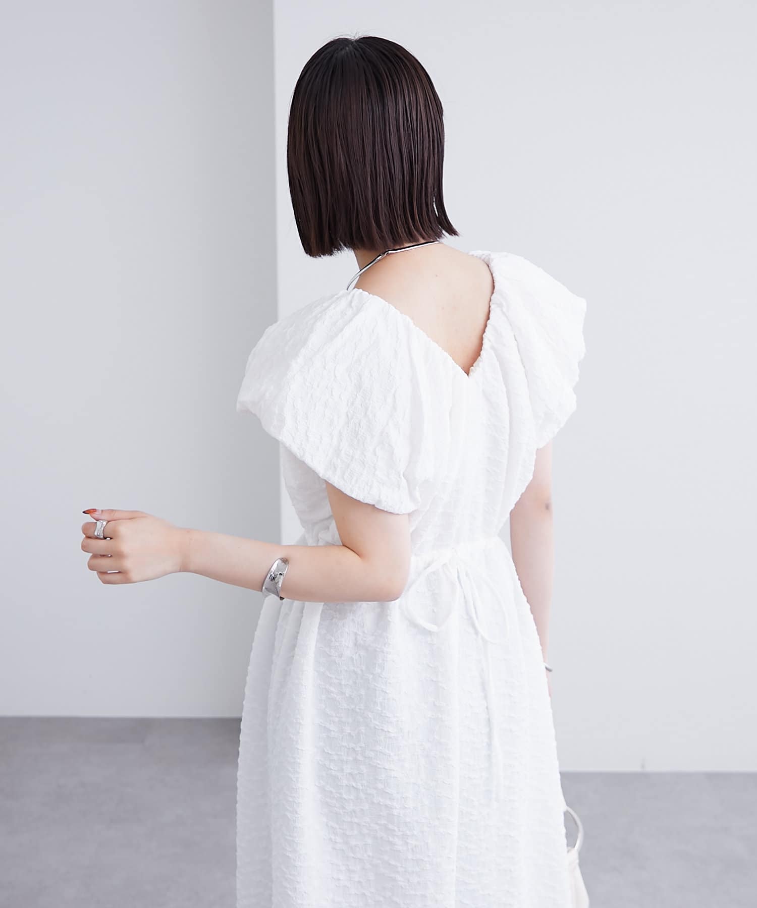 ふんわりとしたパフのデザインが可愛らしいワンピース。1枚でコーディネートが完成します!