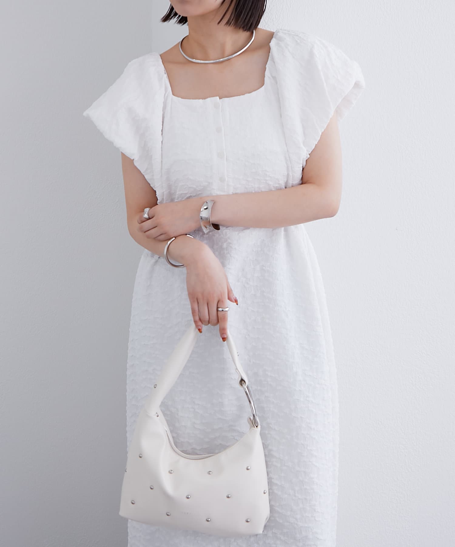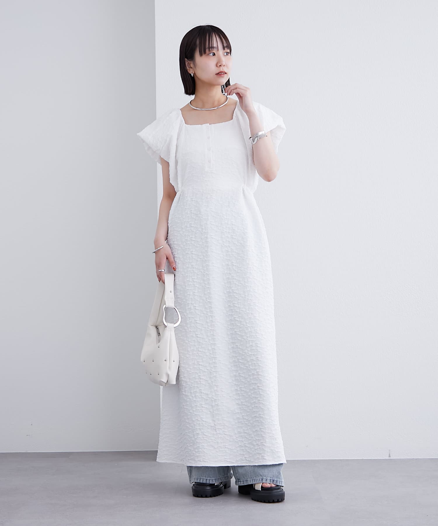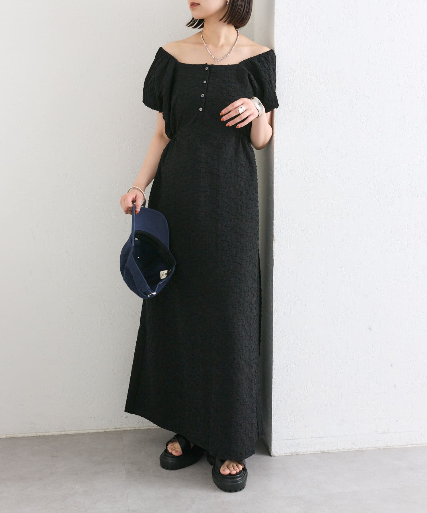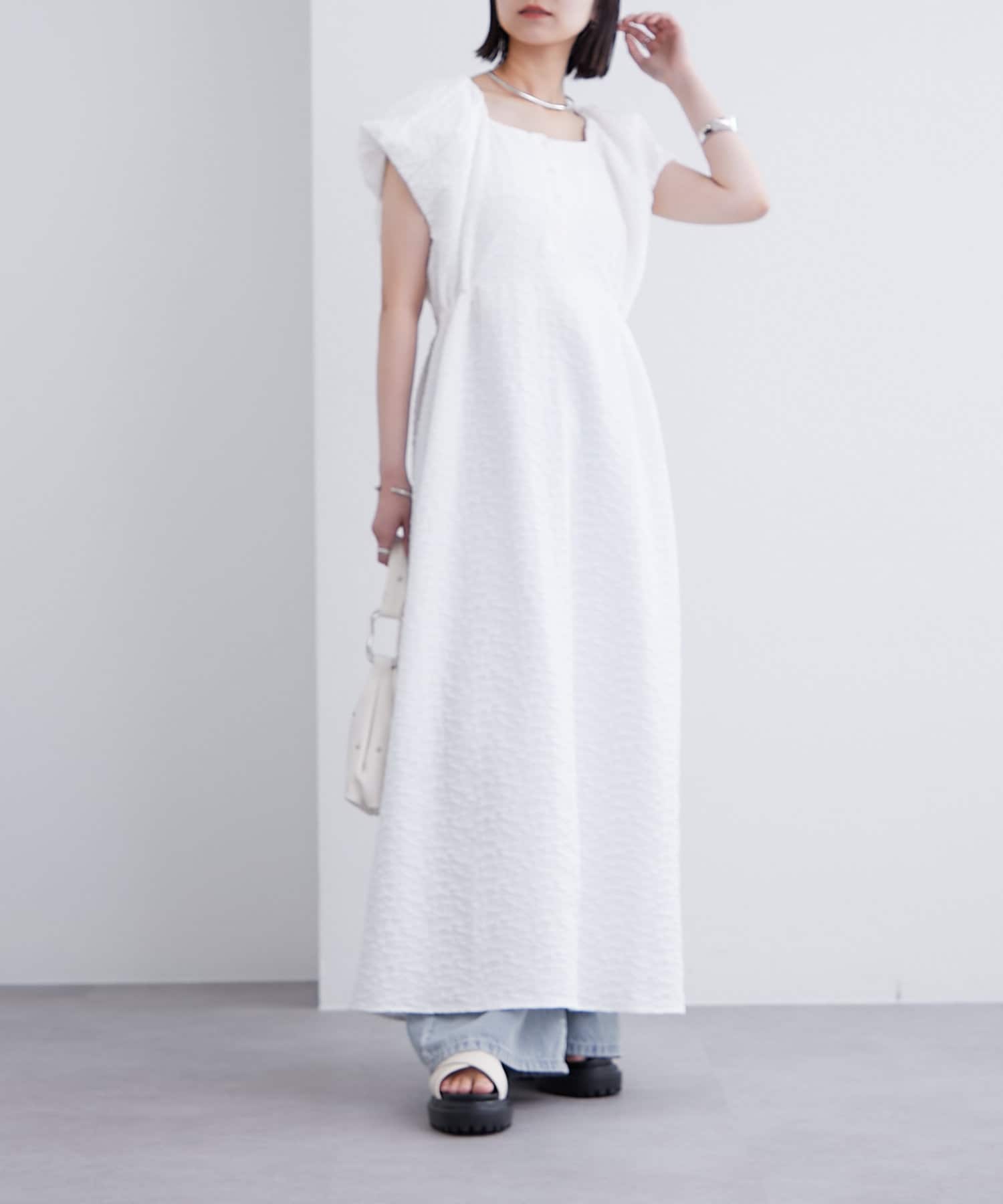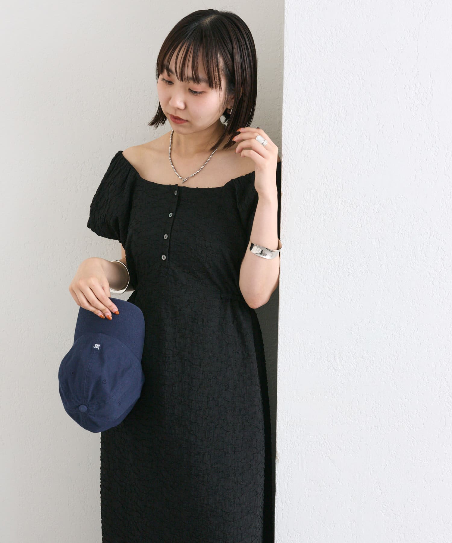 ふんわりとしたパフのデザインが可愛らしいワンピース。1枚でコーディネートが完成します!