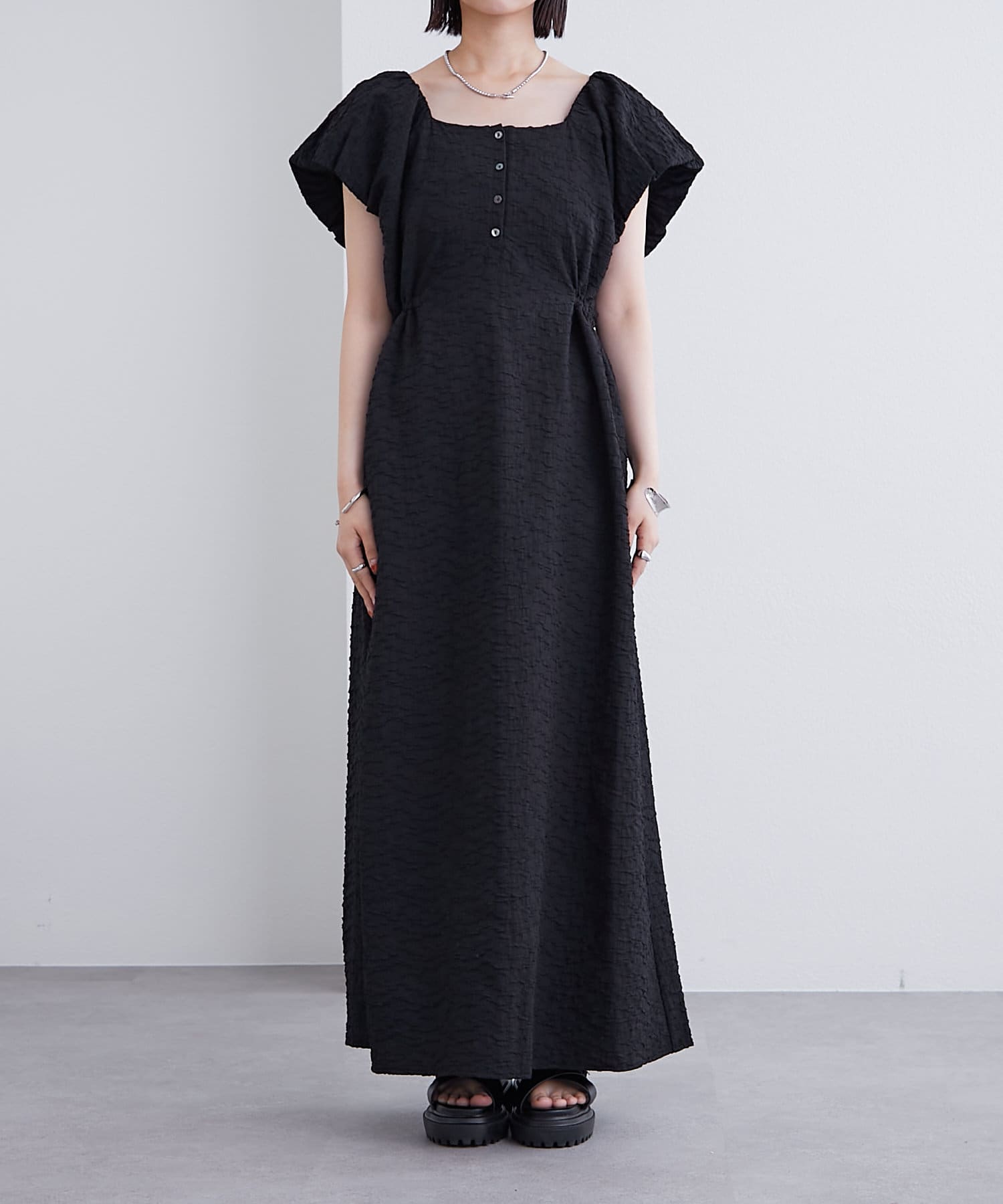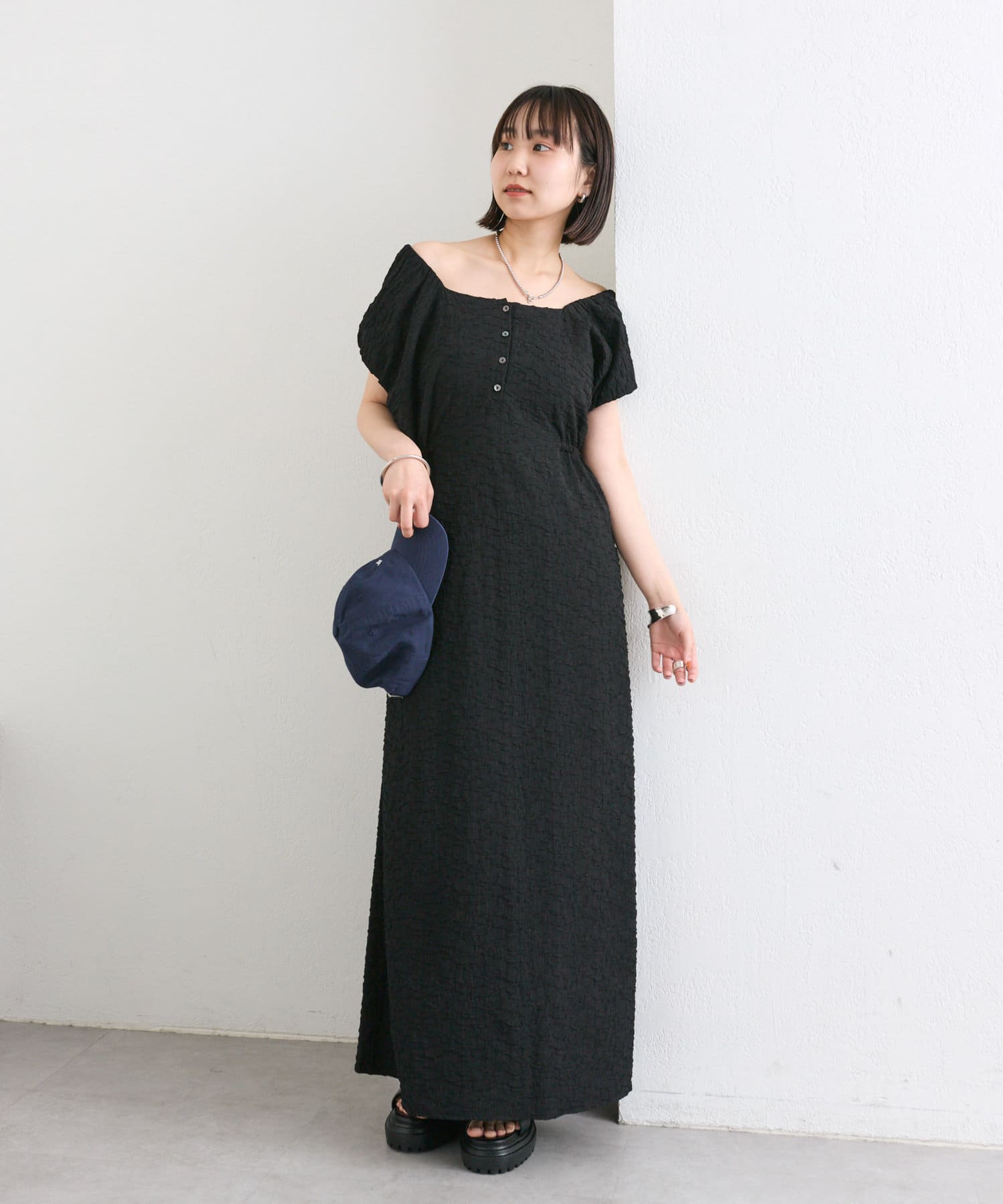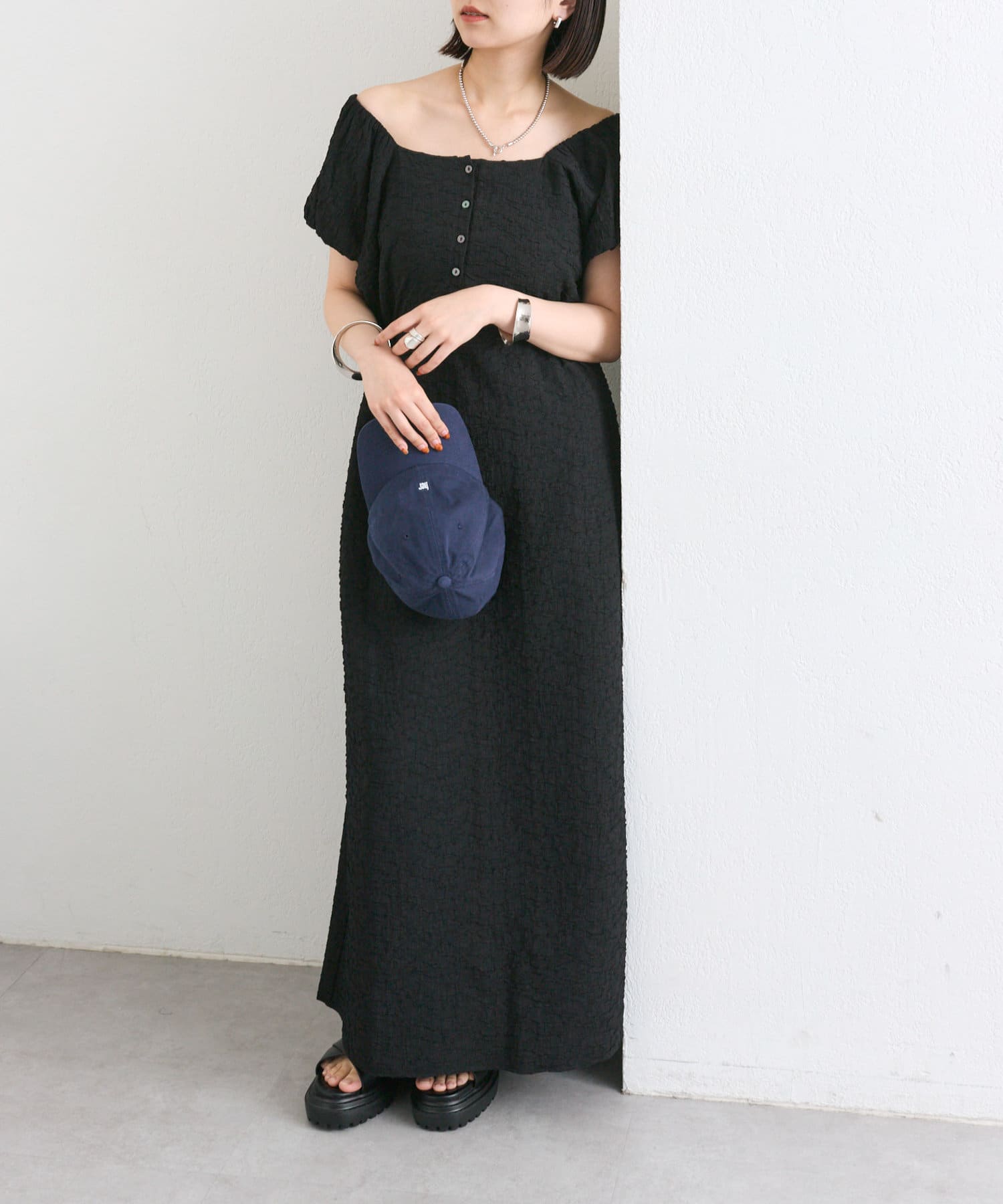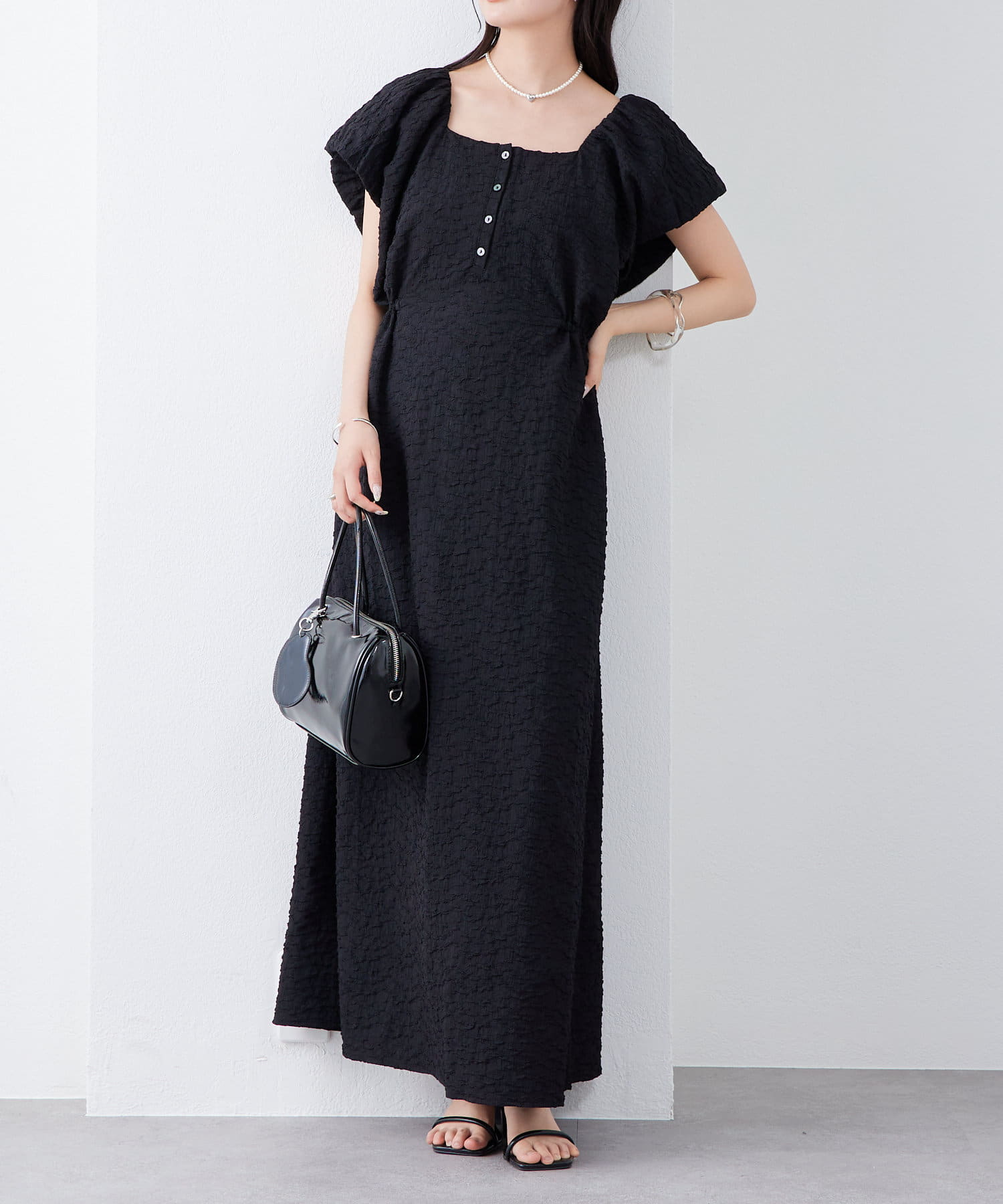 ふんわりとしたパフのデザインが可愛らしいワンピース。1枚でコーディネートが完成します!