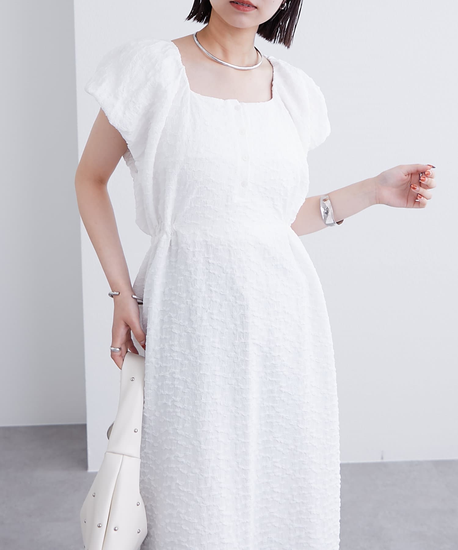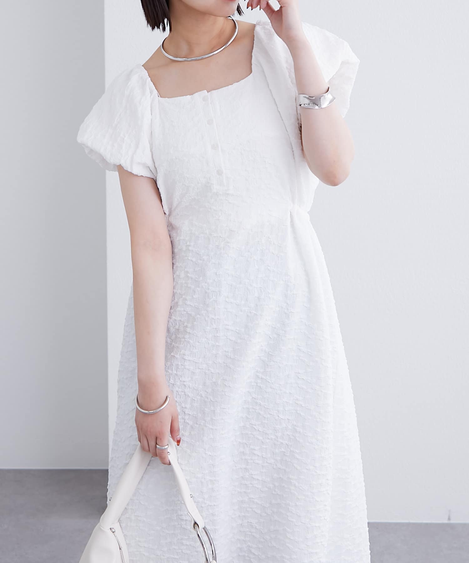 袖口のパフのデザインが目を惹く◎女性らしいワンピースが登場!