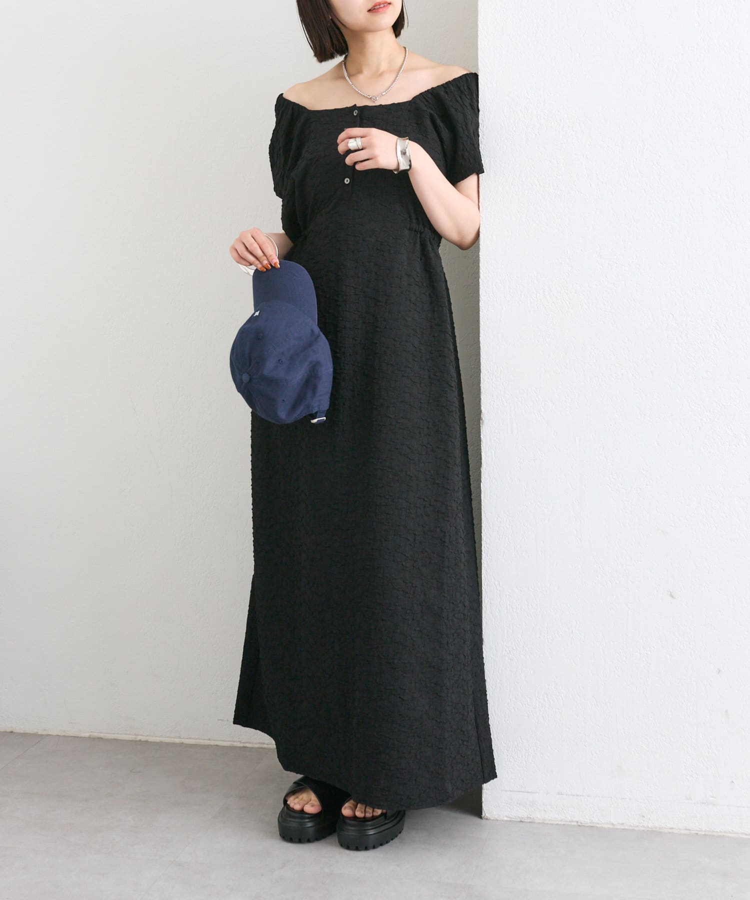 オフショルデザインで可愛らしいコーデが1枚で完成します◎