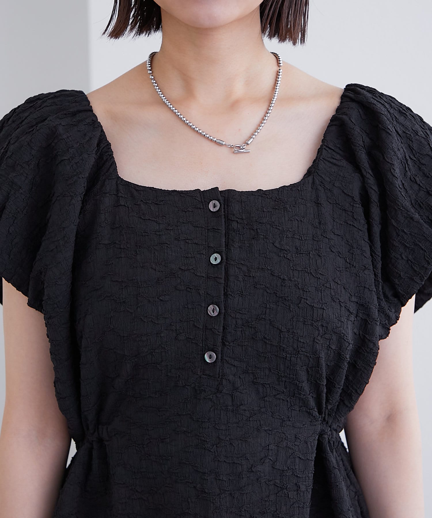 袖口がパフになっており二の腕をカバーしてくれます◎