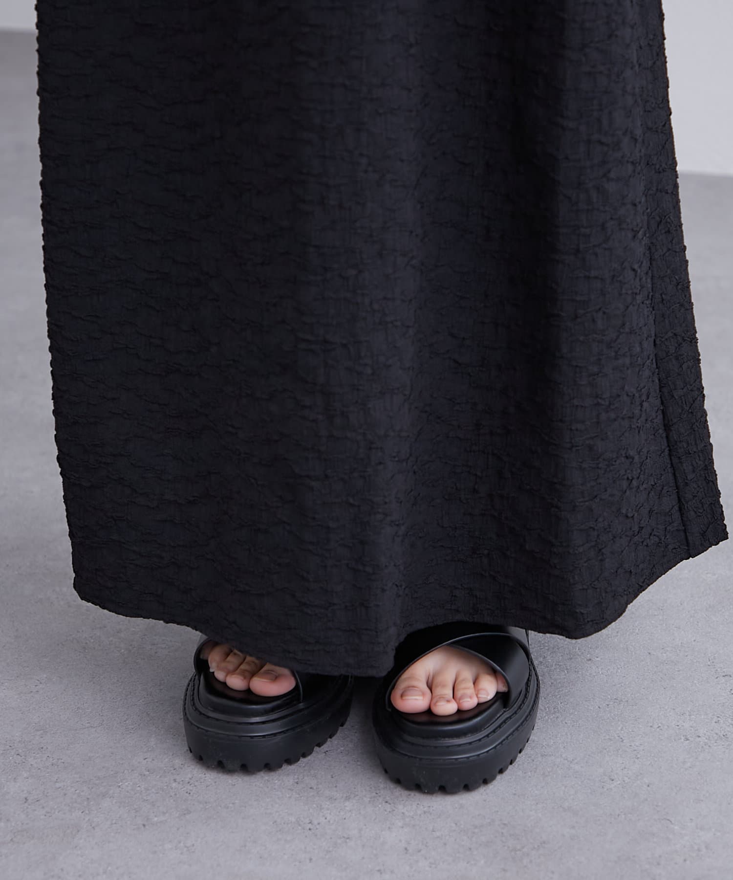 厚底のサンダルを合わせてカジュアルさをプラスするのも