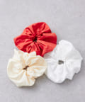 ・存在感のあるレッド、上品なアイボリー、レース素材が可愛らしいホワイトの3種類のシュシュ♡