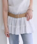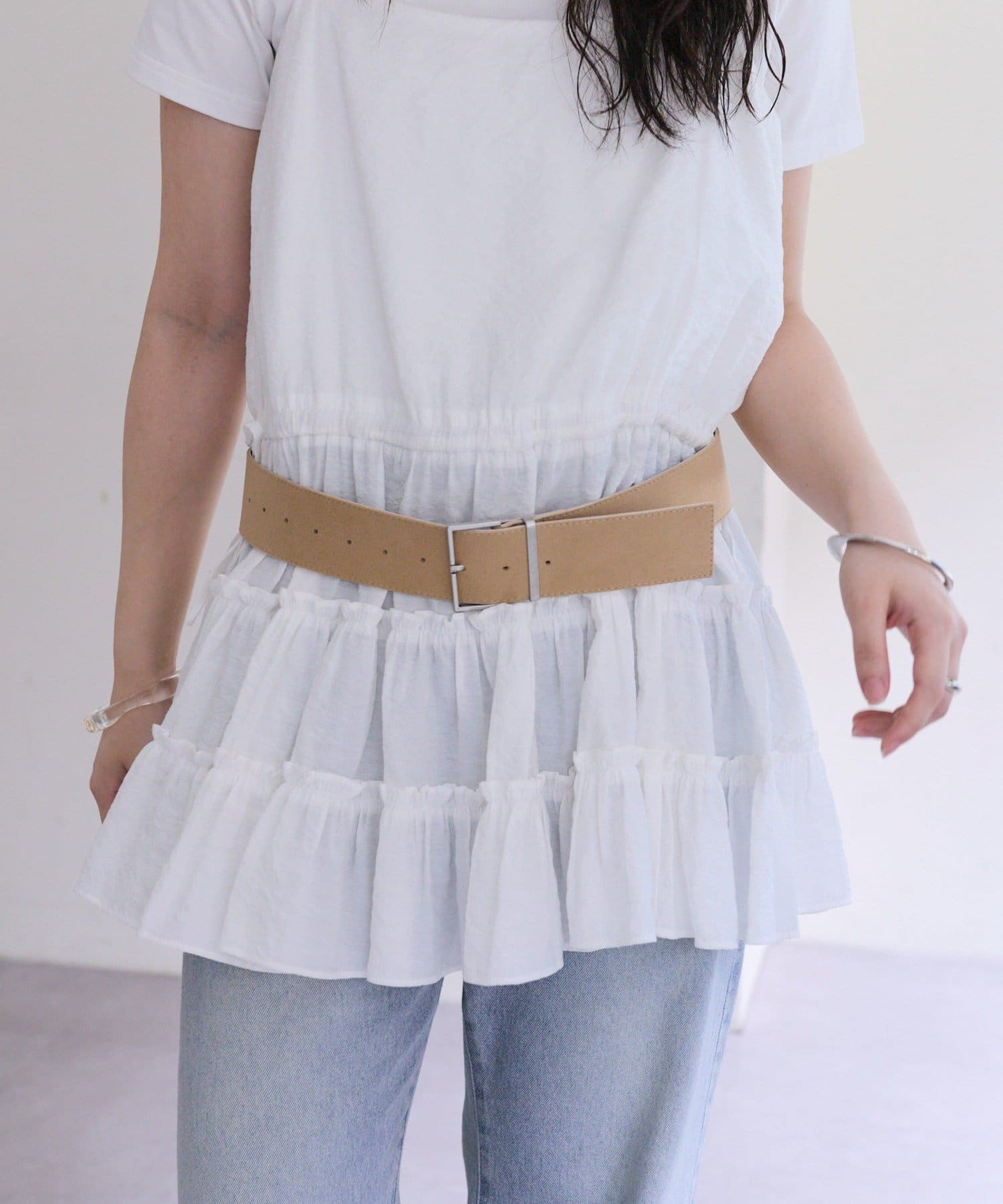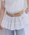 ・ワンピースやチュニックなどのアイテムにベルトを巻いてメリハリをつけたコーディネートに。