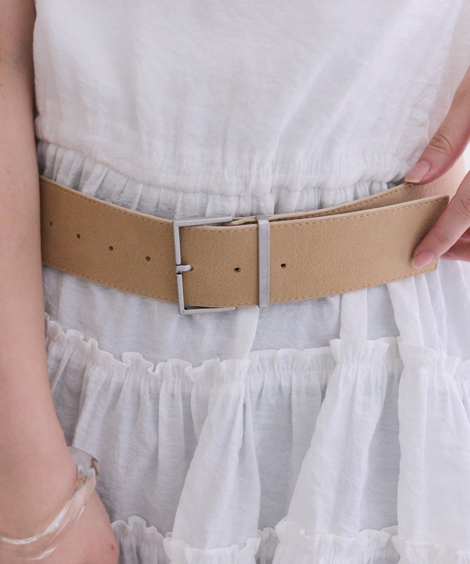 ・程よいワイド感のでコーディネートの足しになるスエード素材のベルト。