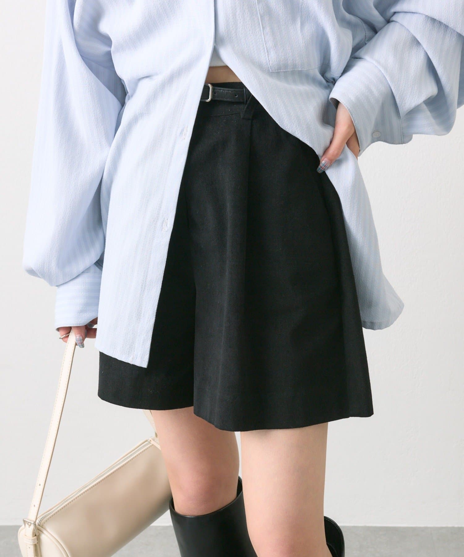 ・程よい広がりで脚のラインを拾わず、ウエスト周りはタック仕様でスッキリと魅せてくれる。