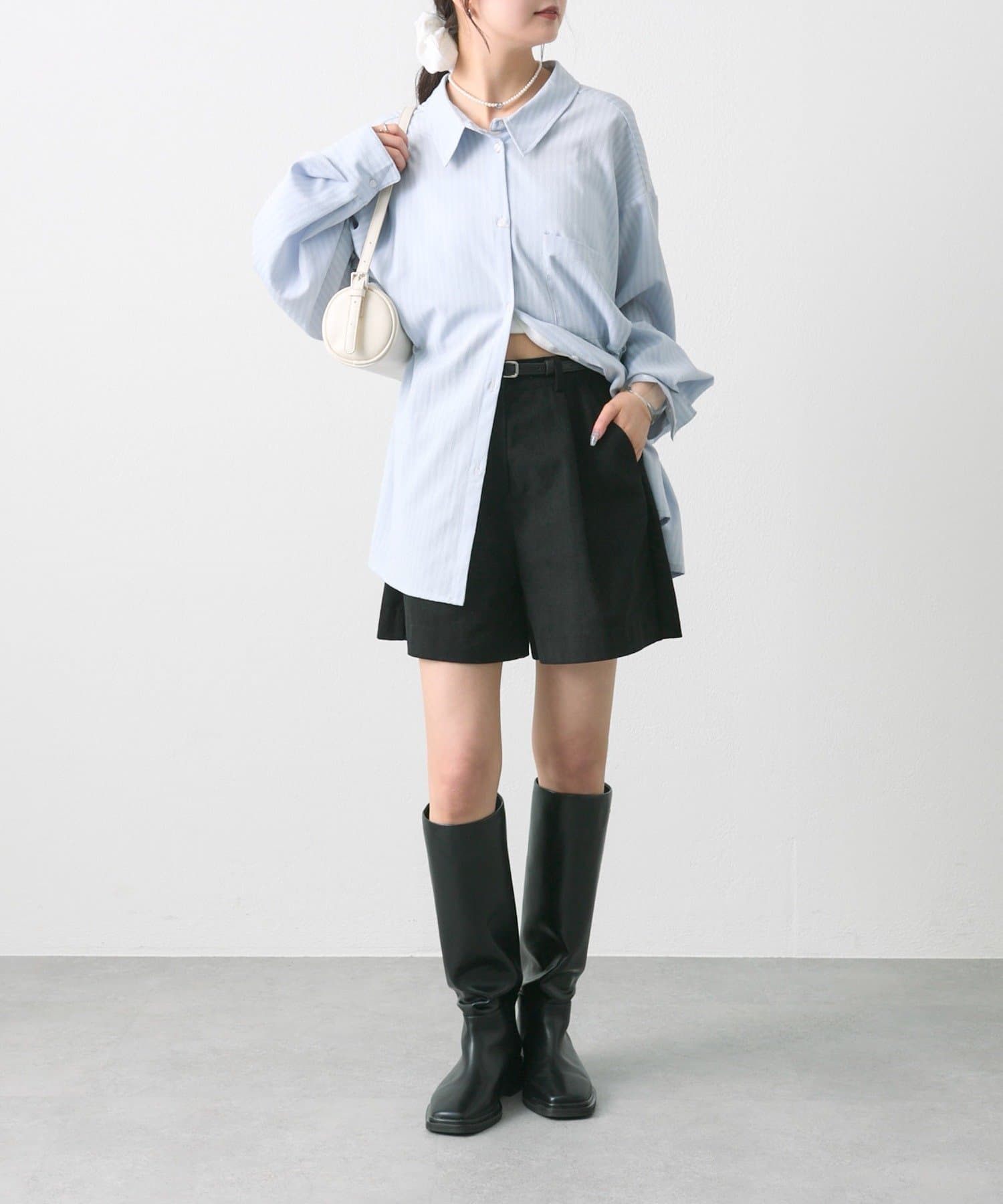 シルエットがゆったりとしたアイテムでもこなれた印象になり、幅広いトップスとスタイリングしていただけます!