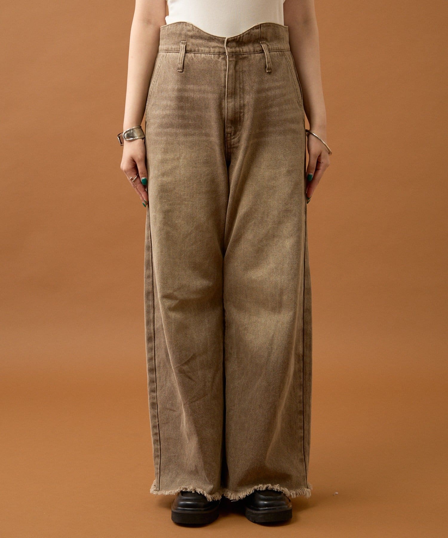 ・ウェーブ部分がオシャレで、トップスはシンプルなものでもデニムを履くだけで決まるデザインです!