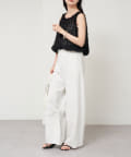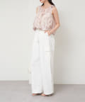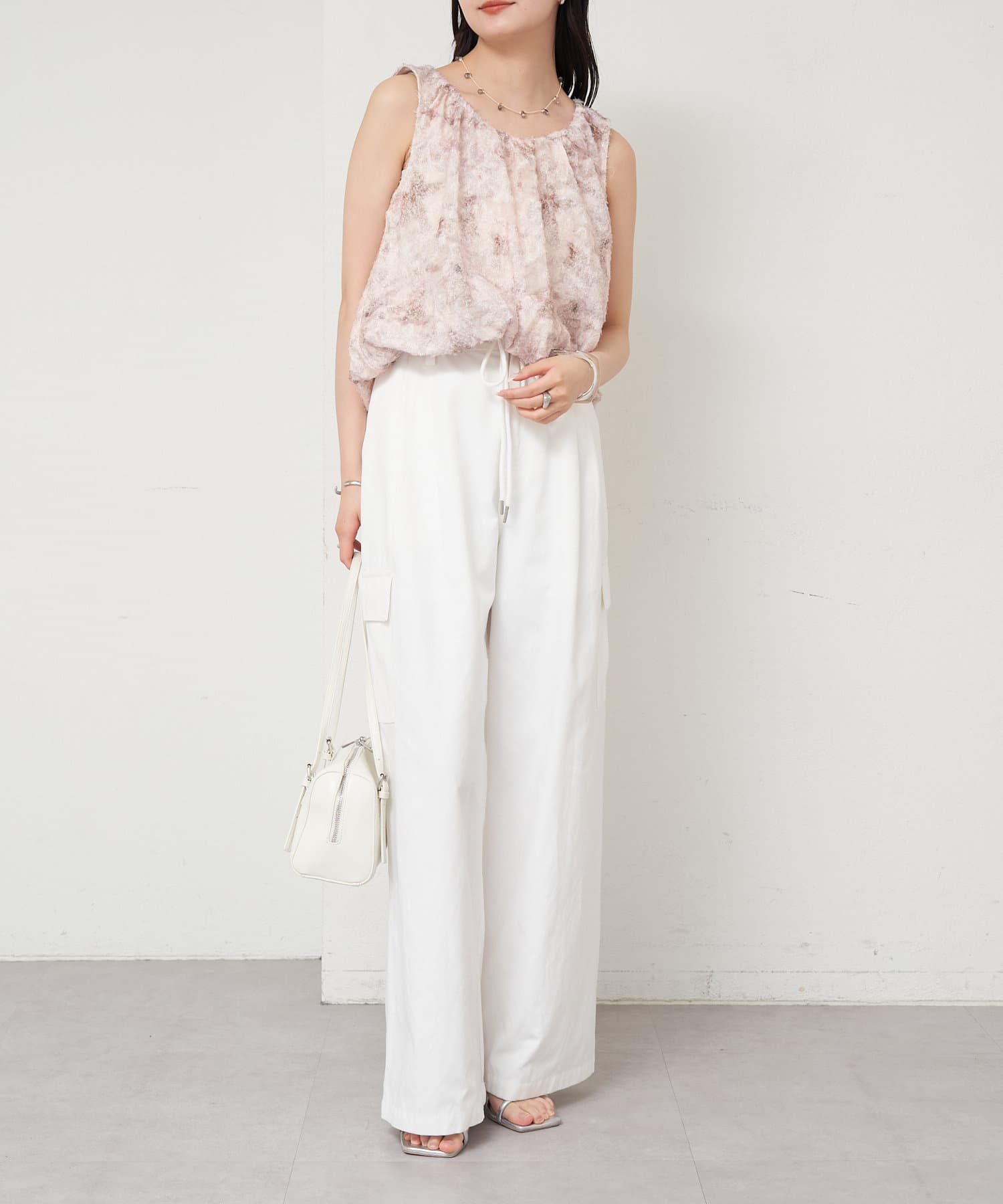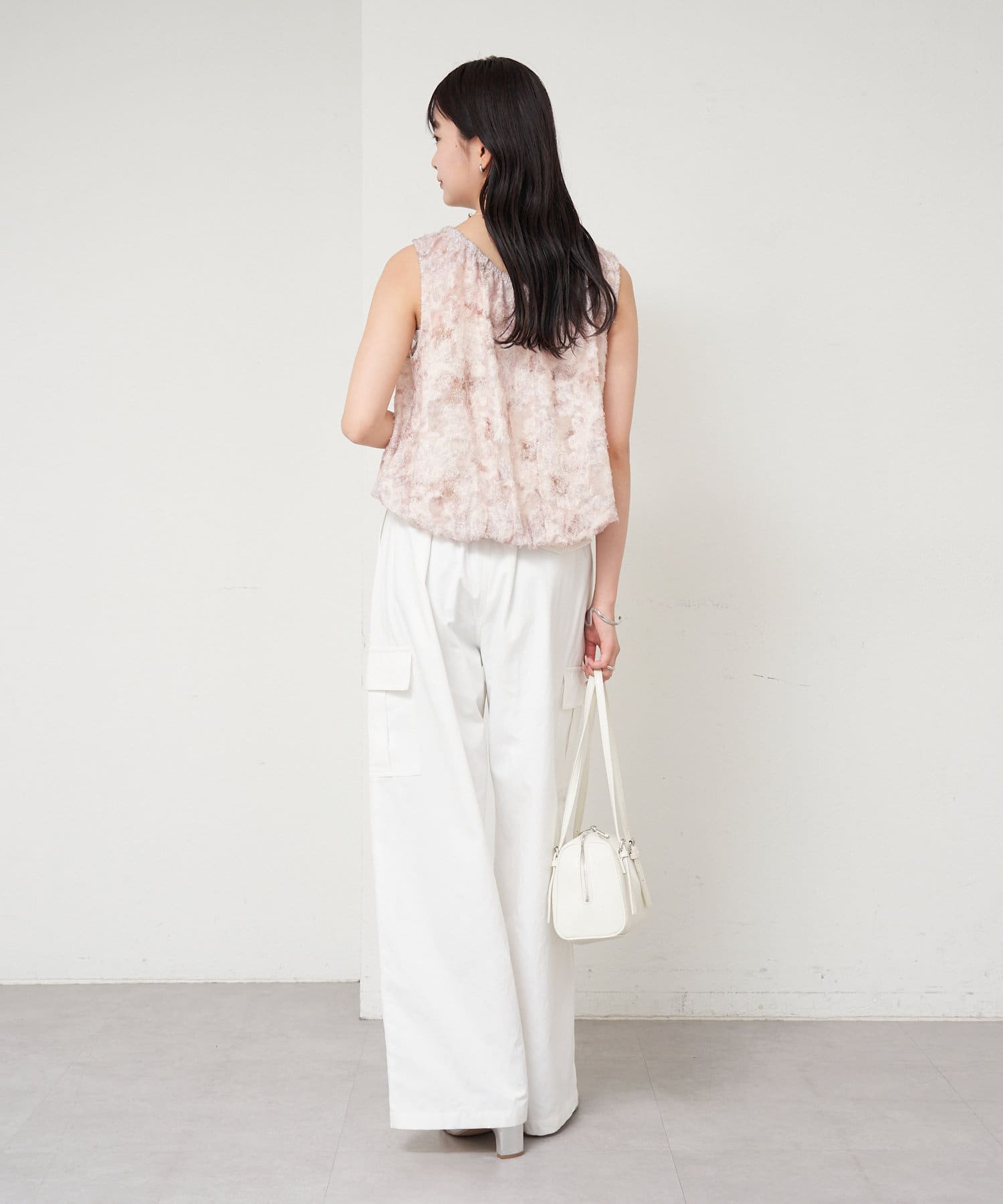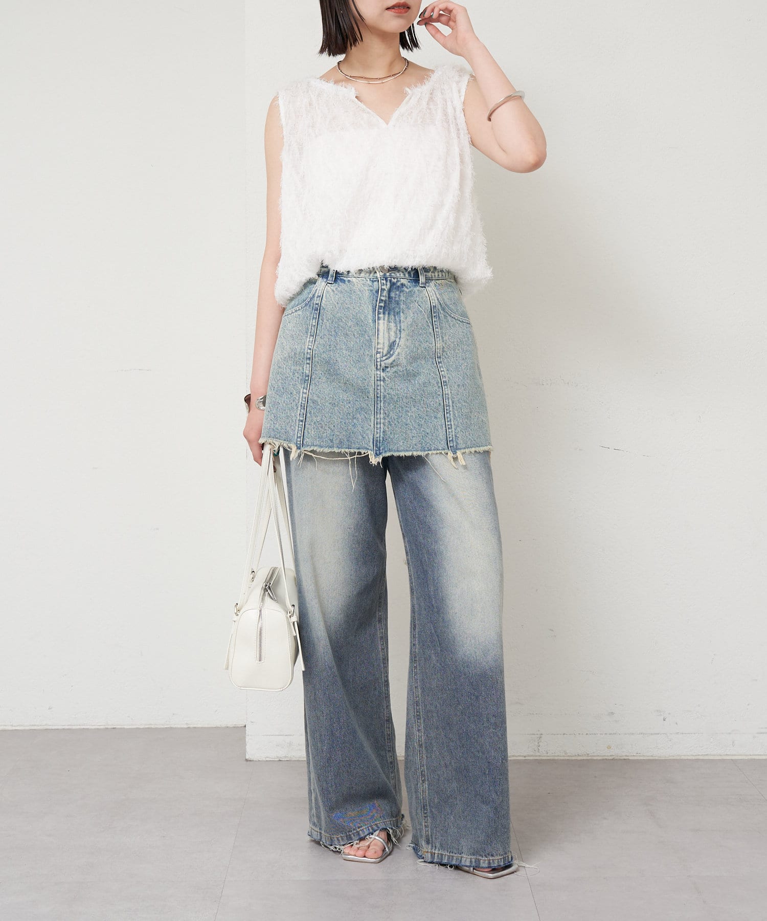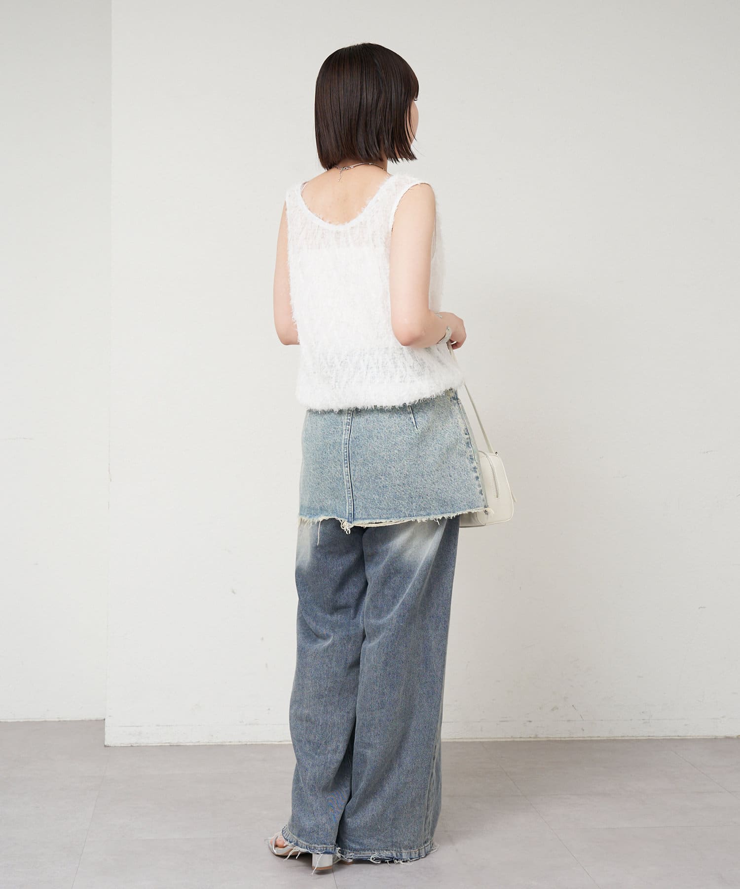 全体にフリンジをあしらい、透け感のあるシアー素材を重ねることで、軽やかさとトレンド感をプラス。