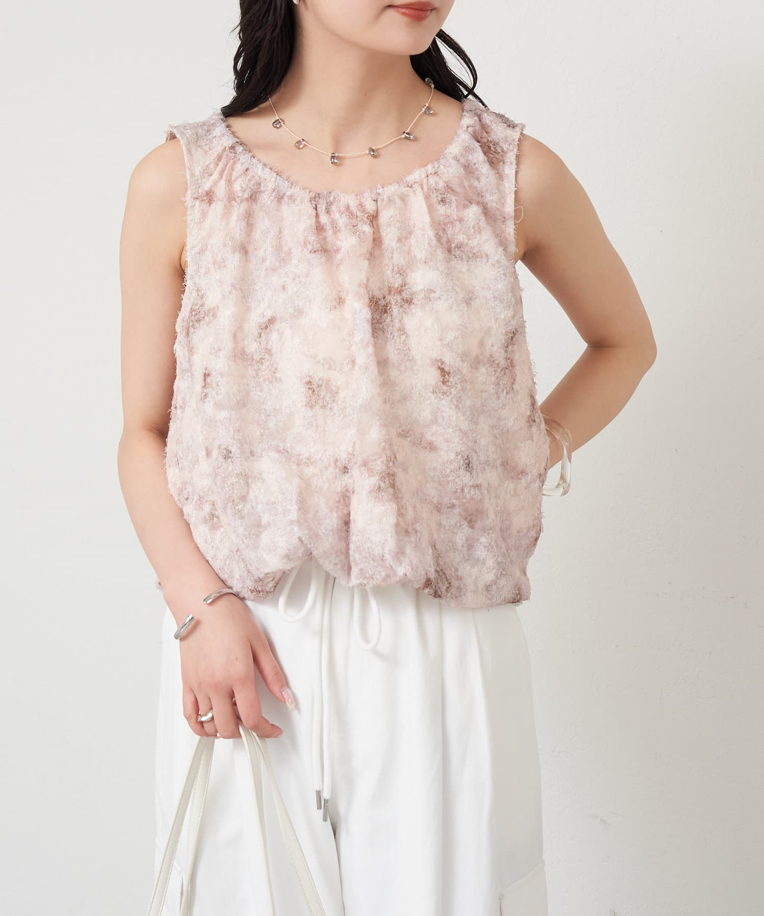 ジャガード素材が女性らしい◎ジャガードフリンジタンクが登場!