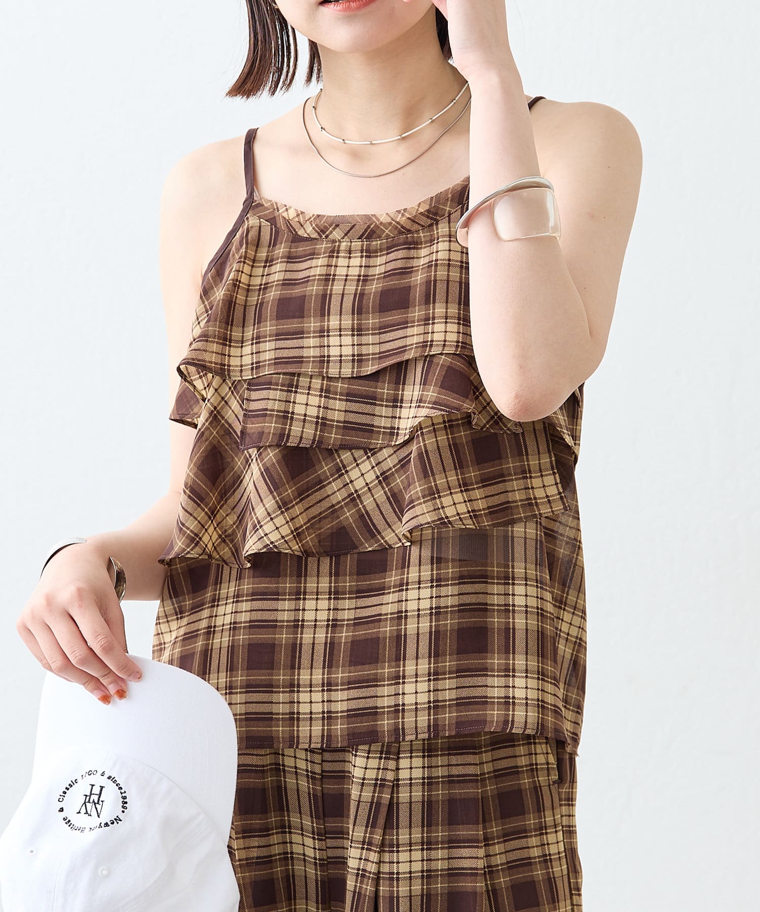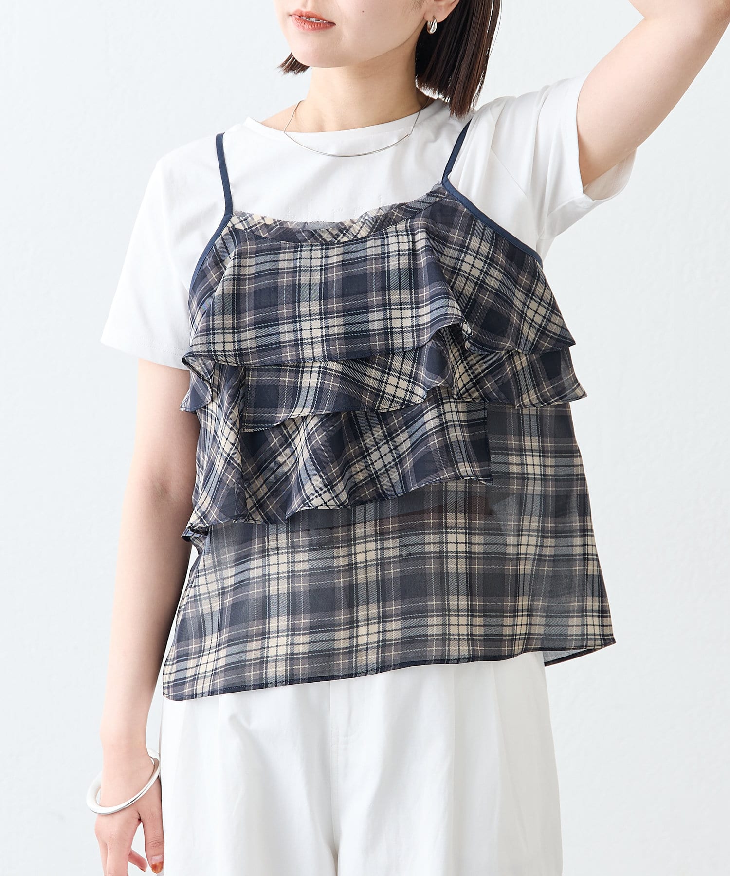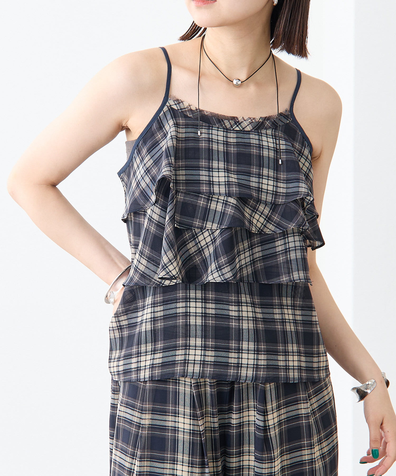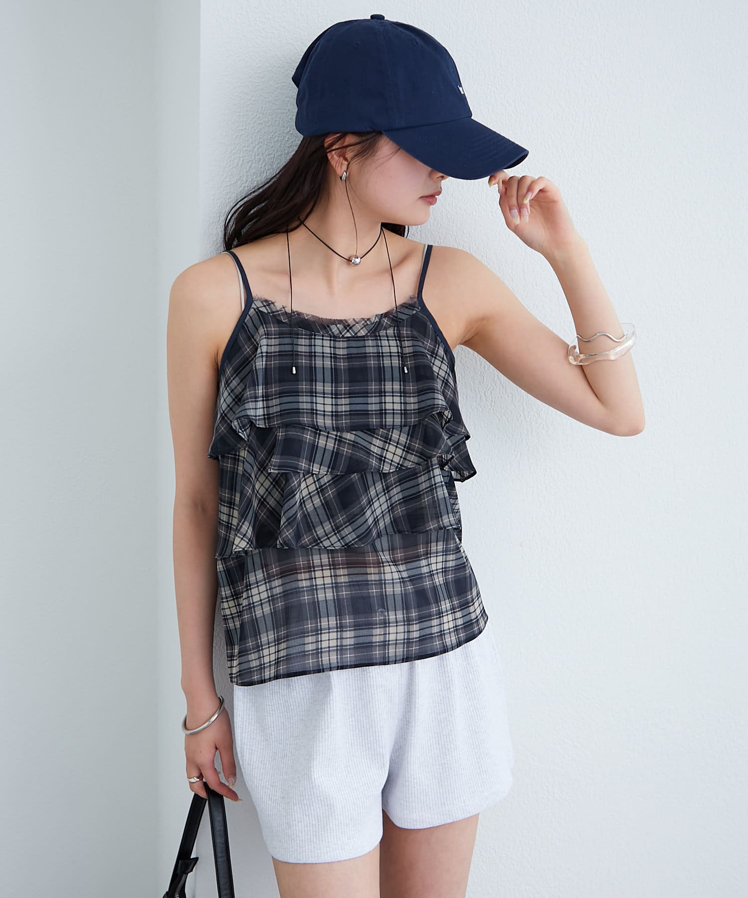 程よいボリューム感のフリルとチェック柄の組み合わせが可愛いキャミが登場!