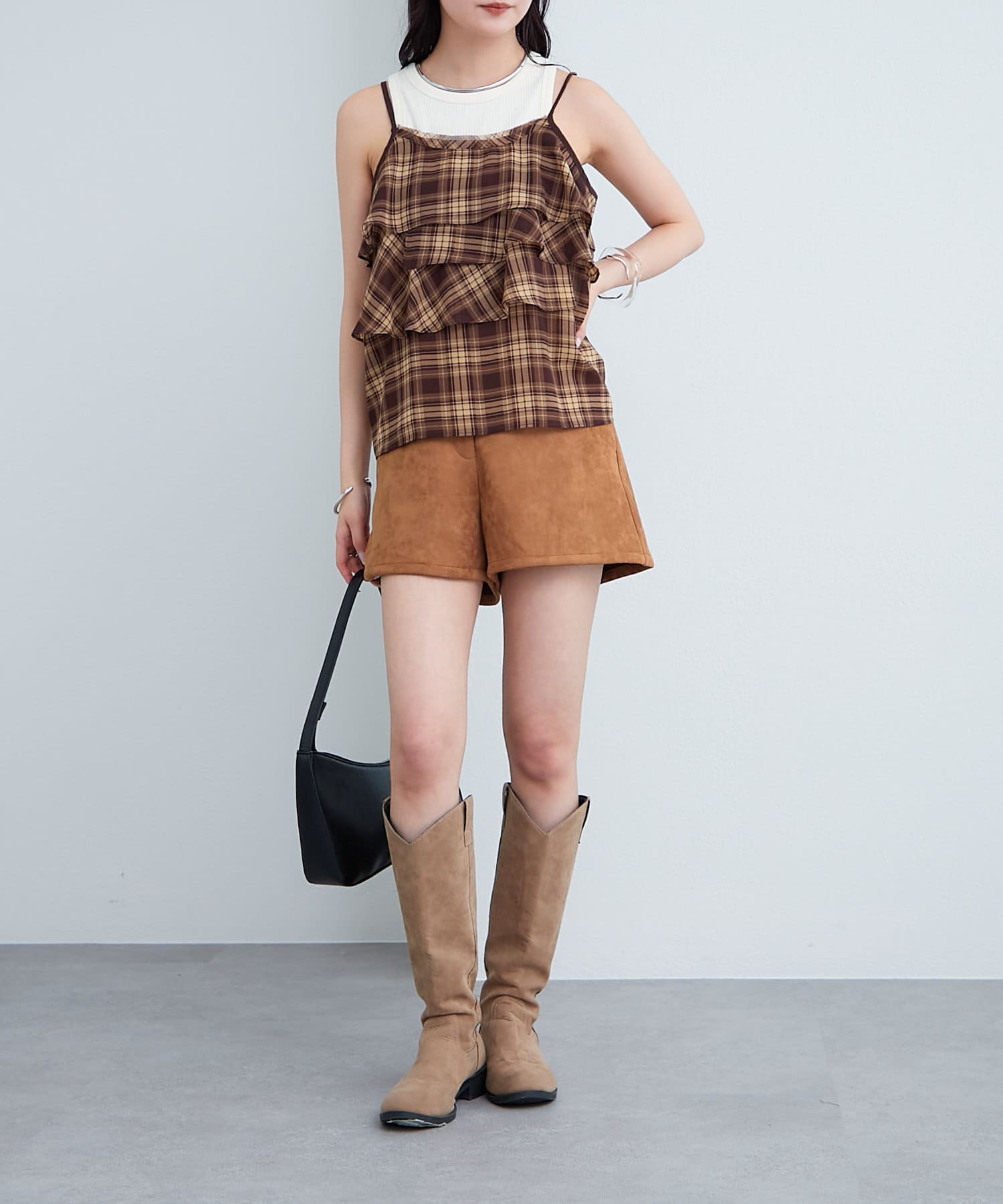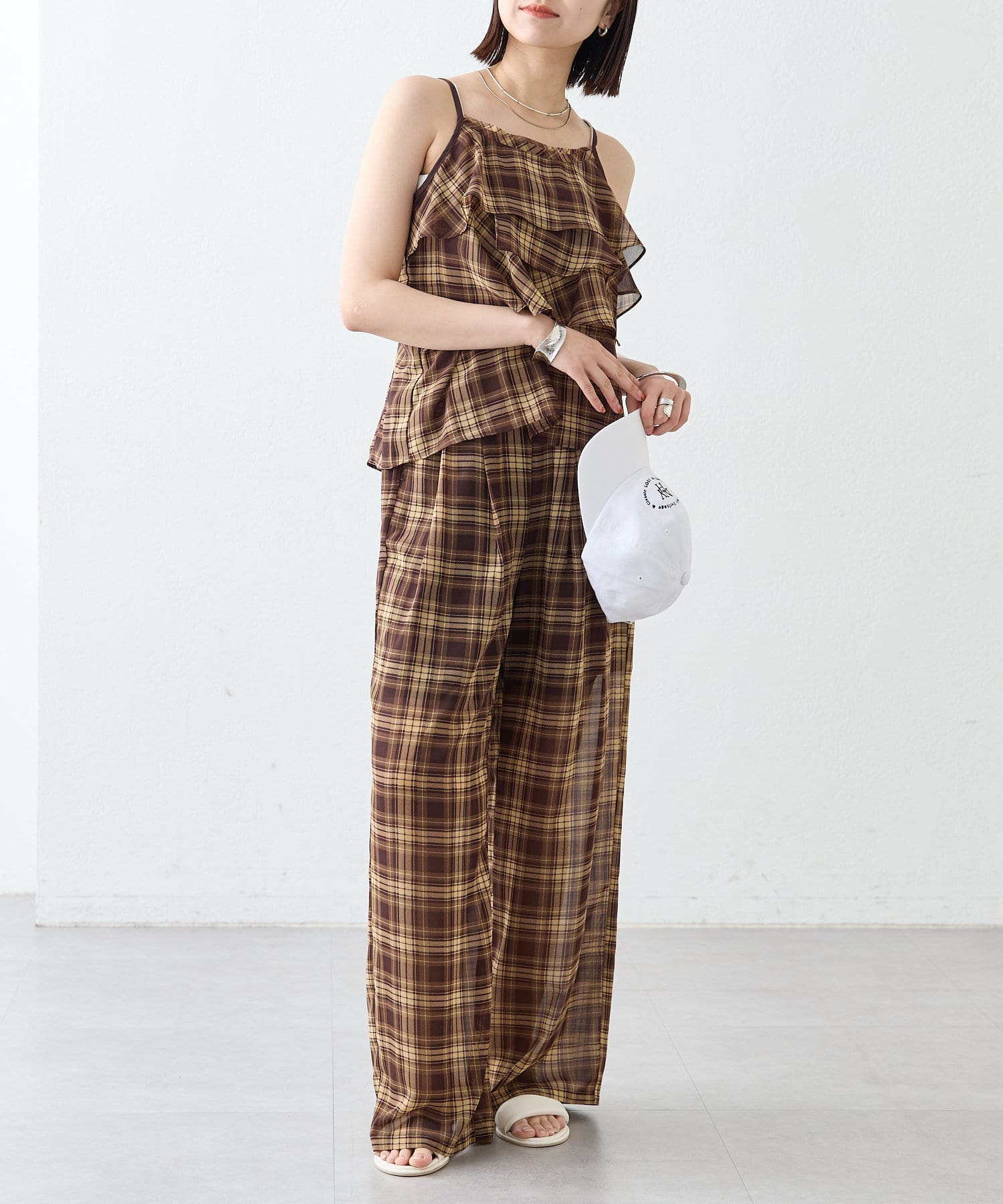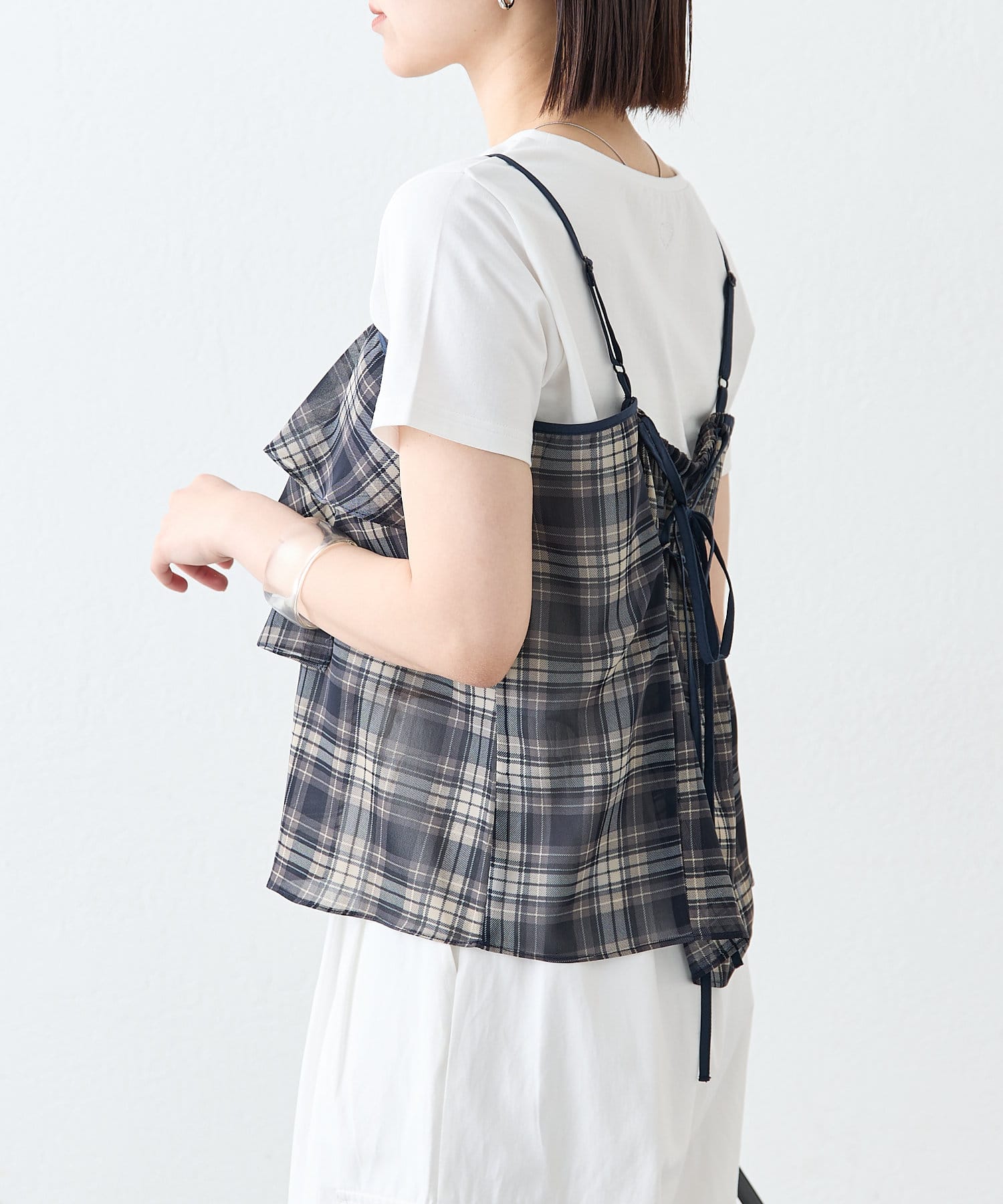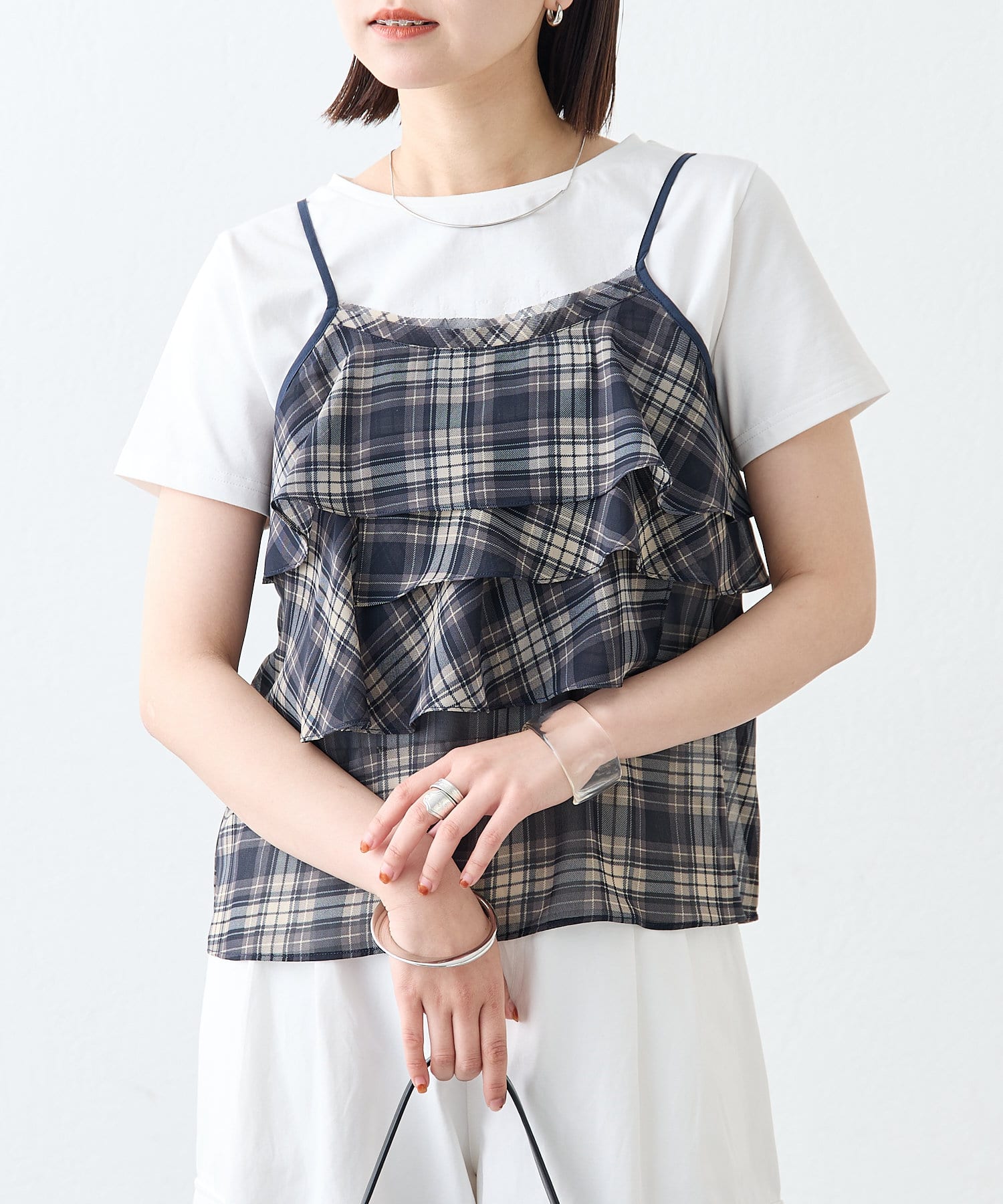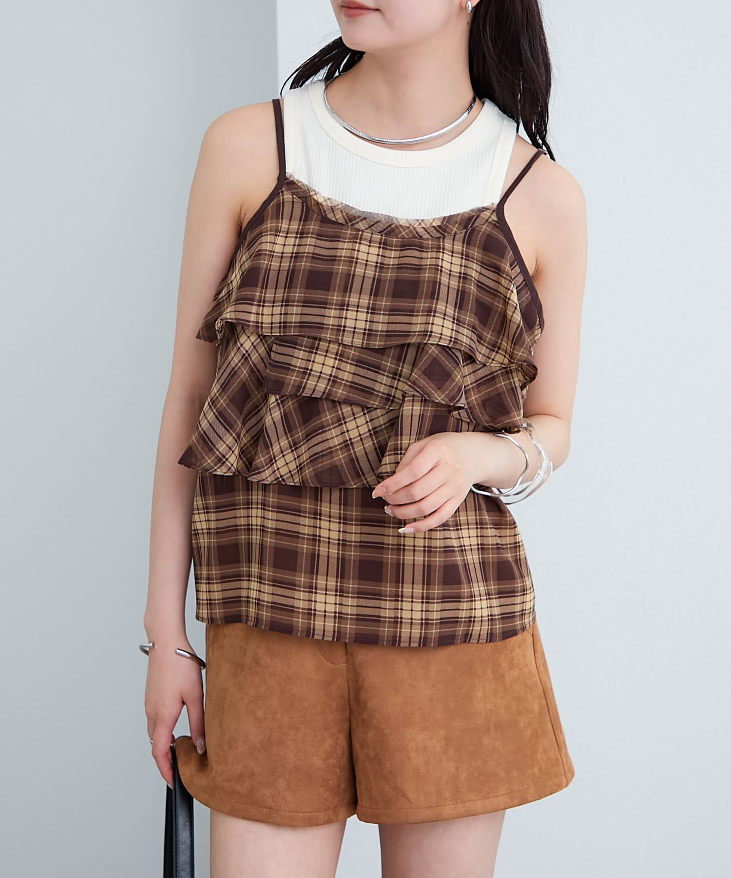 程よいボリューム感のフリルとチェック柄の組み合わせが可愛いキャミが登場!