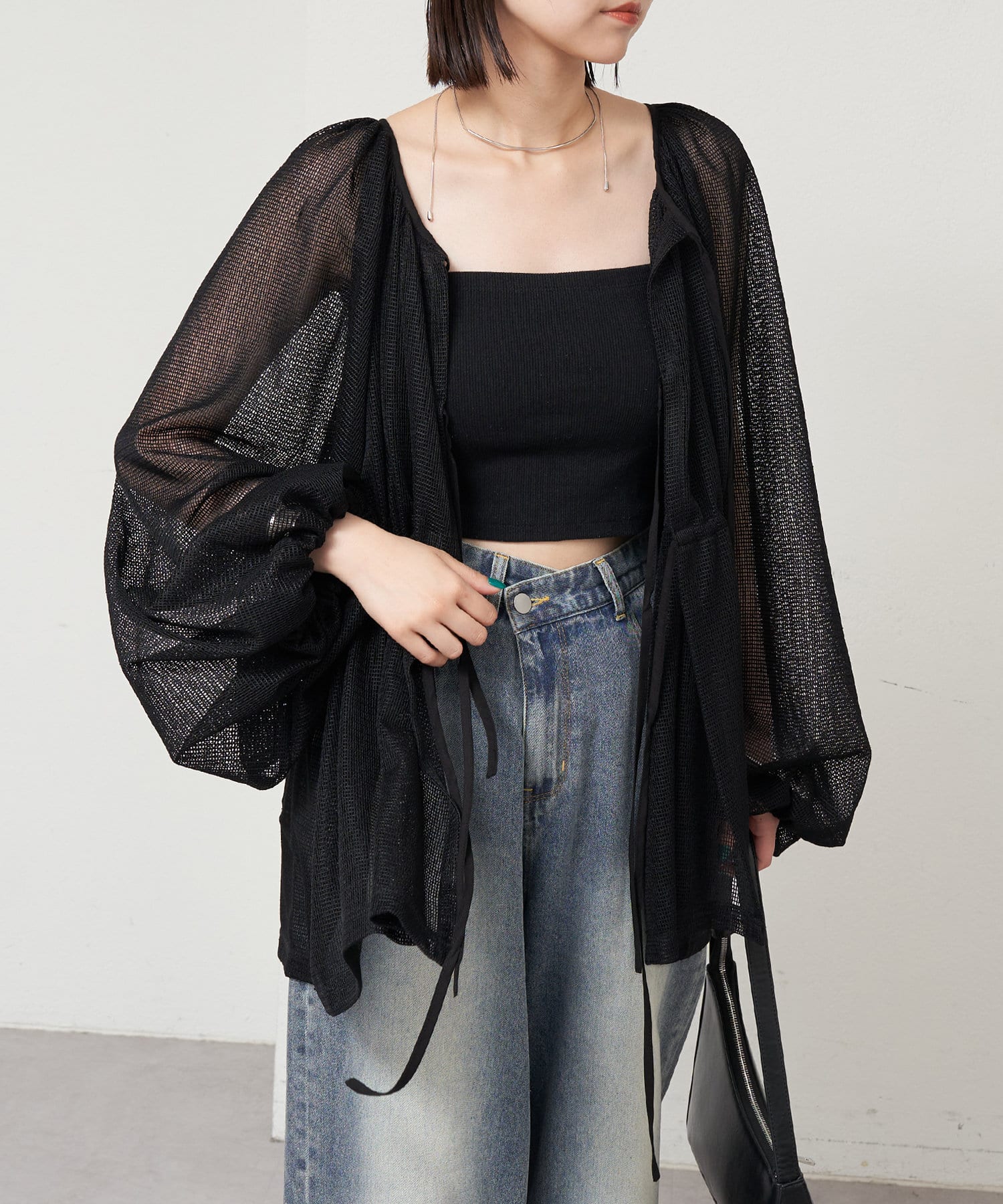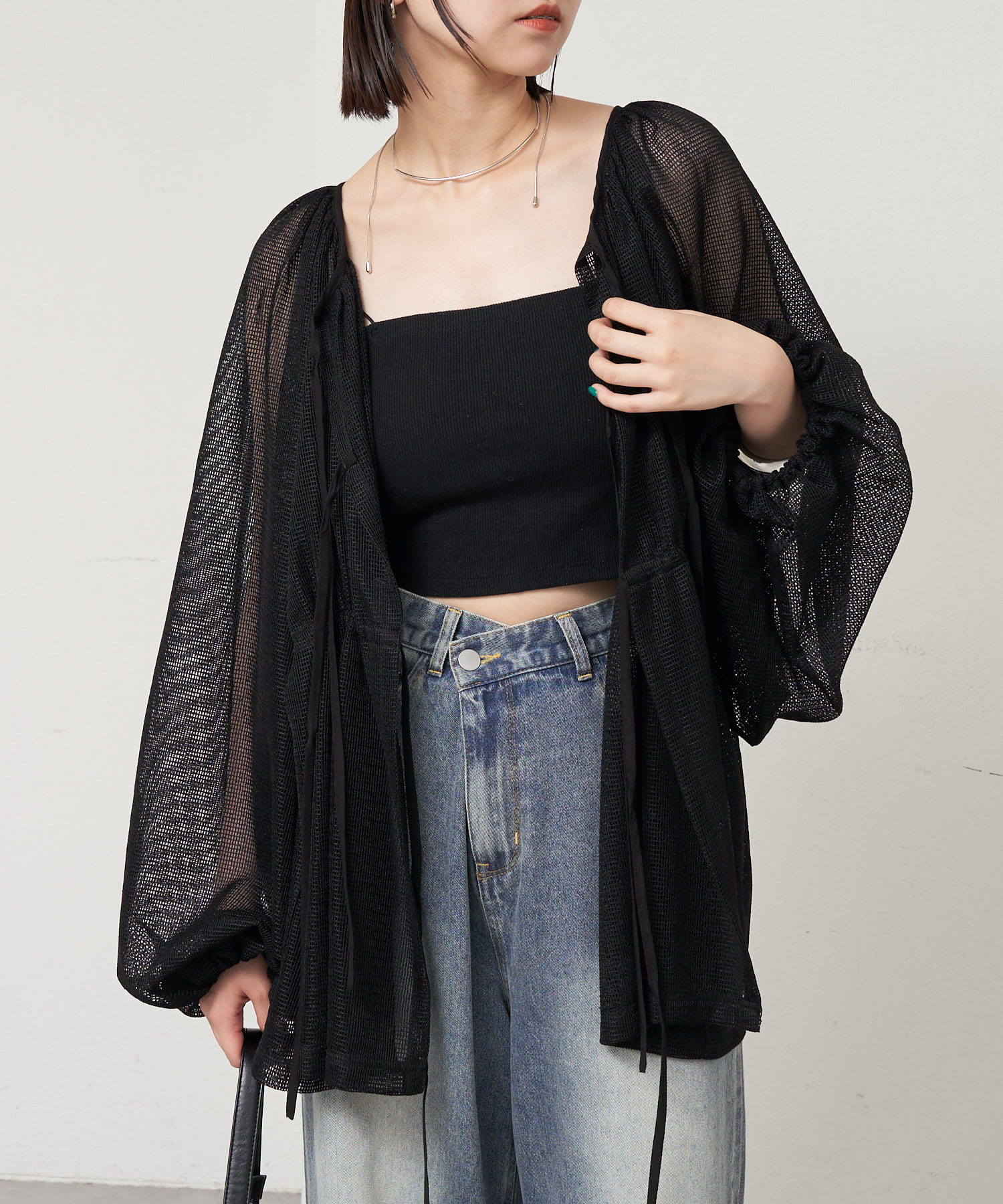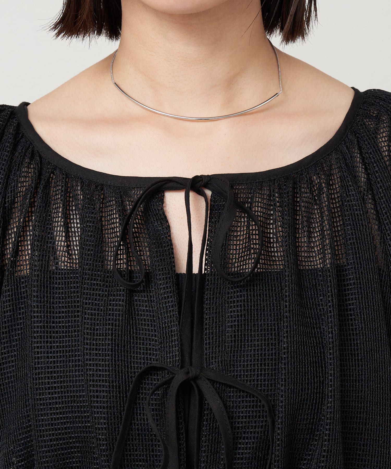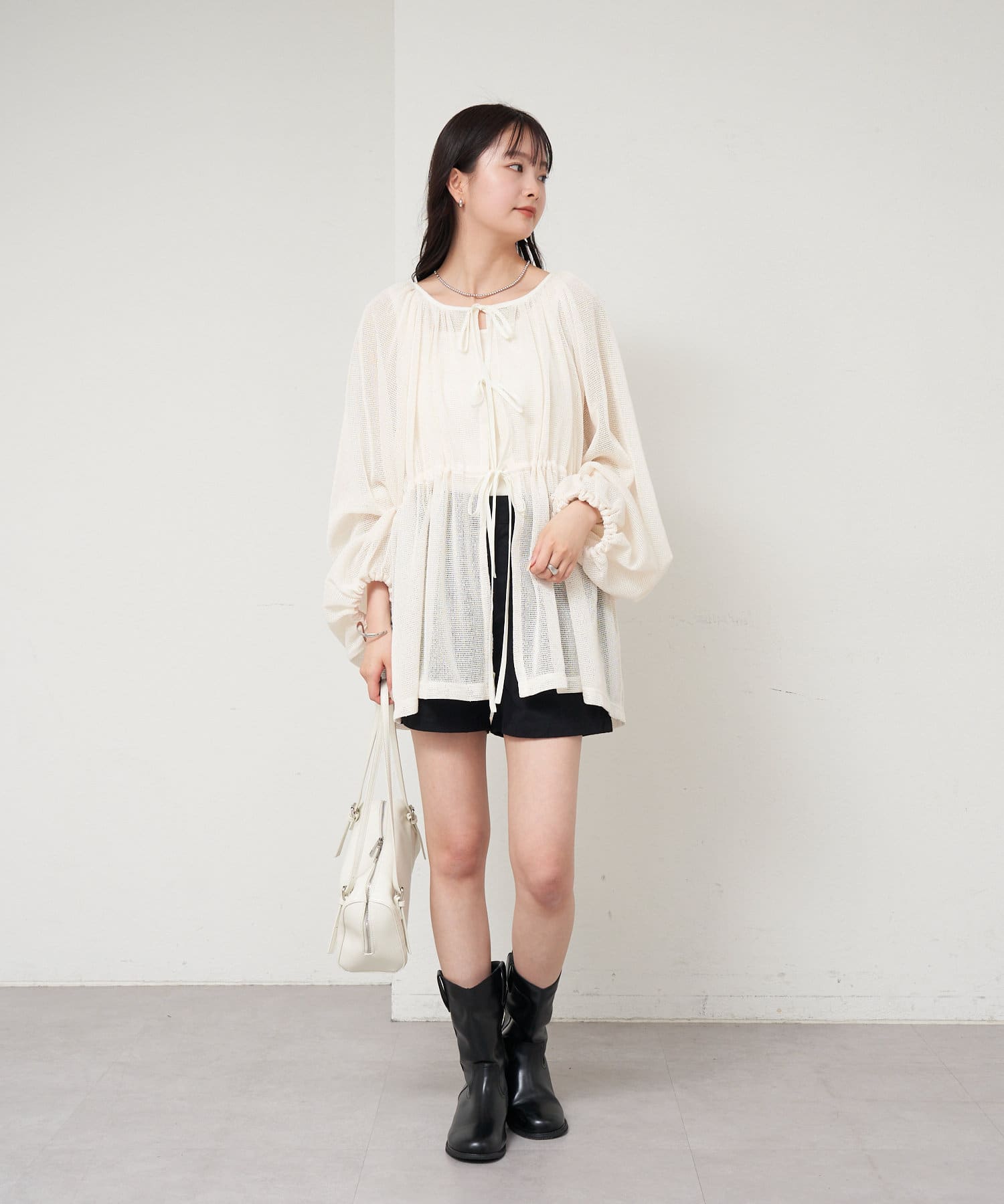・メッシュ素材でフロントの結べるリボンが可愛らしいブラウス。