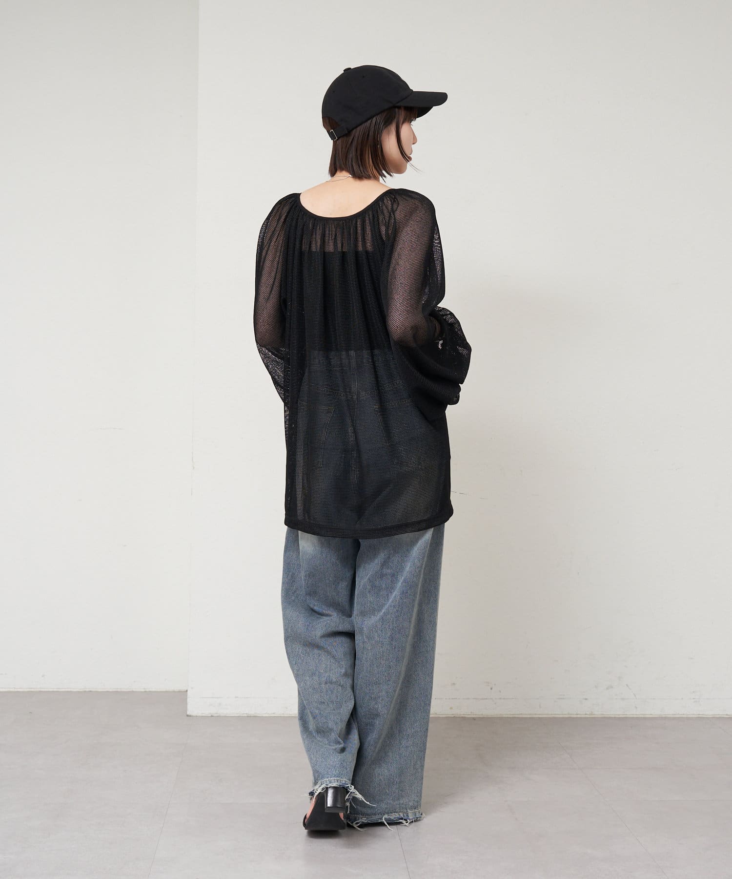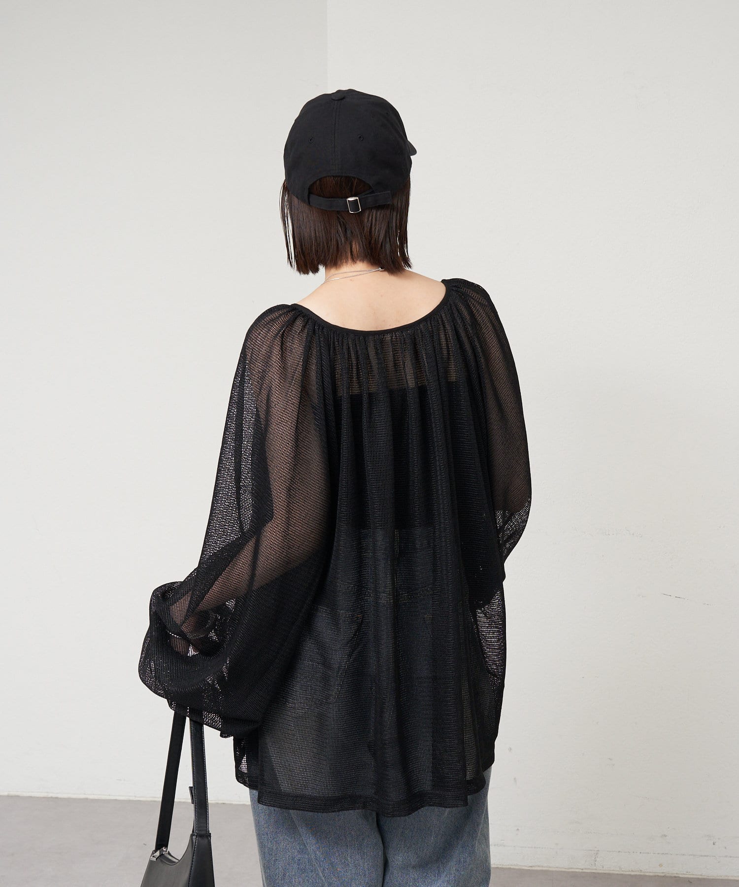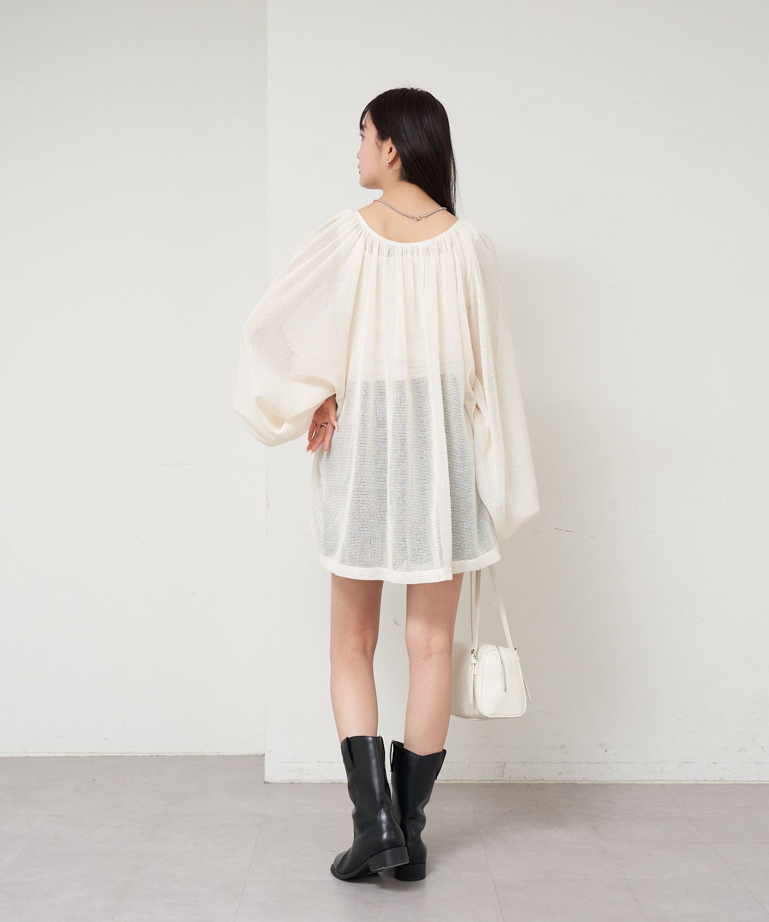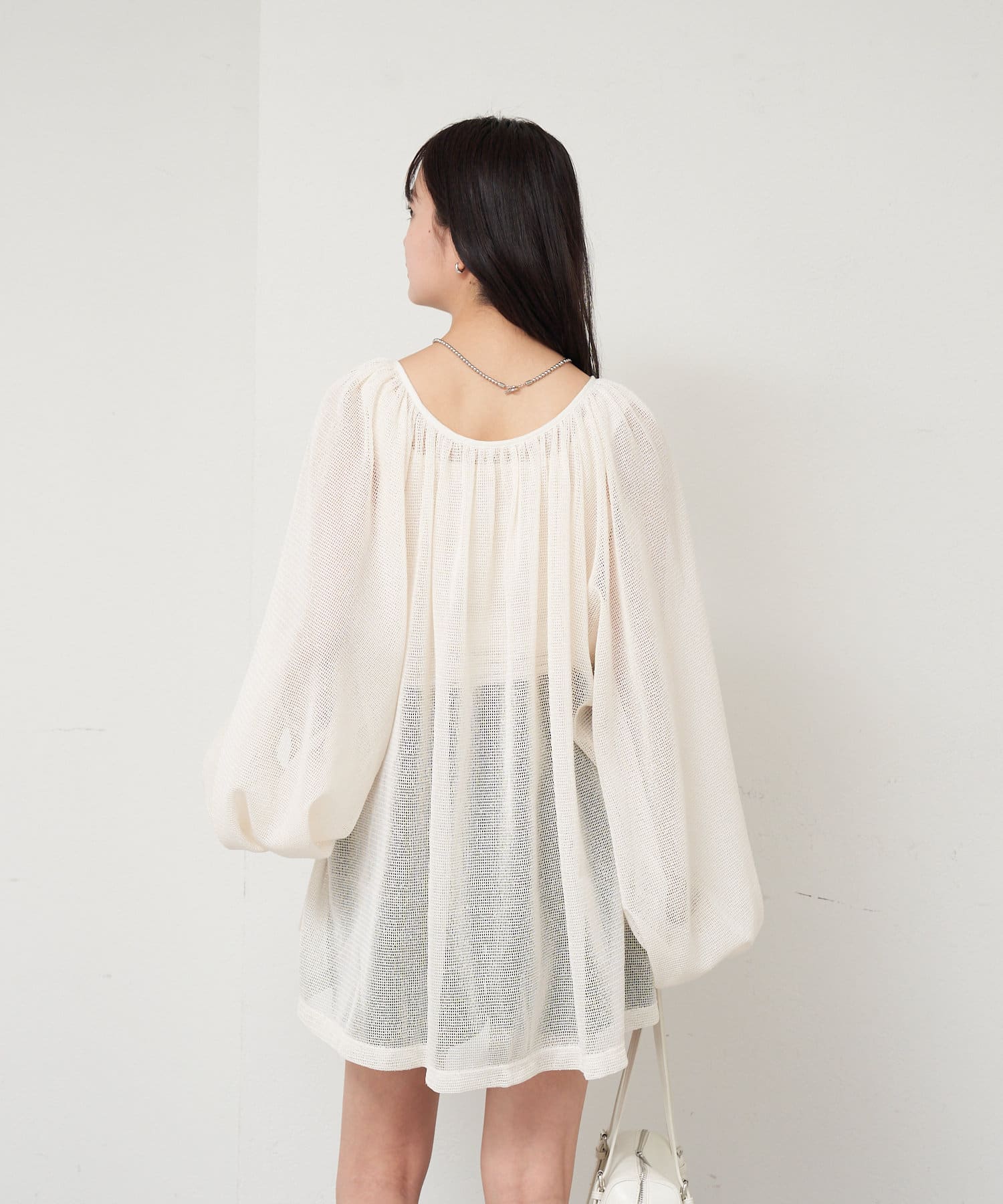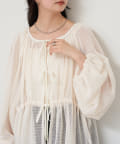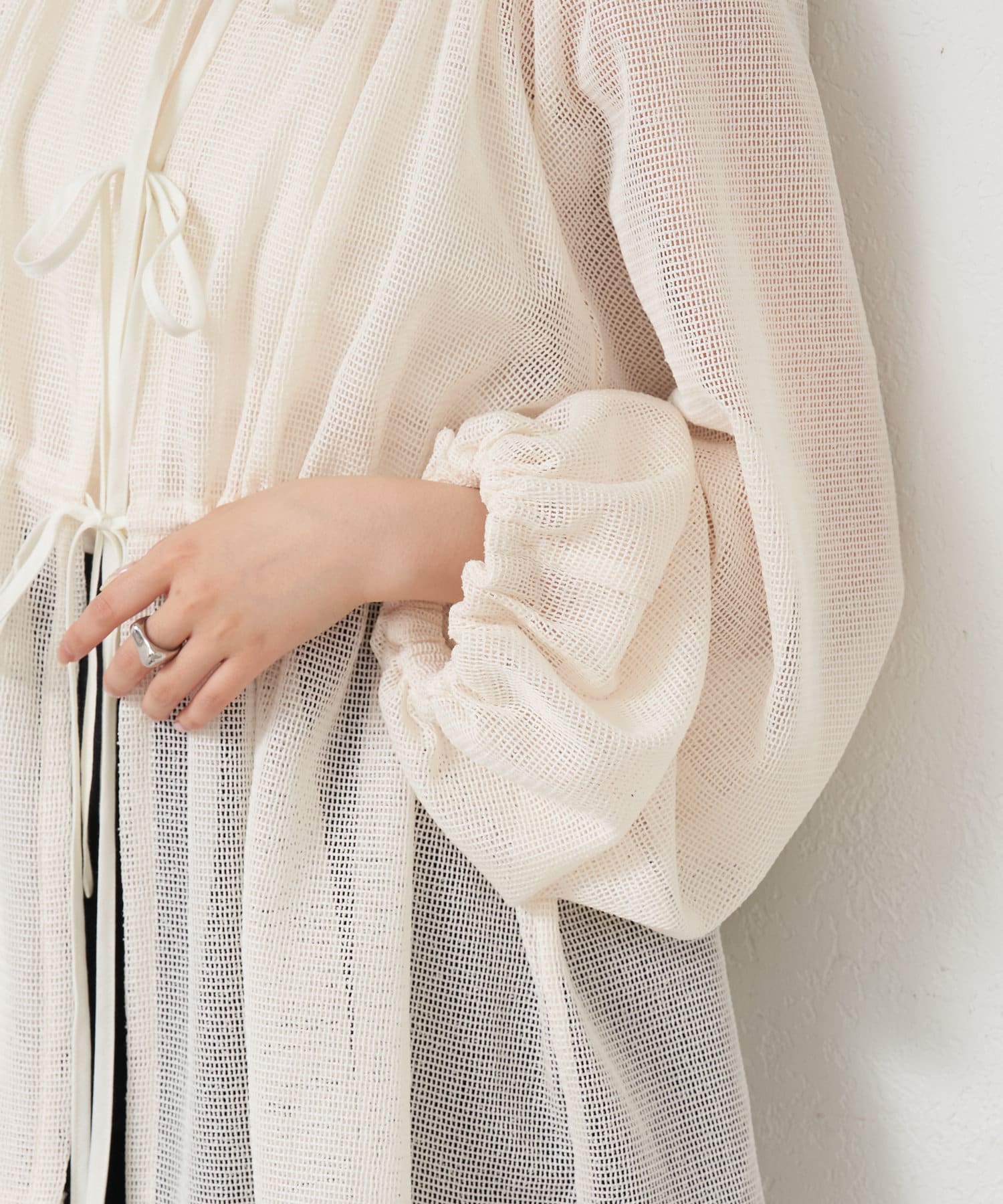 ・メッシュ素材でフロントの結べるリボンが可愛らしいブラウス。
