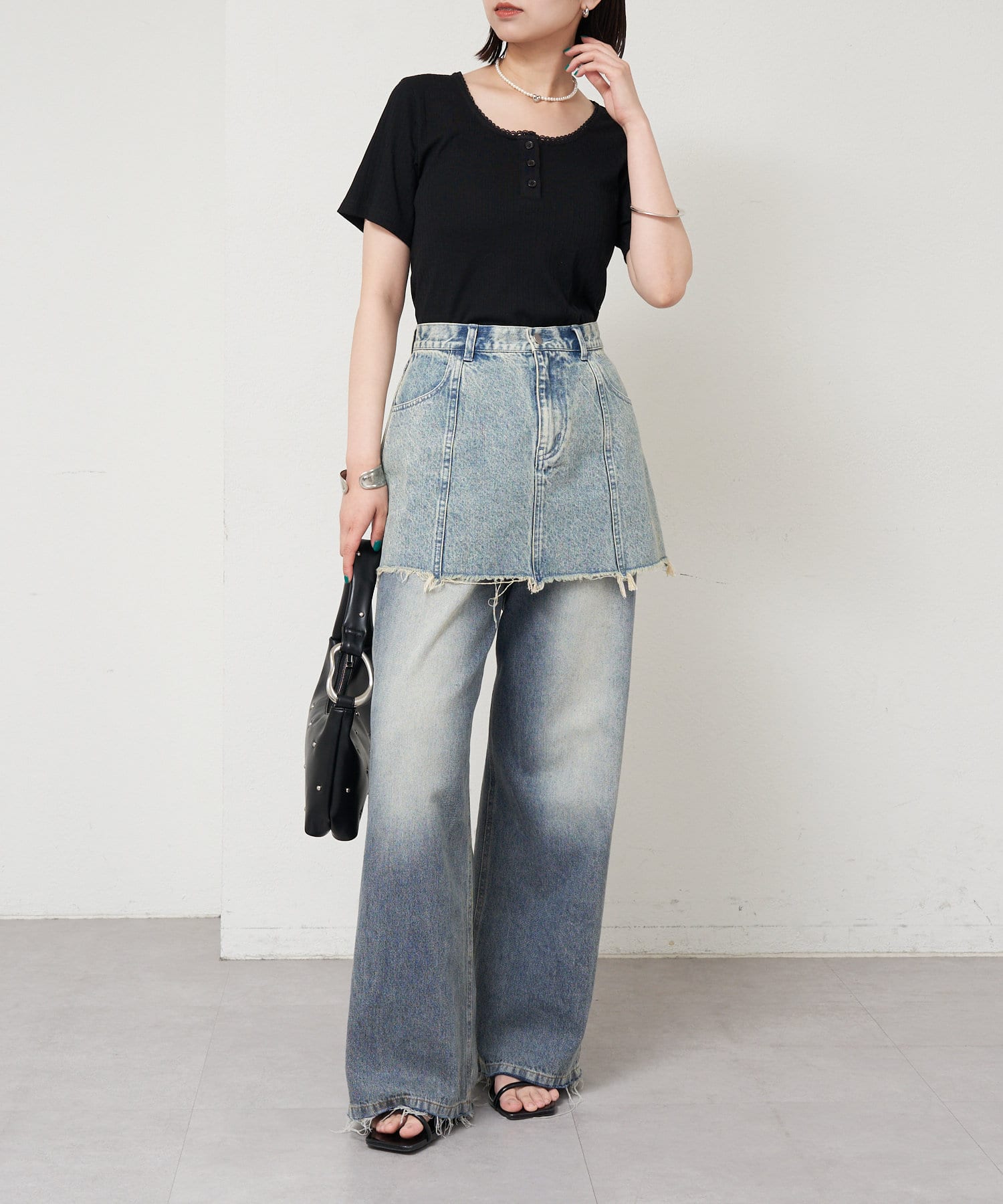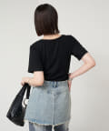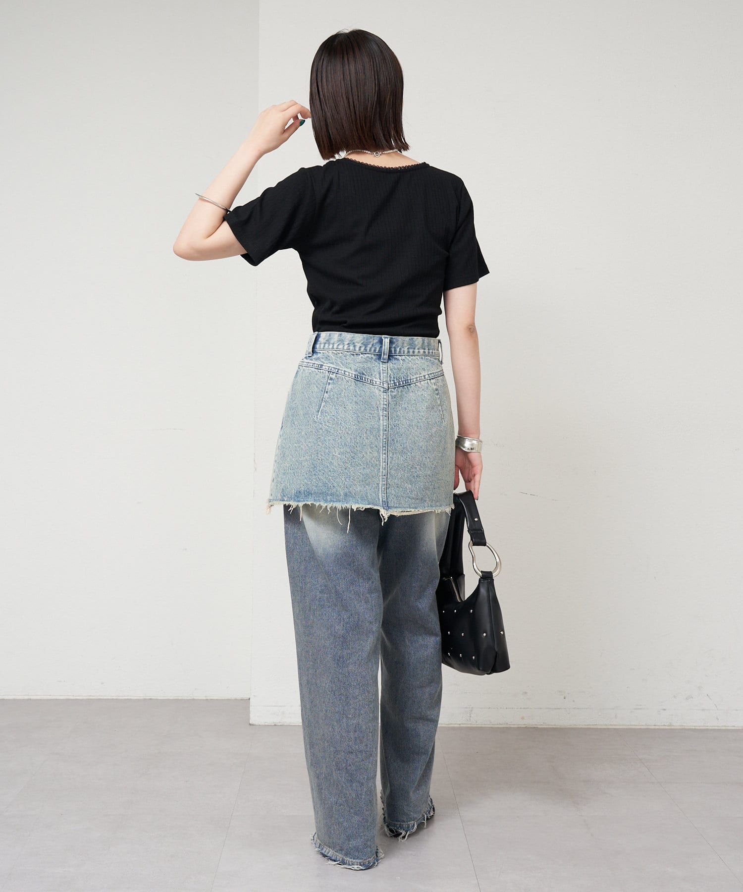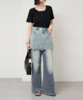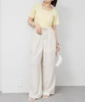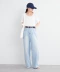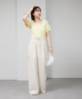 ・すっきりシルエットのトップスなので、ワイドシルエットのボトムス合わせでトレンドライクなコーデに。