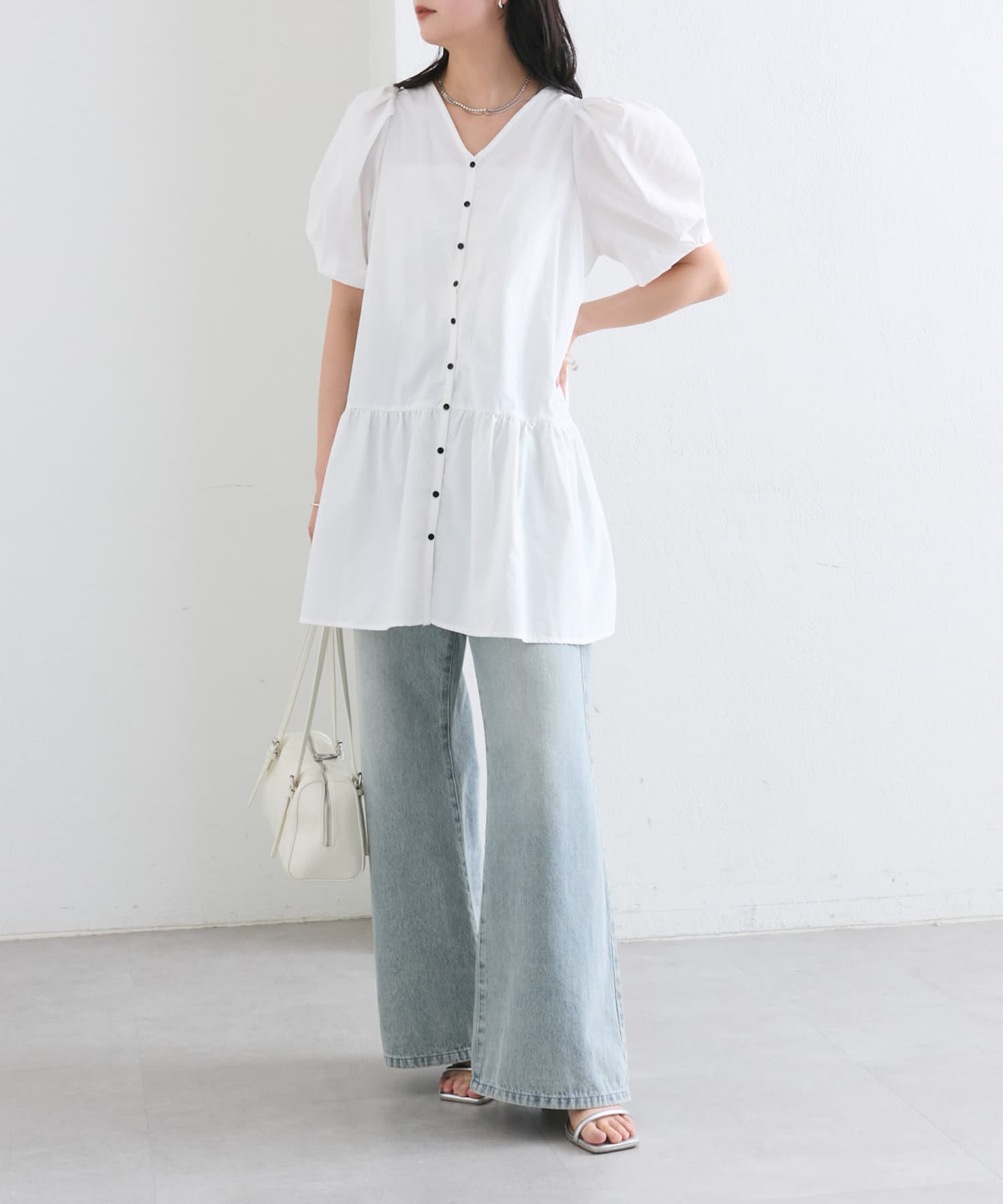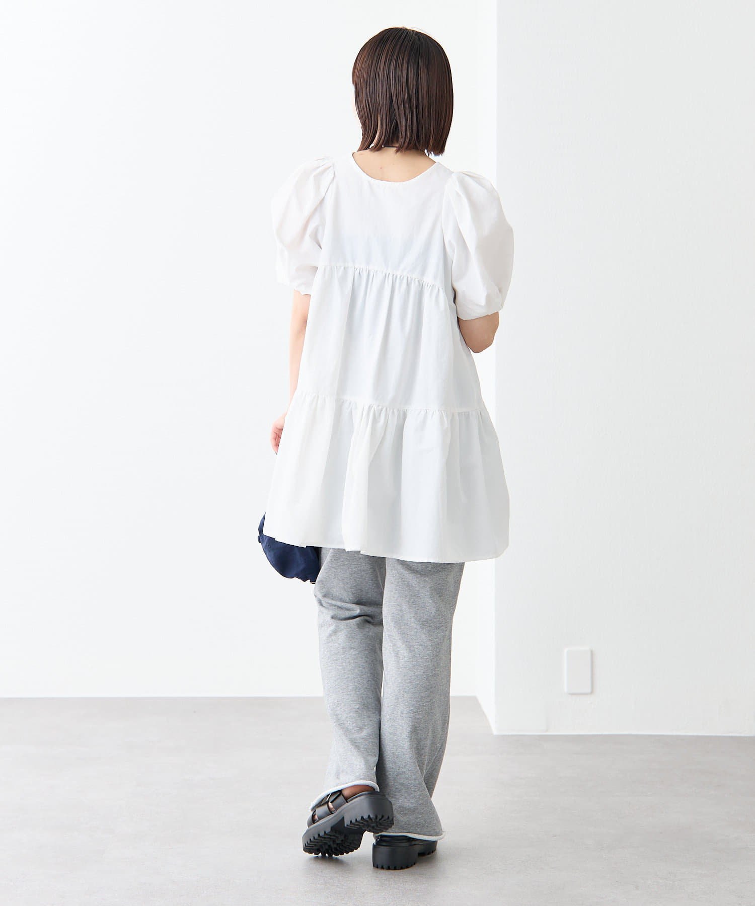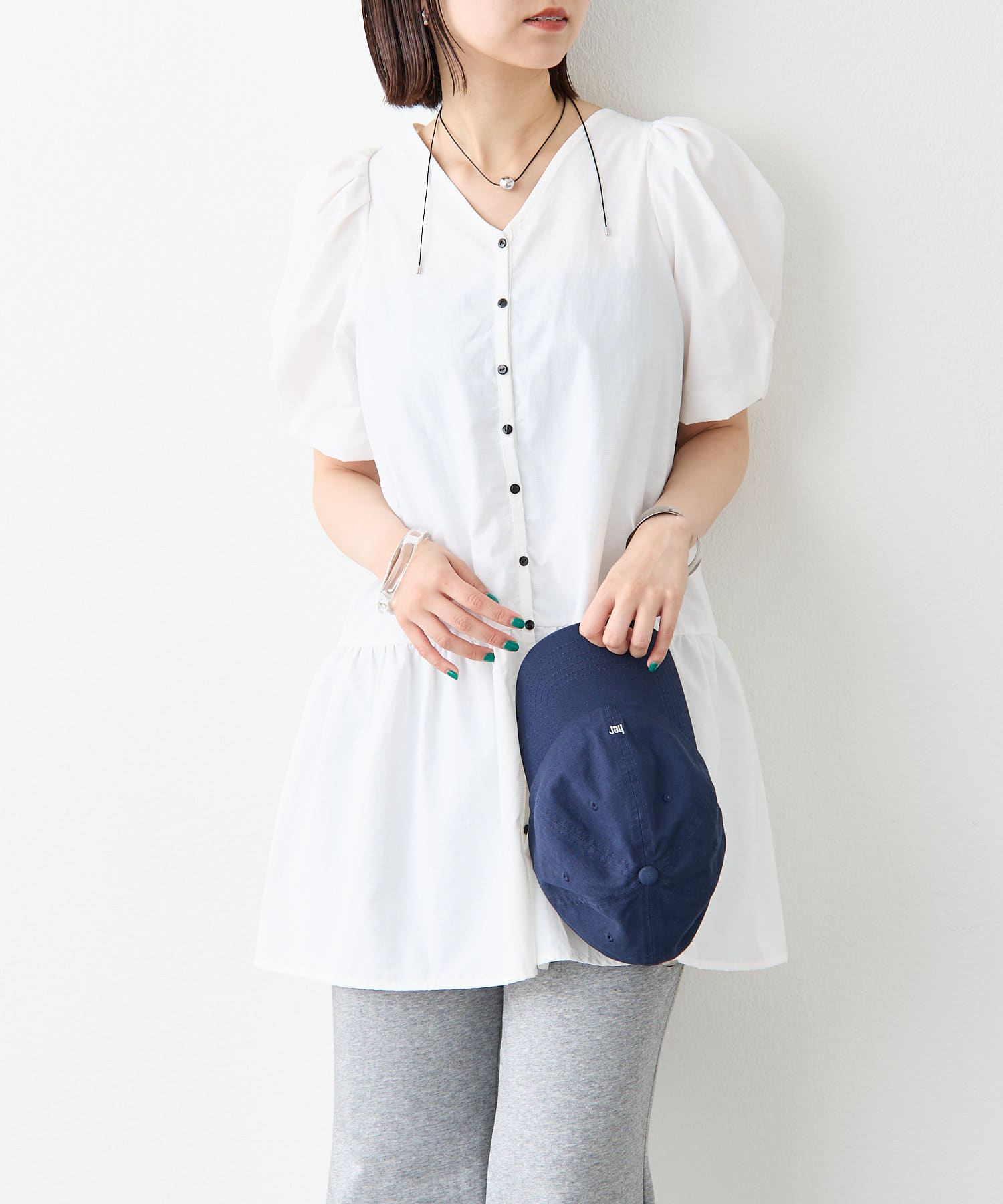 袖がパフ仕様で気になる二の腕周りをカバーできます。