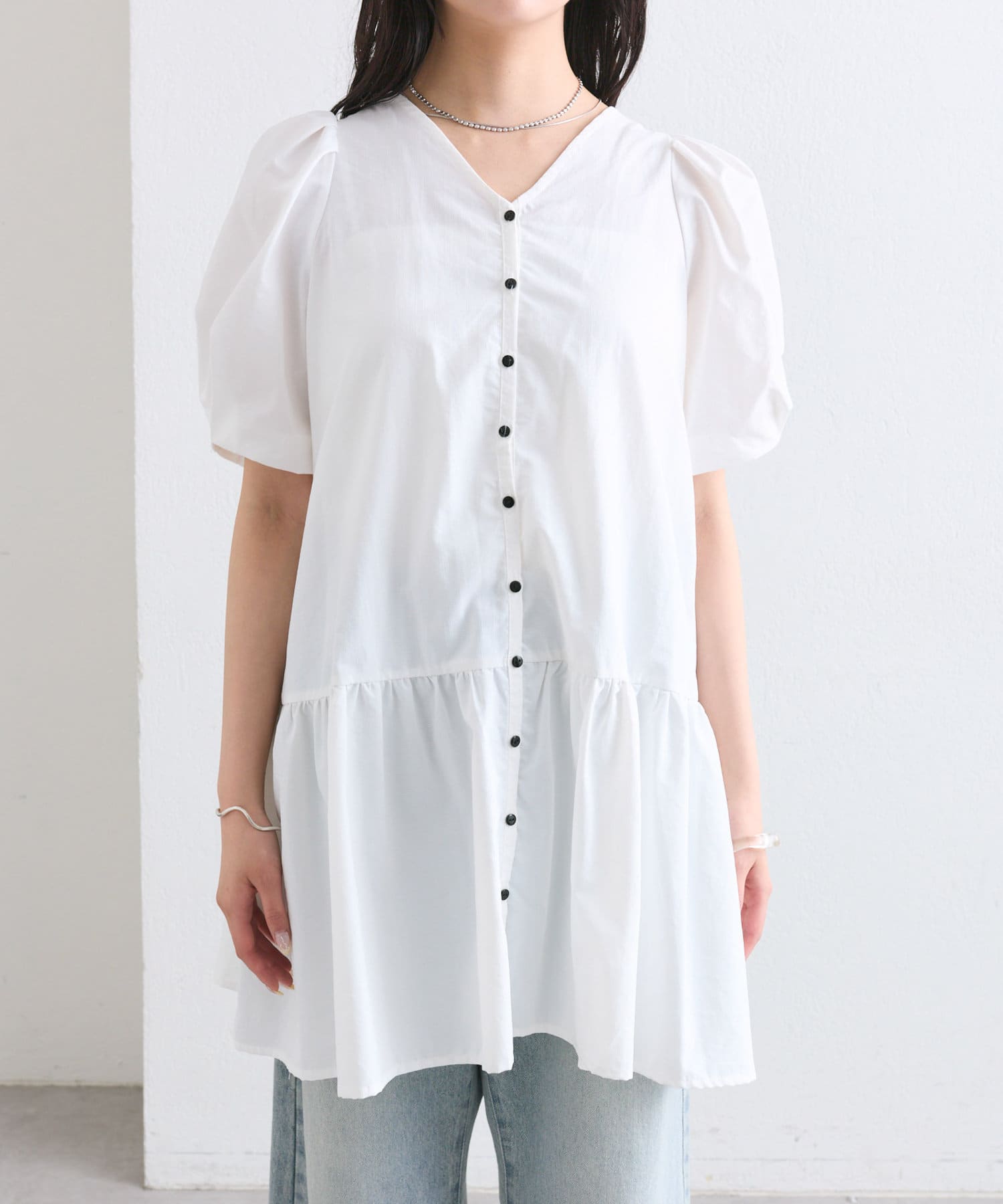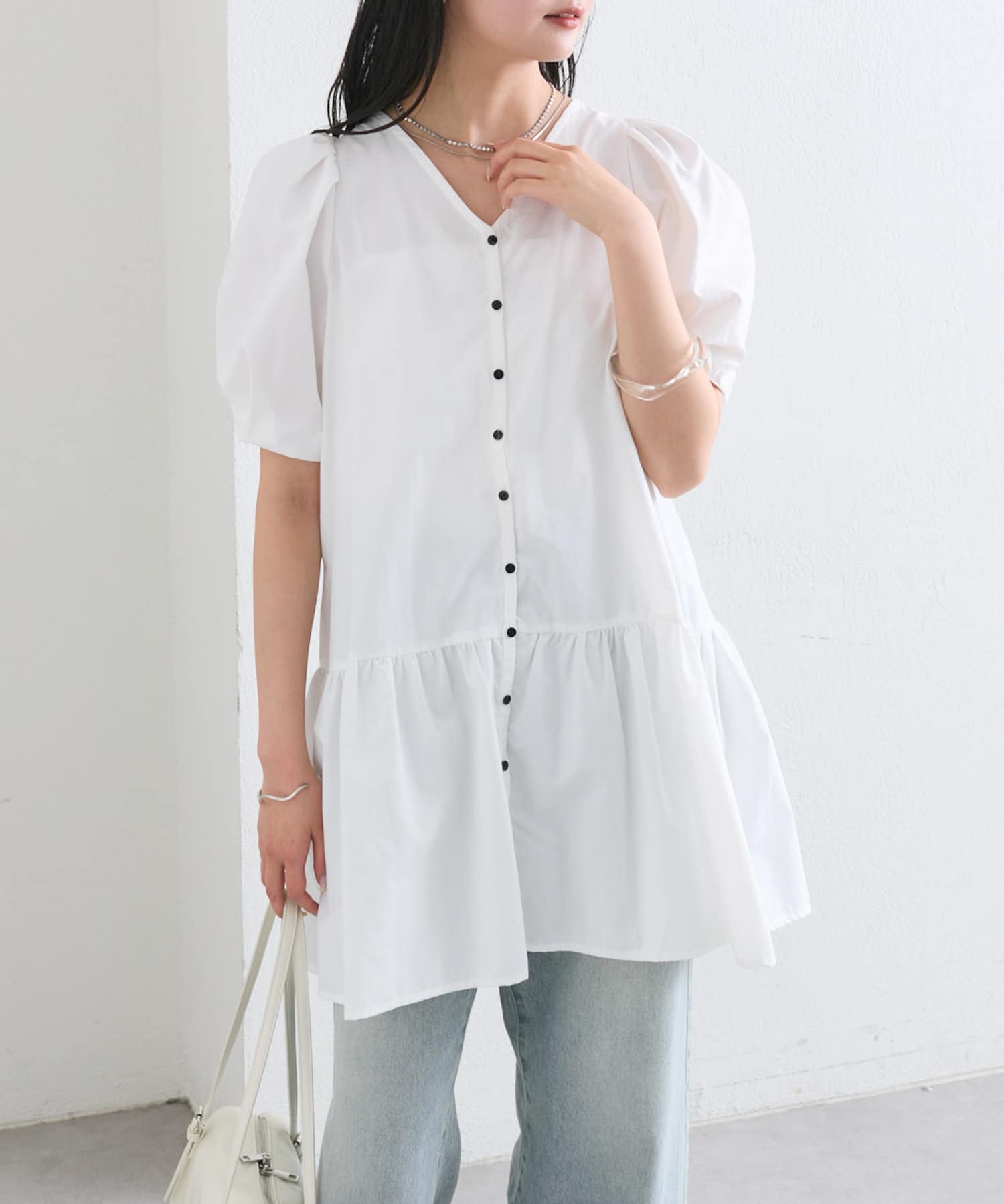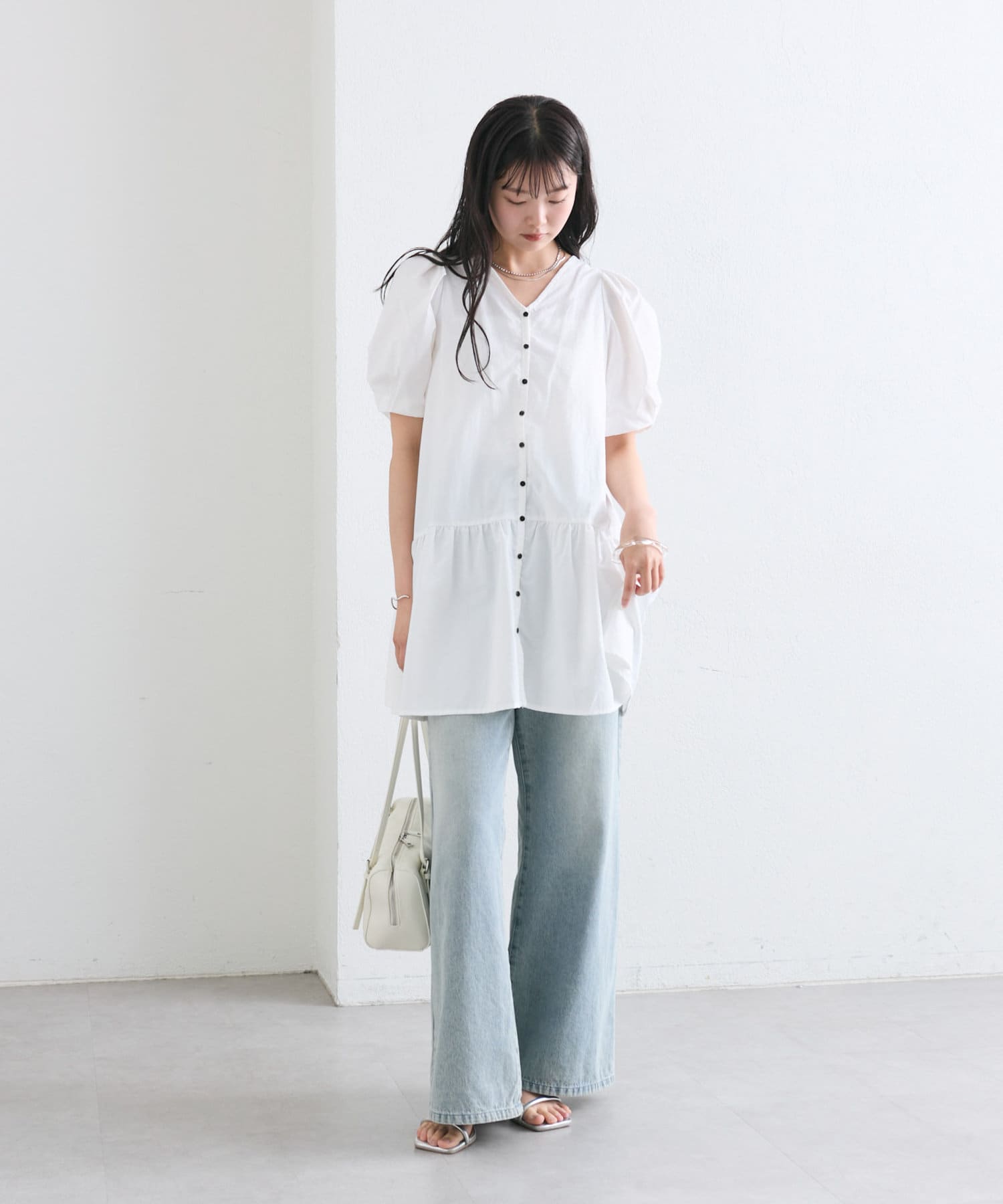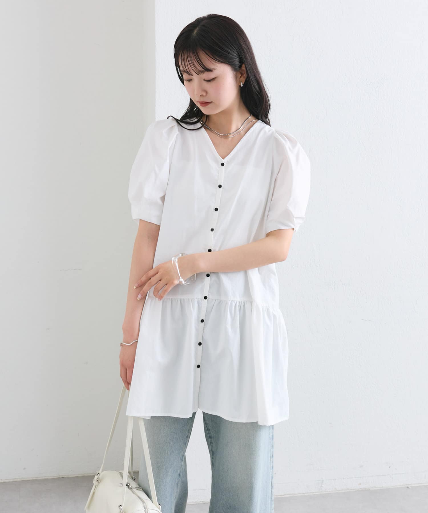 袖がパフ仕様で気になる二の腕周りをカバーできます。