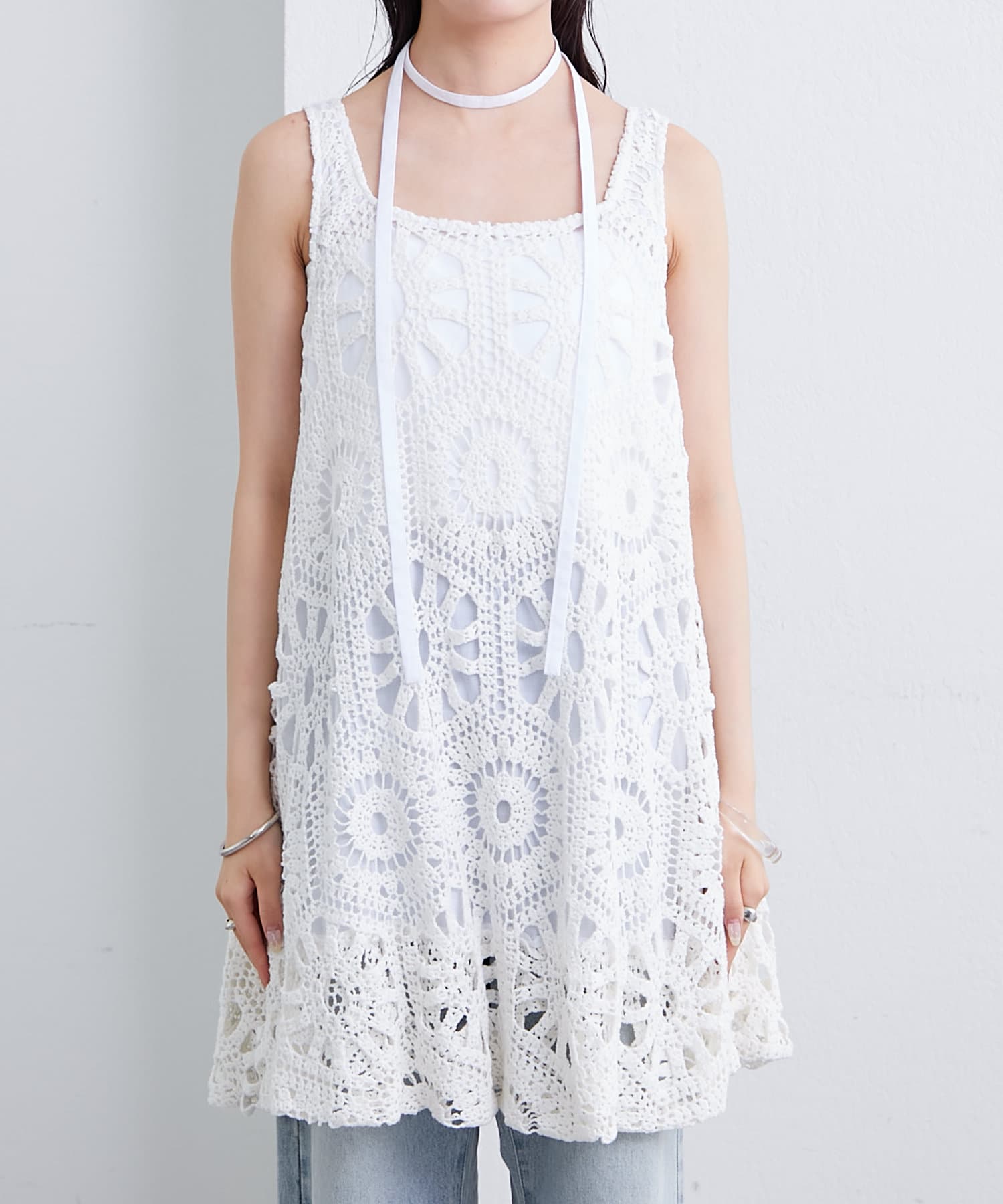 クロシェ編みが涼し気な印象で、これからの時期に1枚は持っておきたいアイテムです♡