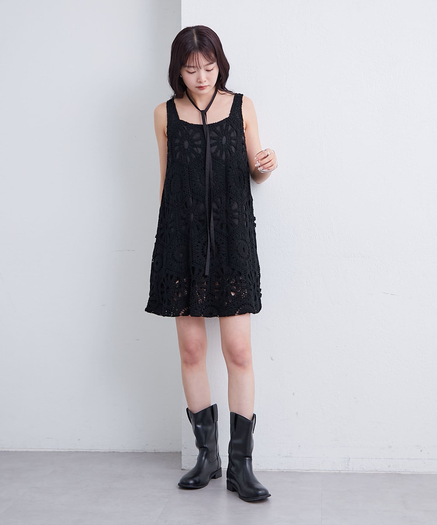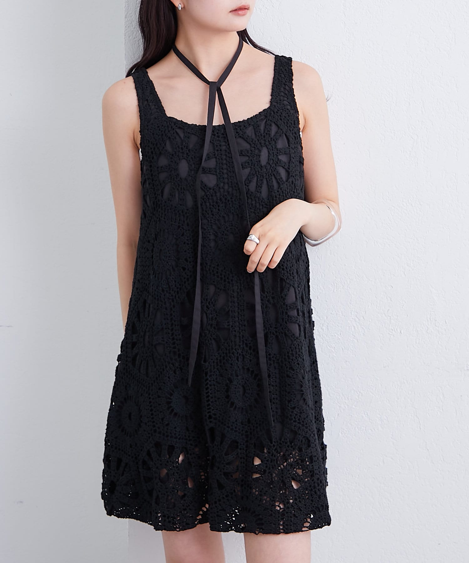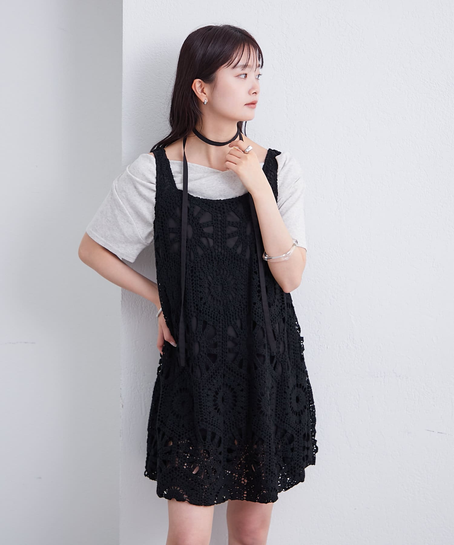 ・繊細なクロシェ編みが夏らしい印象のバルーンミニジャンスカ。