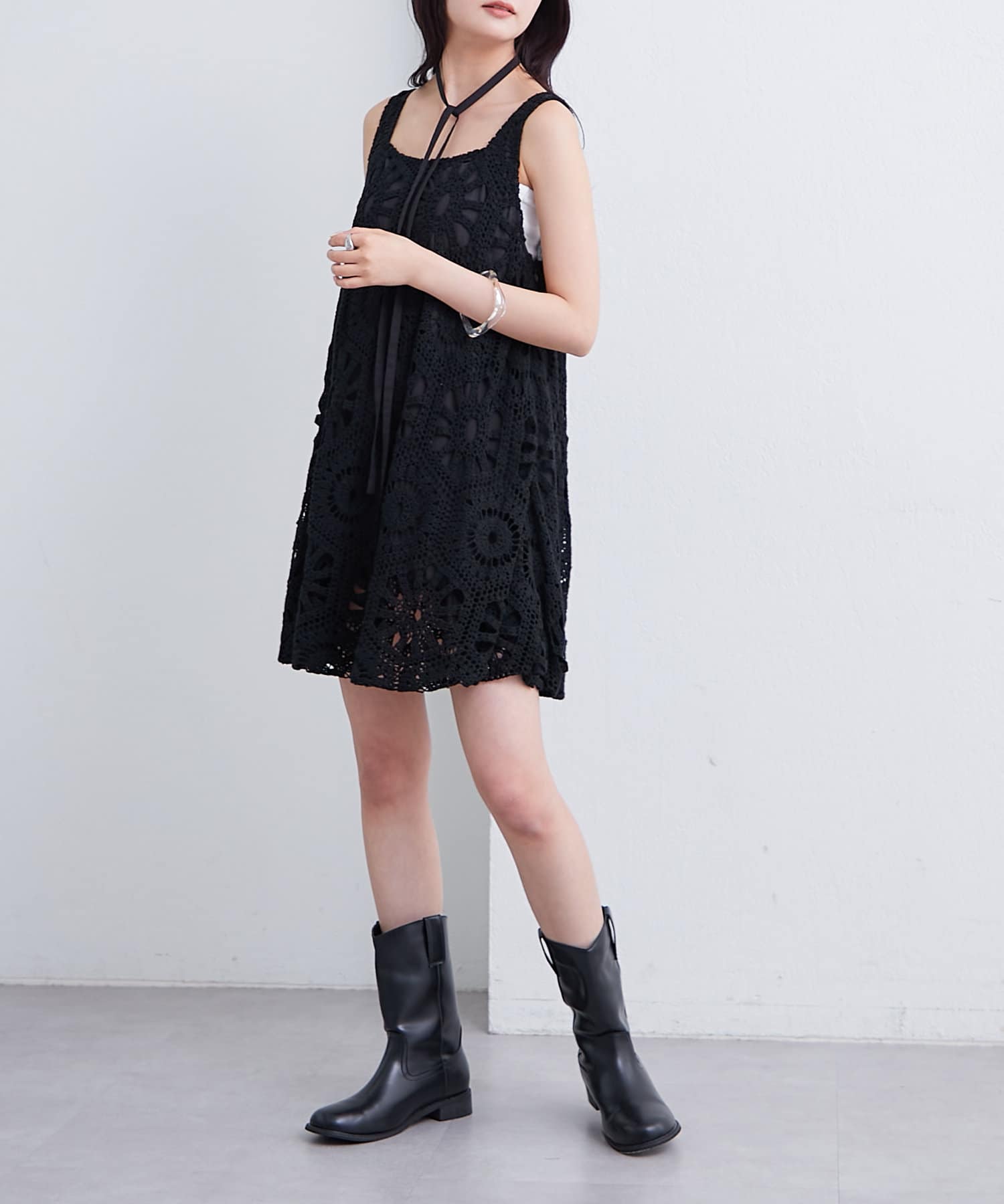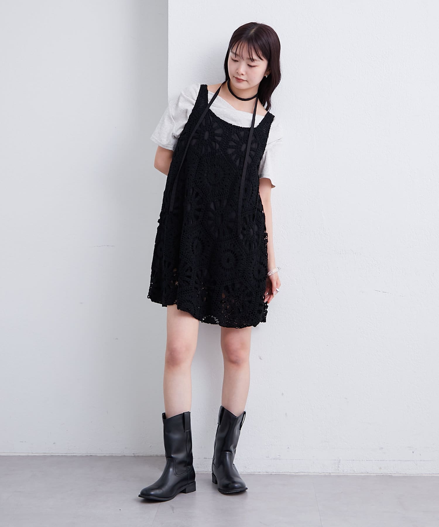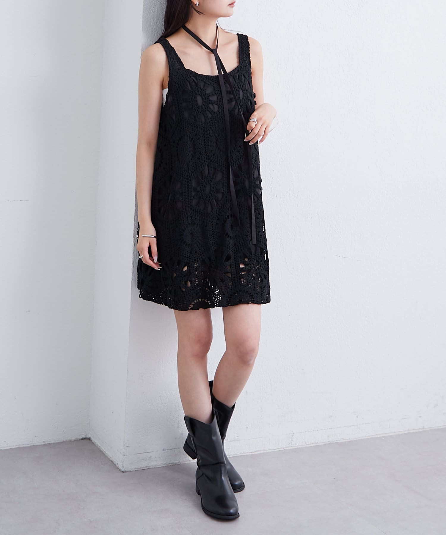 ・繊細なクロシェ編みが夏らしい印象のバルーンミニジャンスカ。