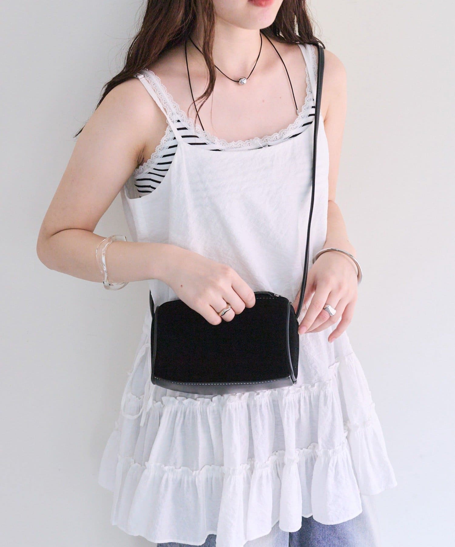 ・程よい大きさのフォルムが可愛らしく、スエード素材でトレンド感がアップするアイテム。