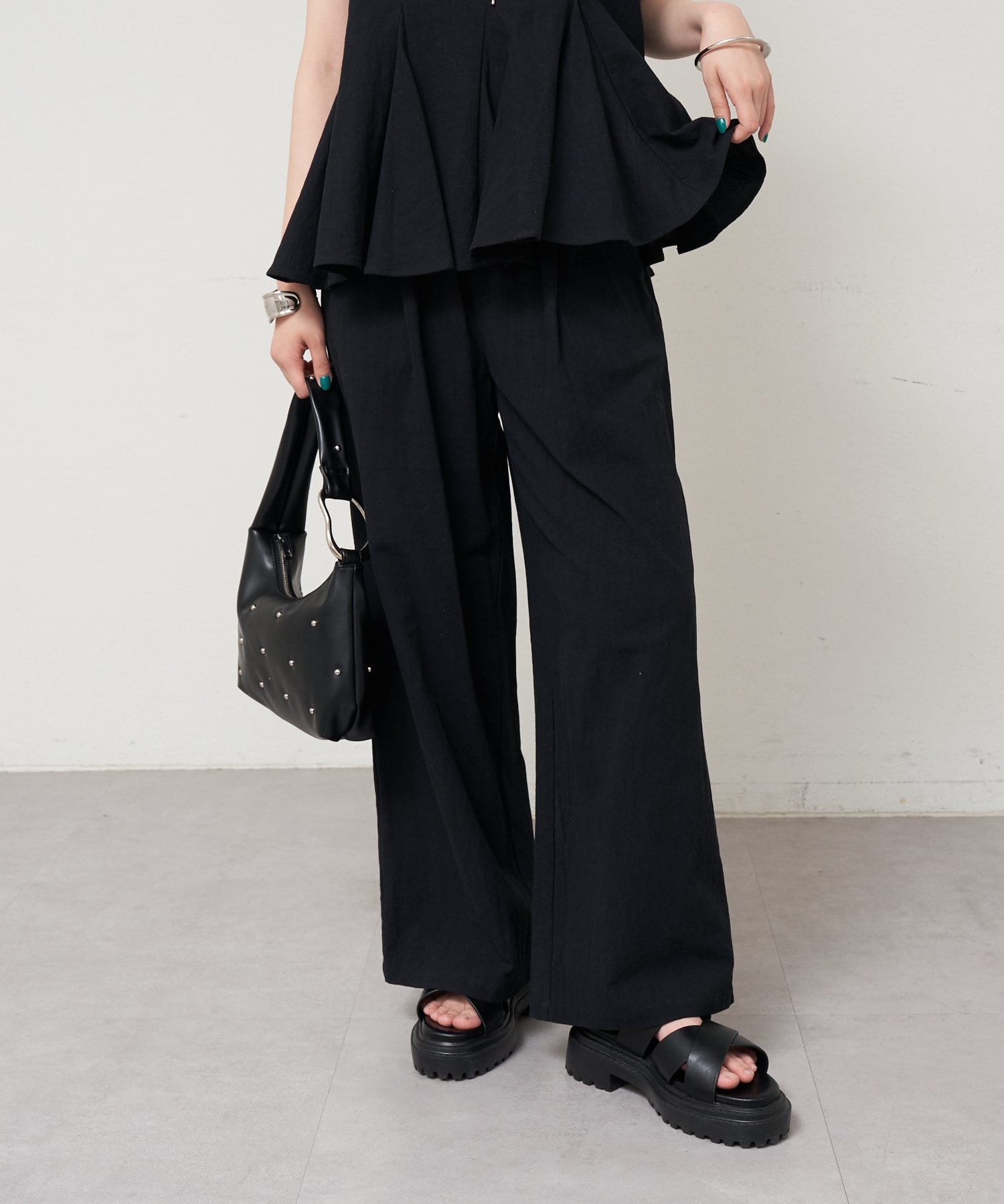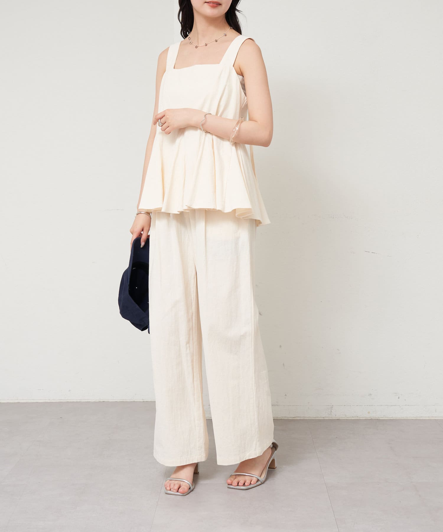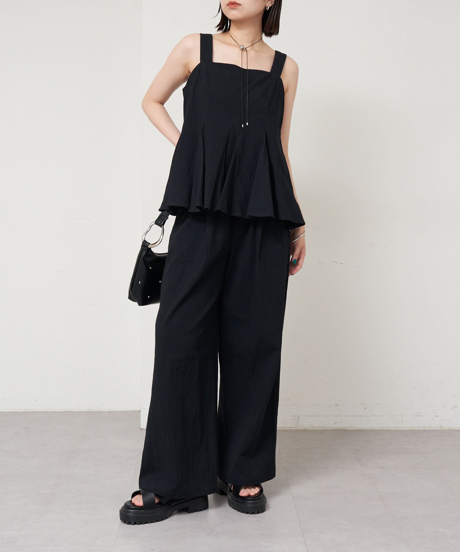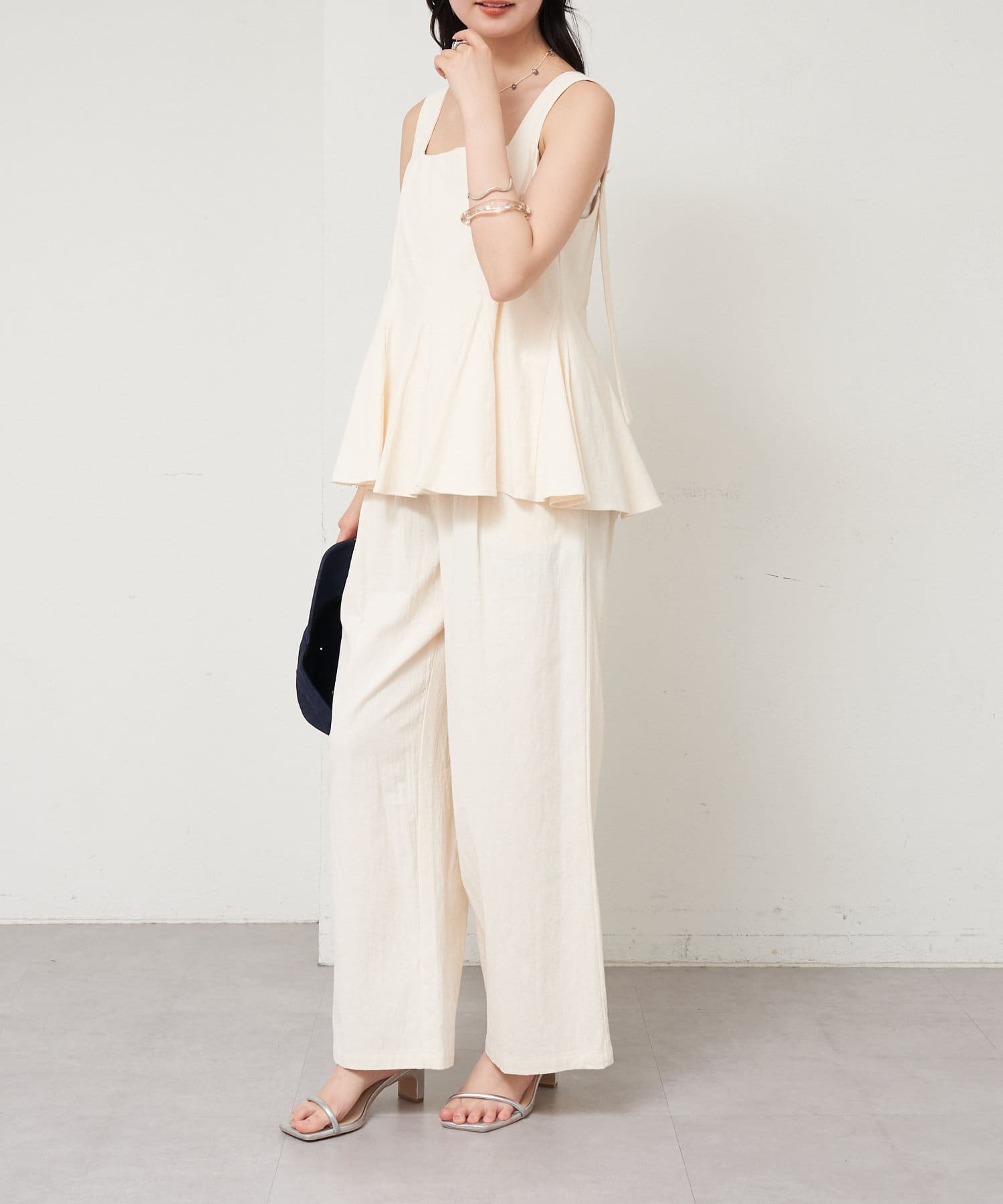 ・ビスチェとワイドパンツのセットアップがオシャレなペプラムビスチェSET UP。