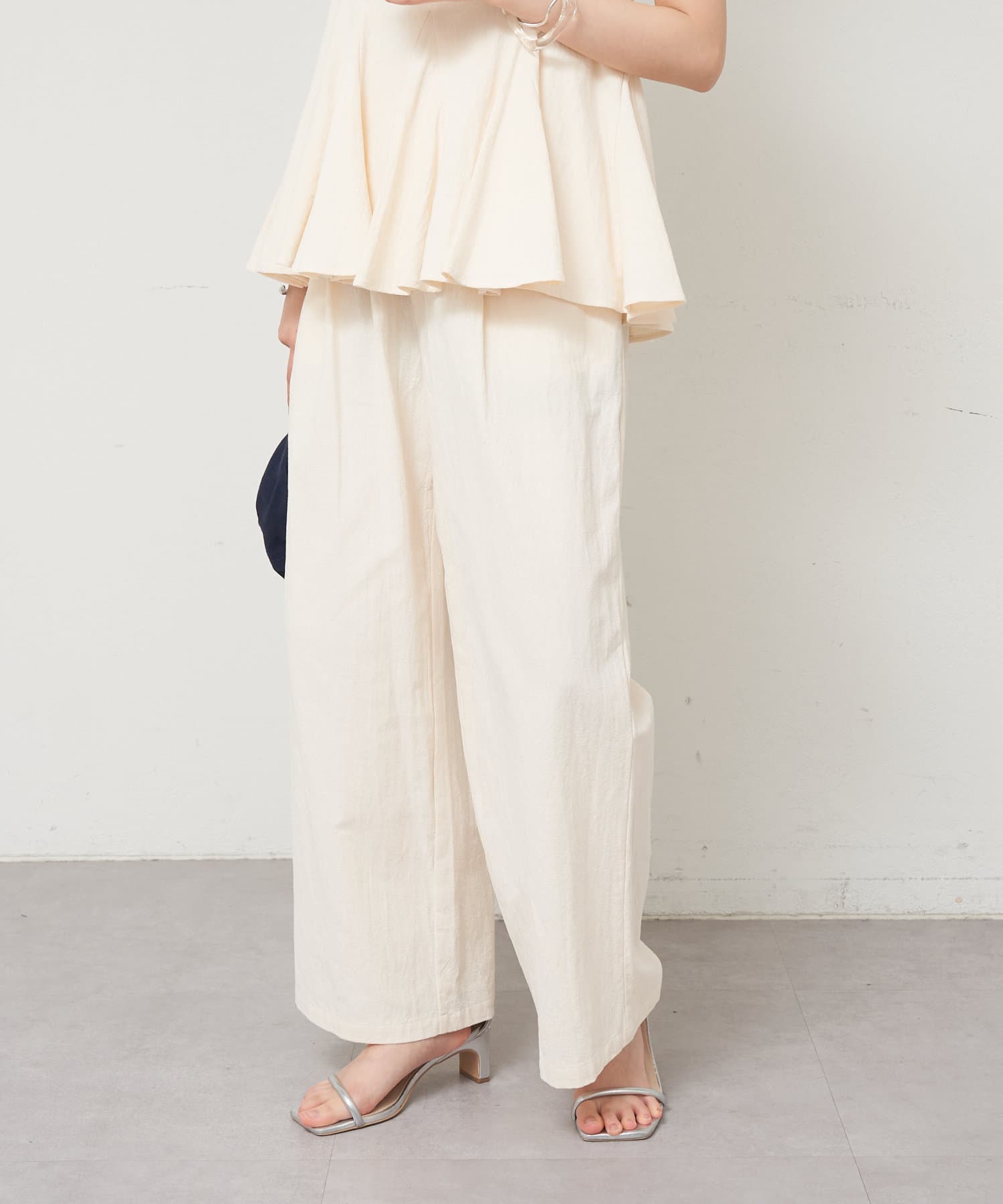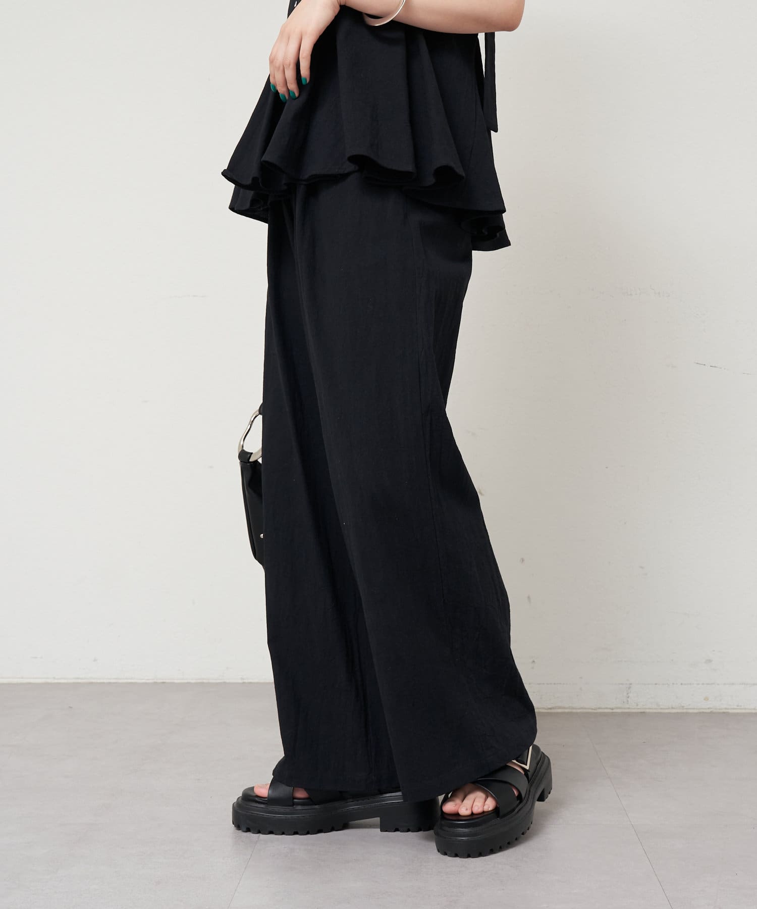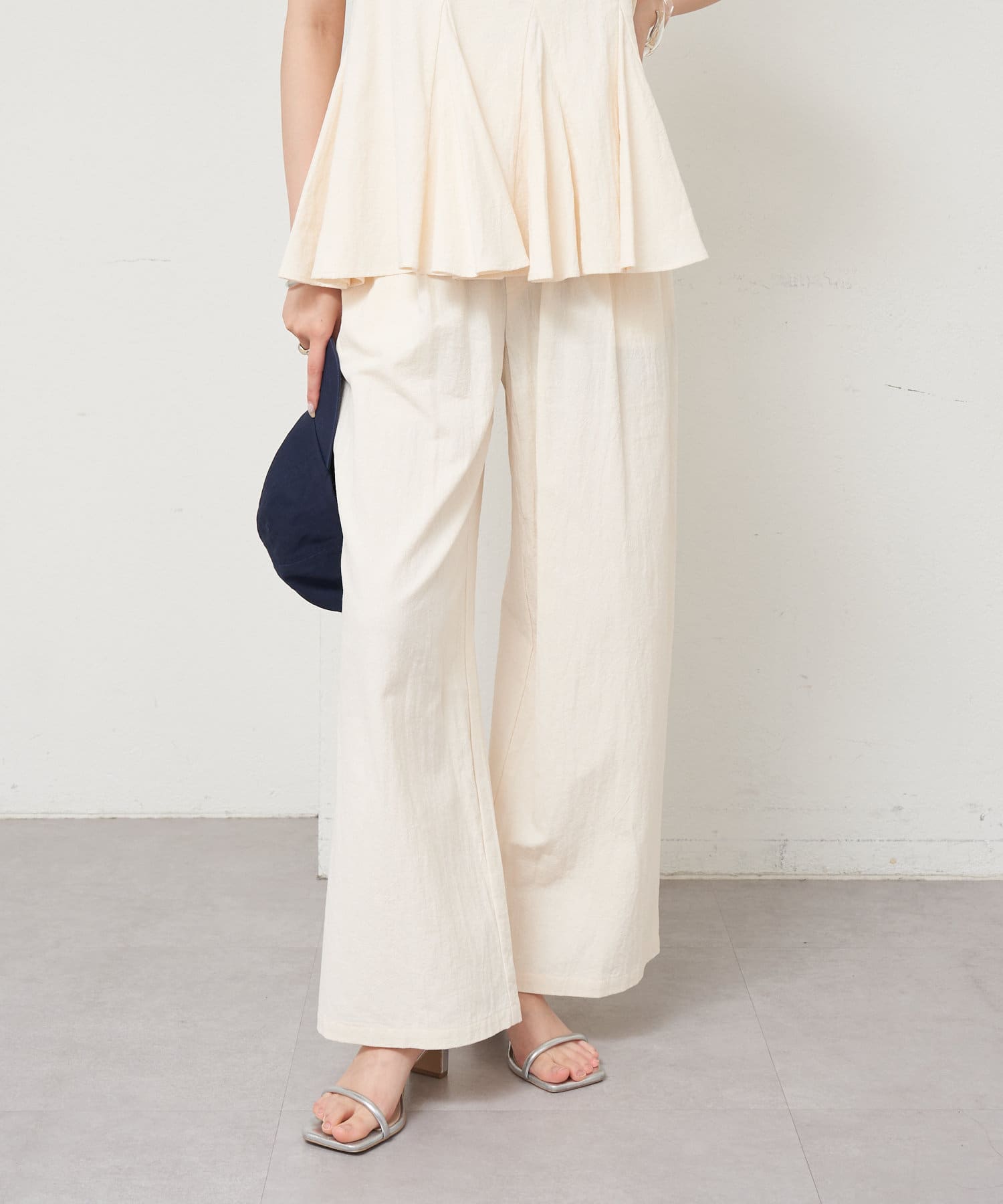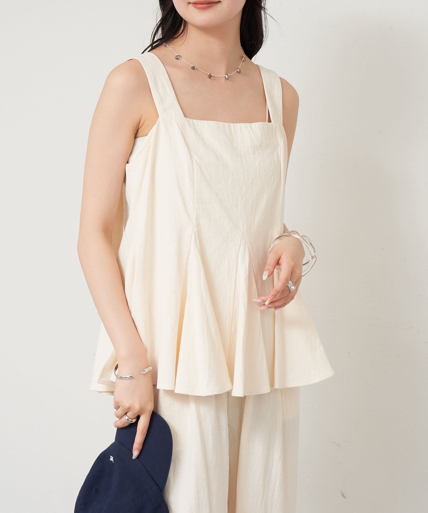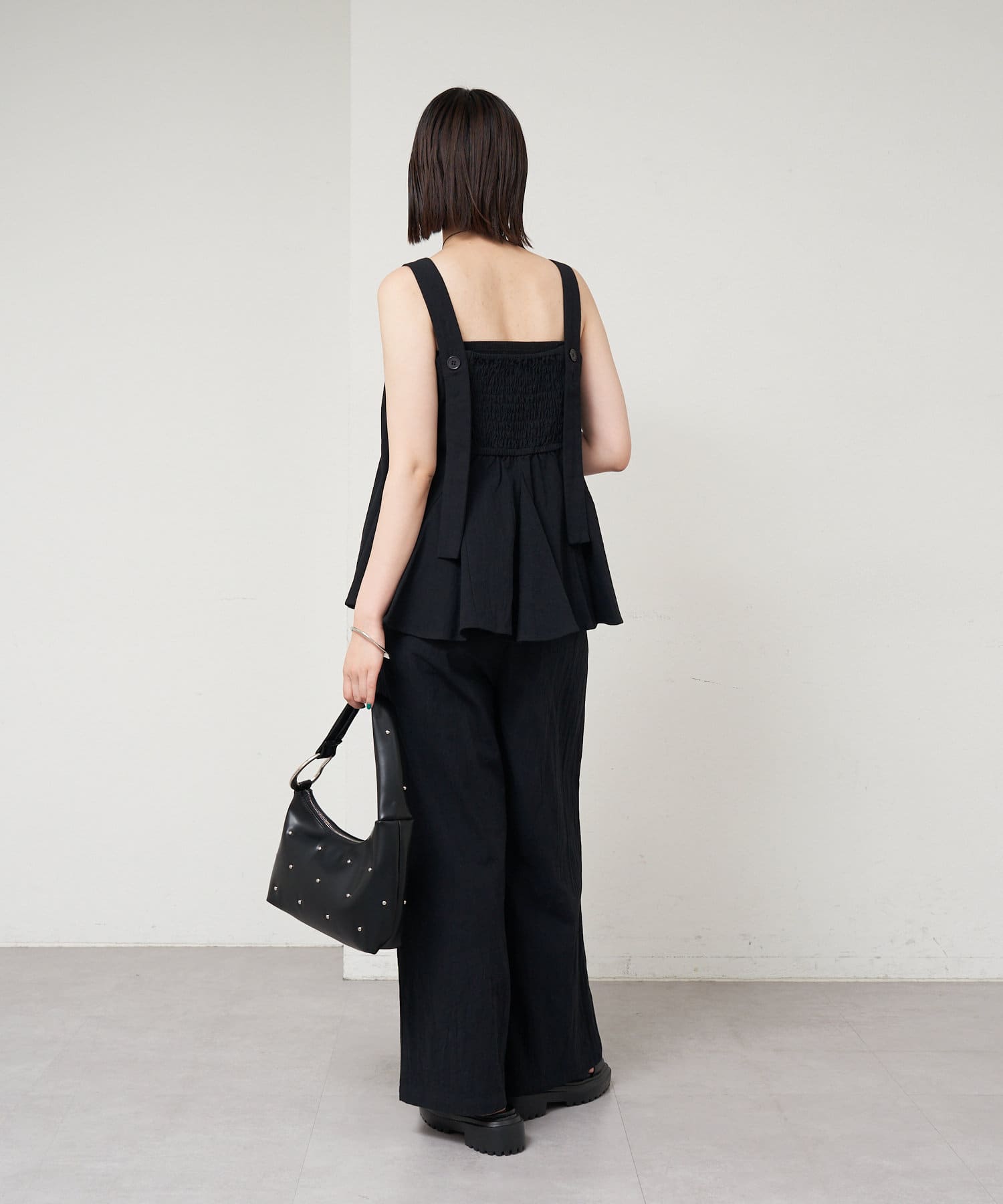 ・ビスチェとワイドパンツのセットアップがオシャレなペプラムビスチェSET UP。