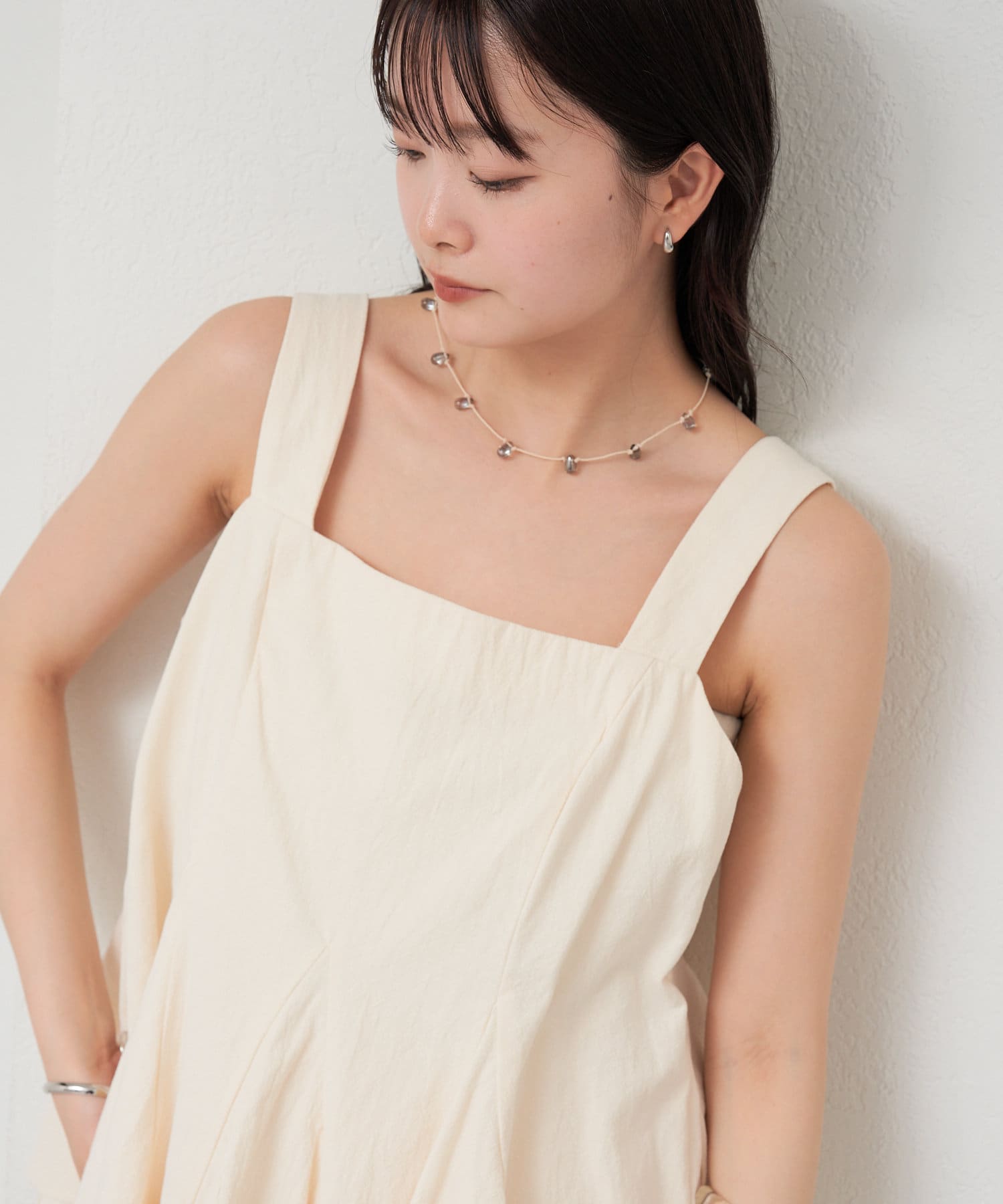 ビスチェの肩紐の部分が太めのデザインなので気になる二の腕も華奢に見えます。