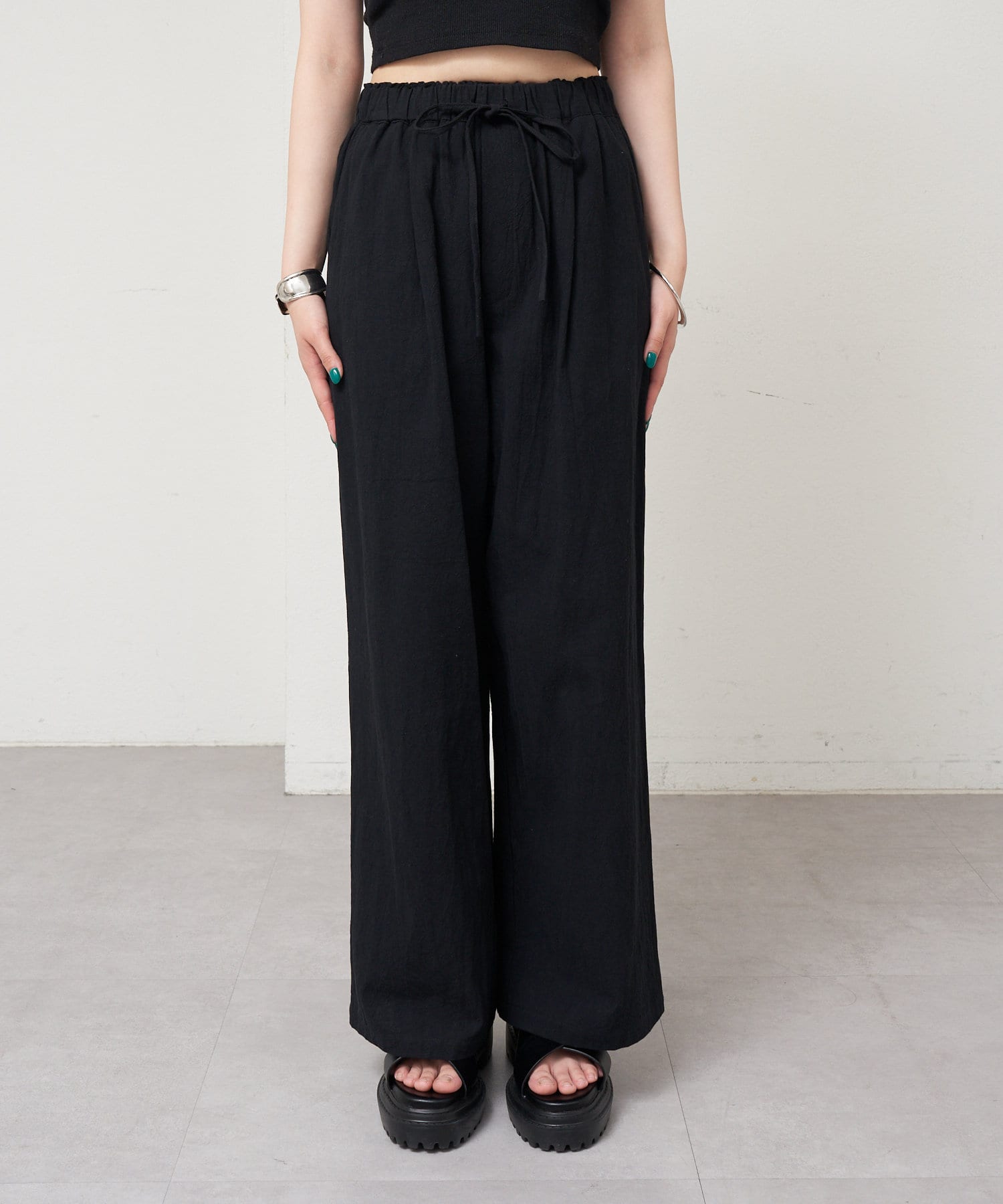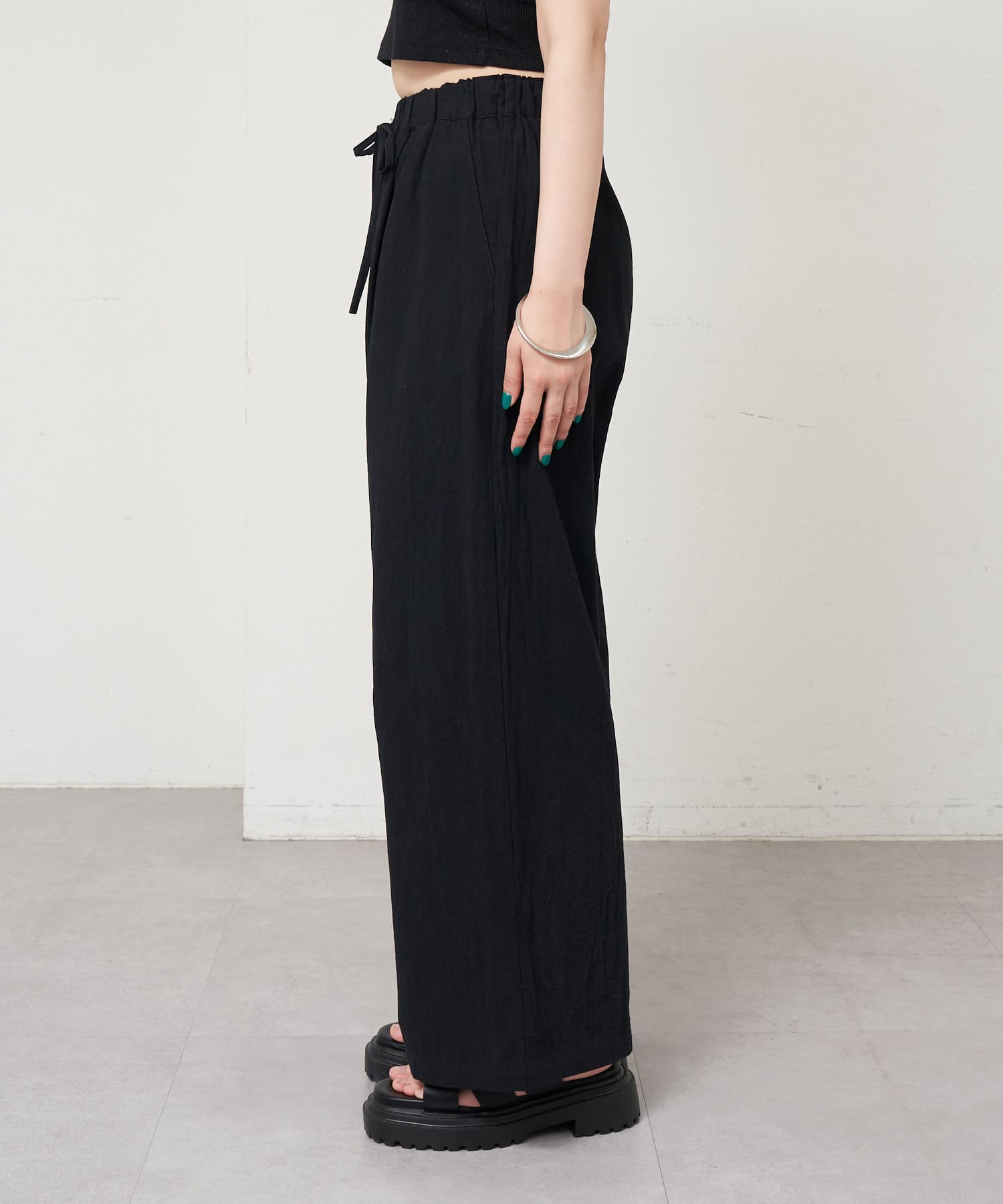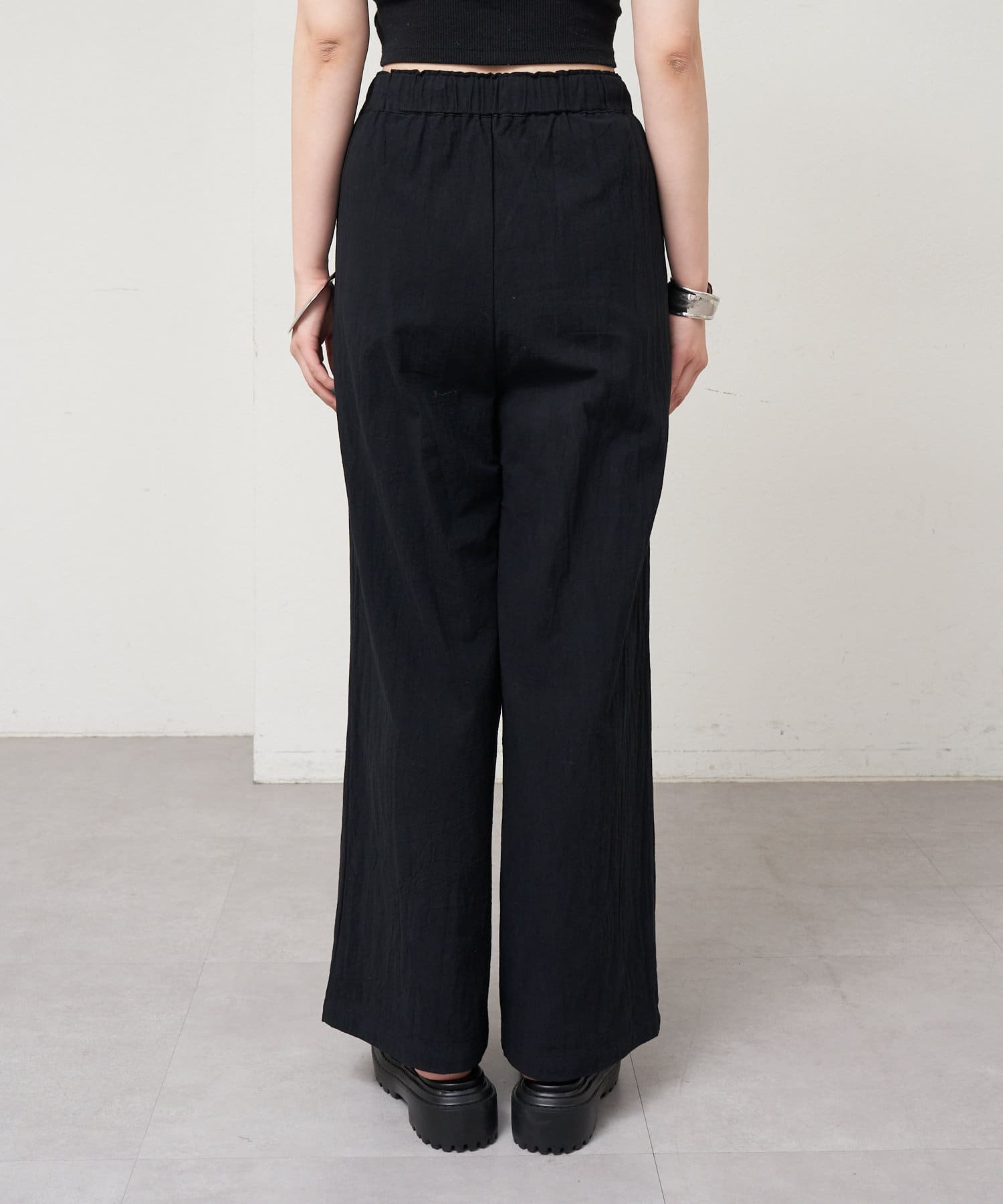 ・パンツはワイドパンツで広がりもありゆったりとして履いていただけます。ウエスト部分もゴム使用でストレスなく履けます。