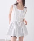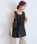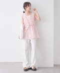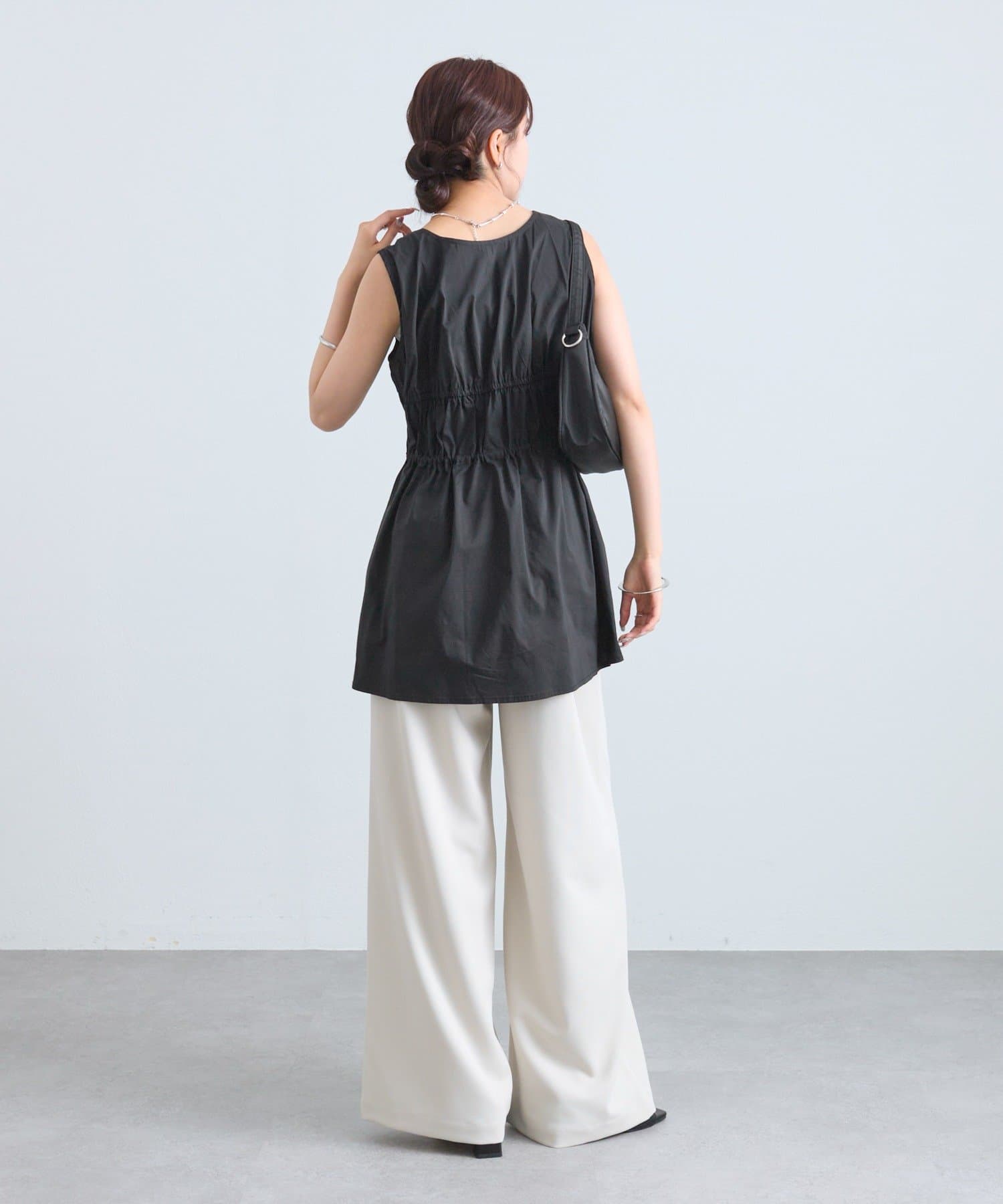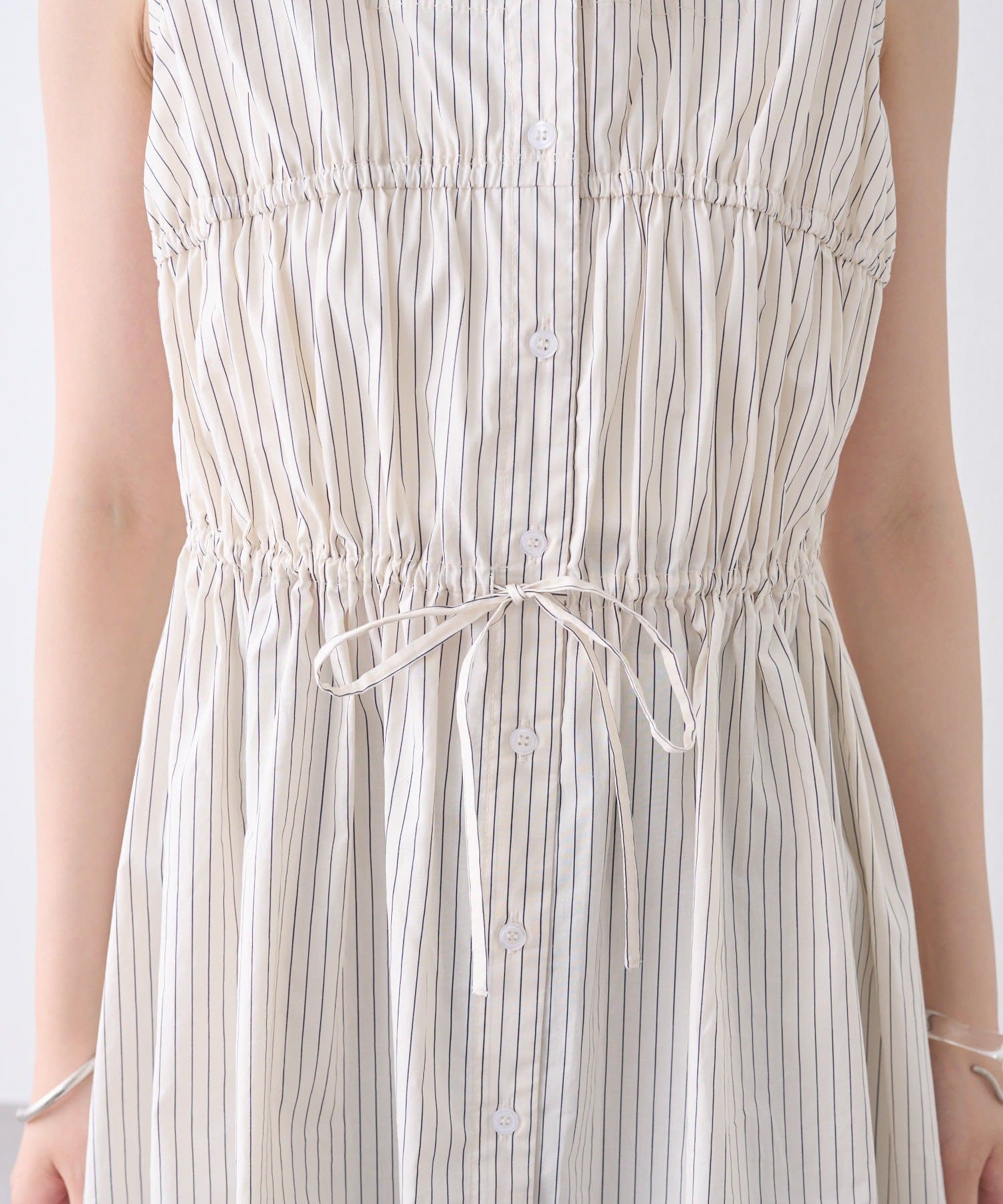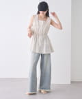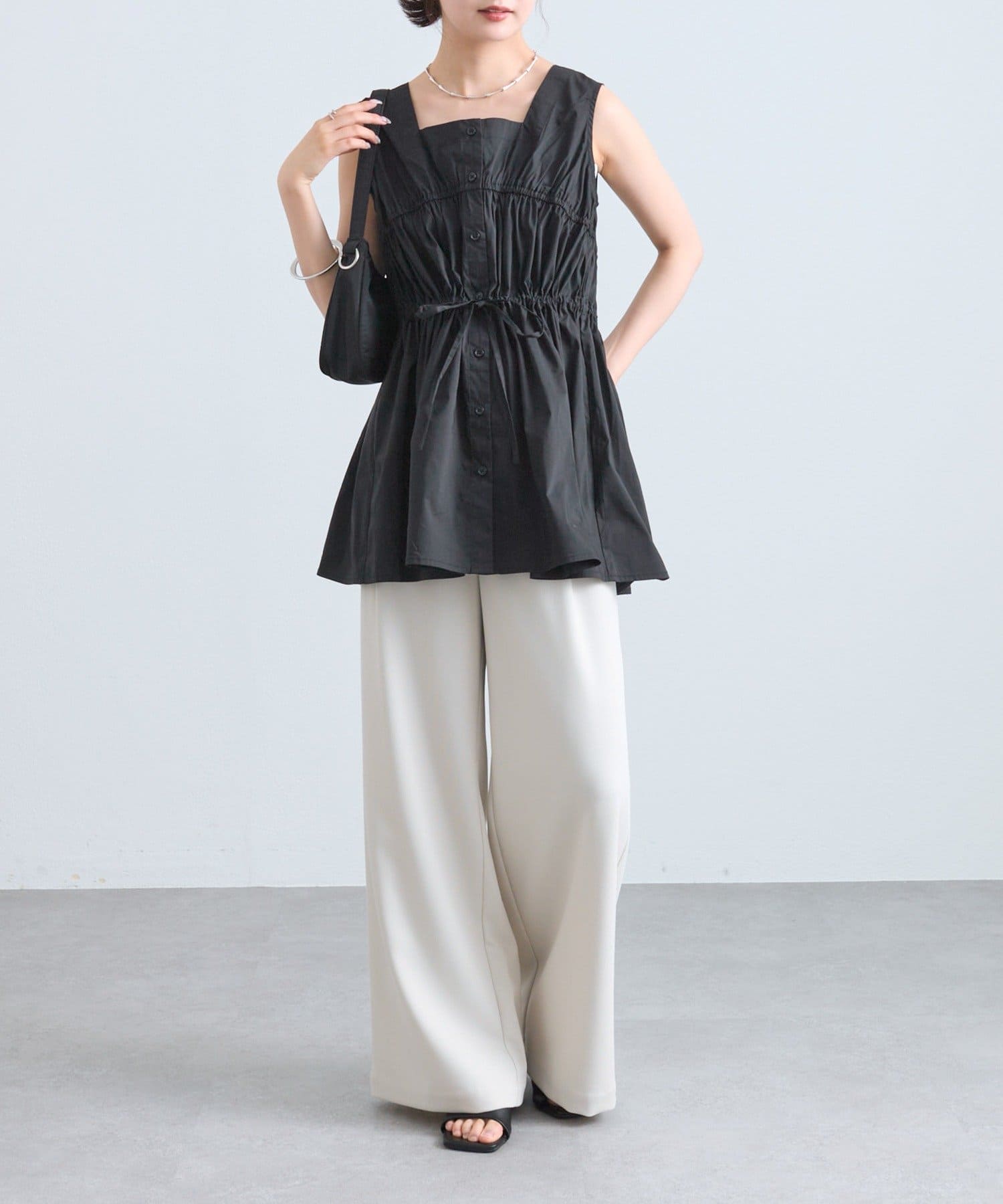 ・スマートでシャープな印象を与えるストライプ柄ですが、タンクトップのシャーリングデザインが女性らしい可愛らしい印象も表現♡