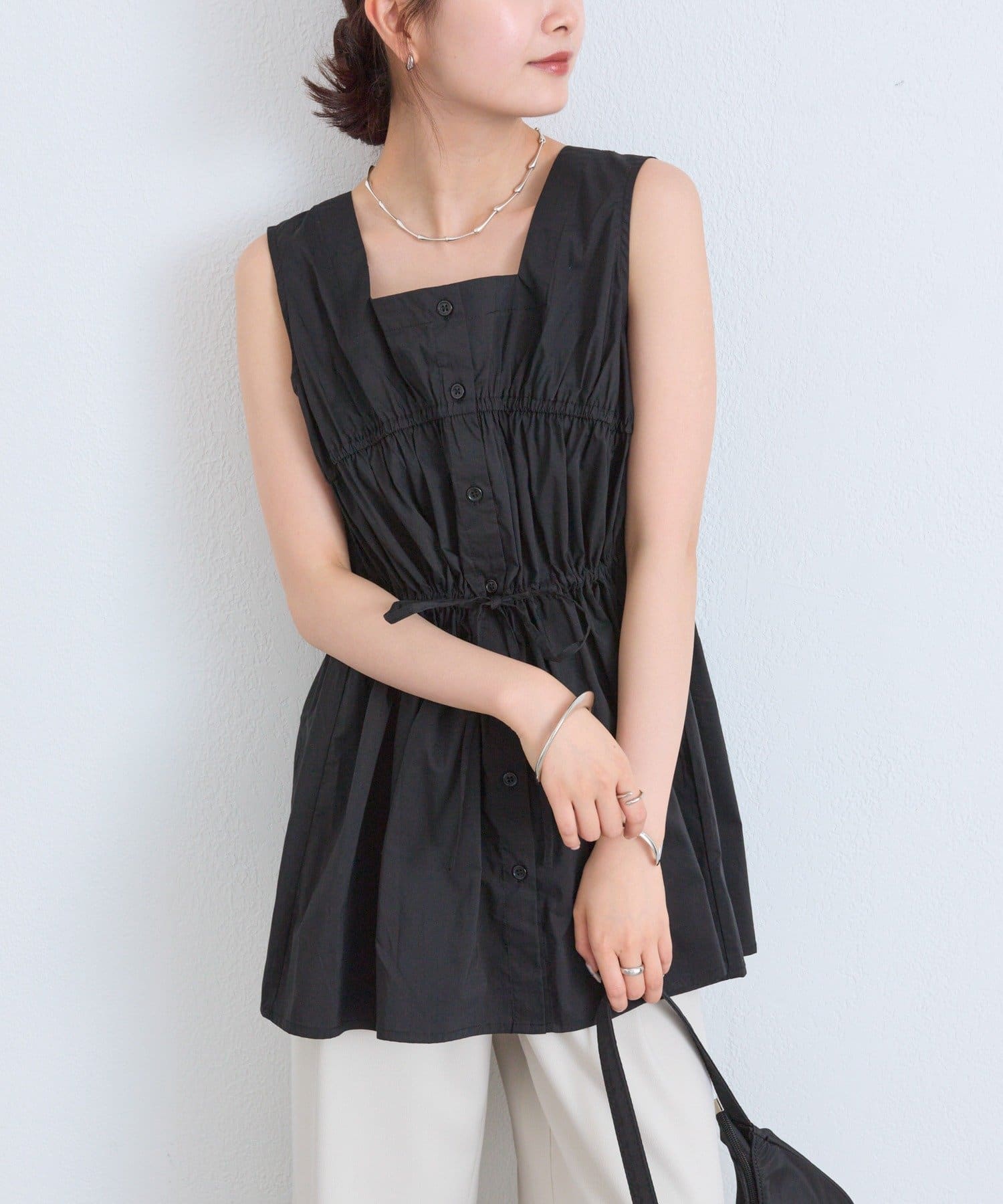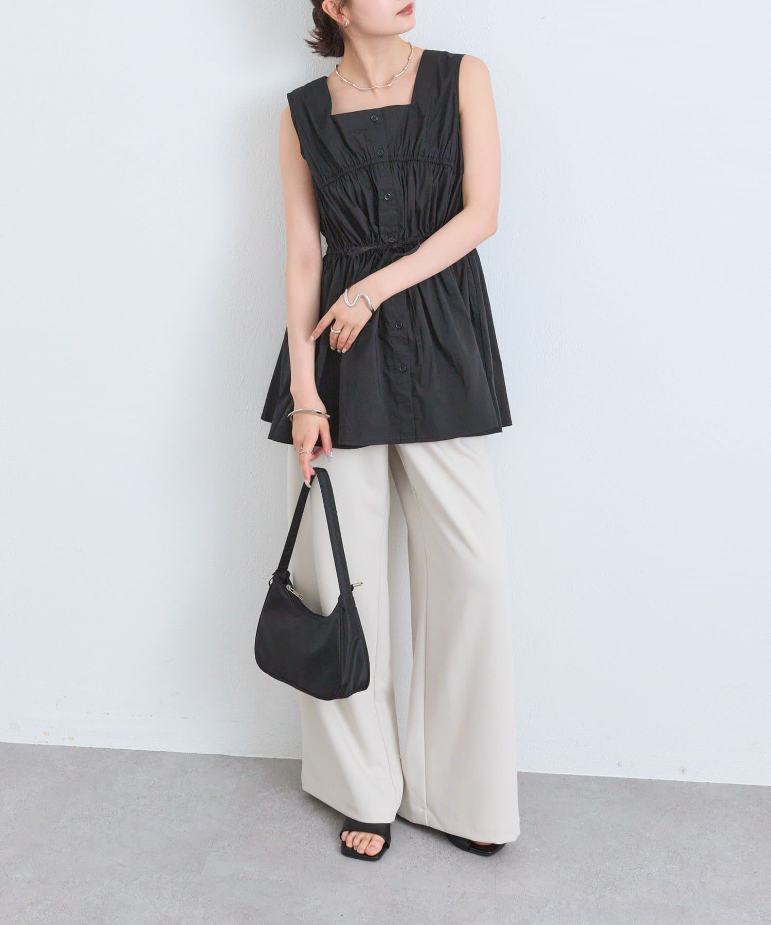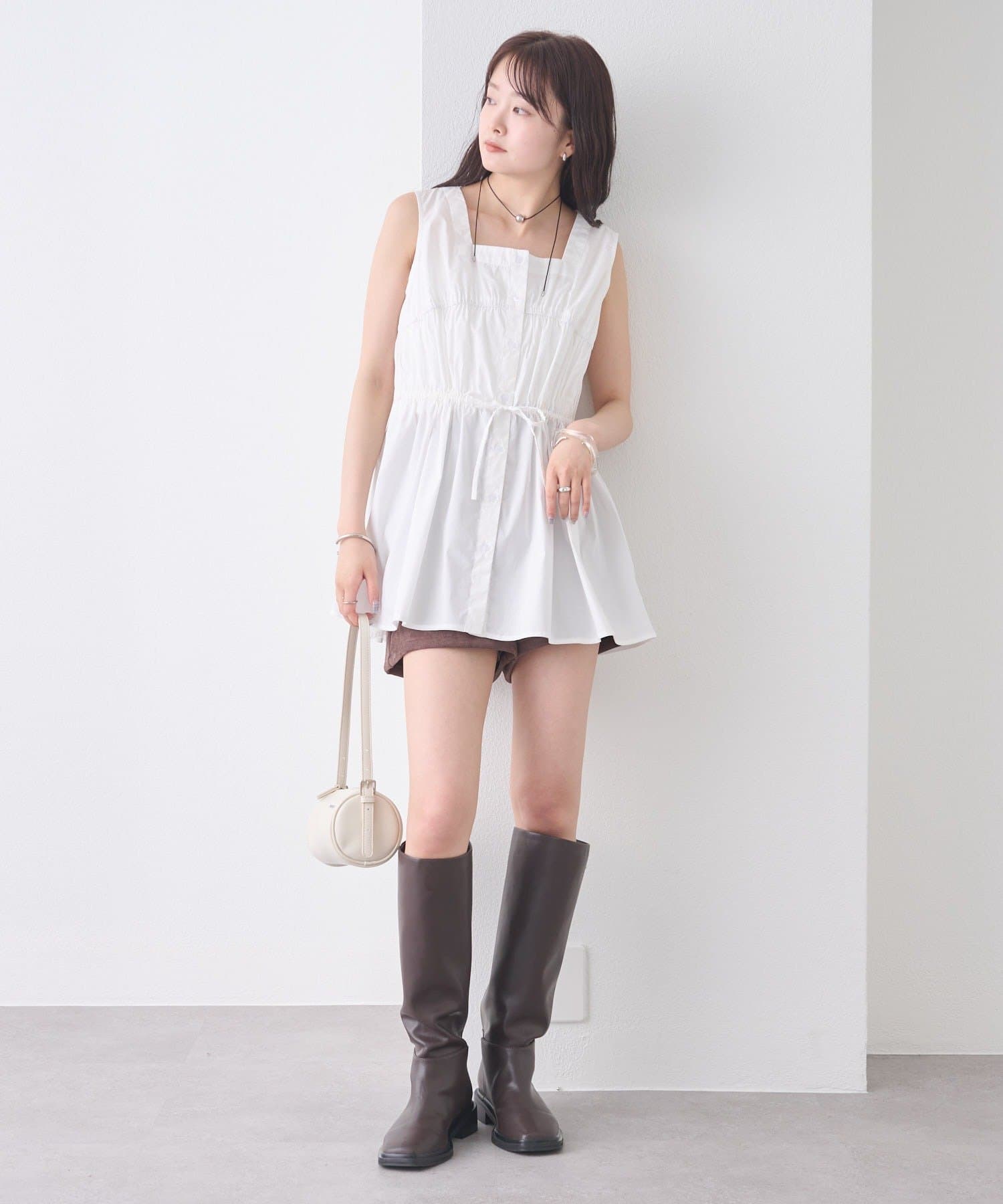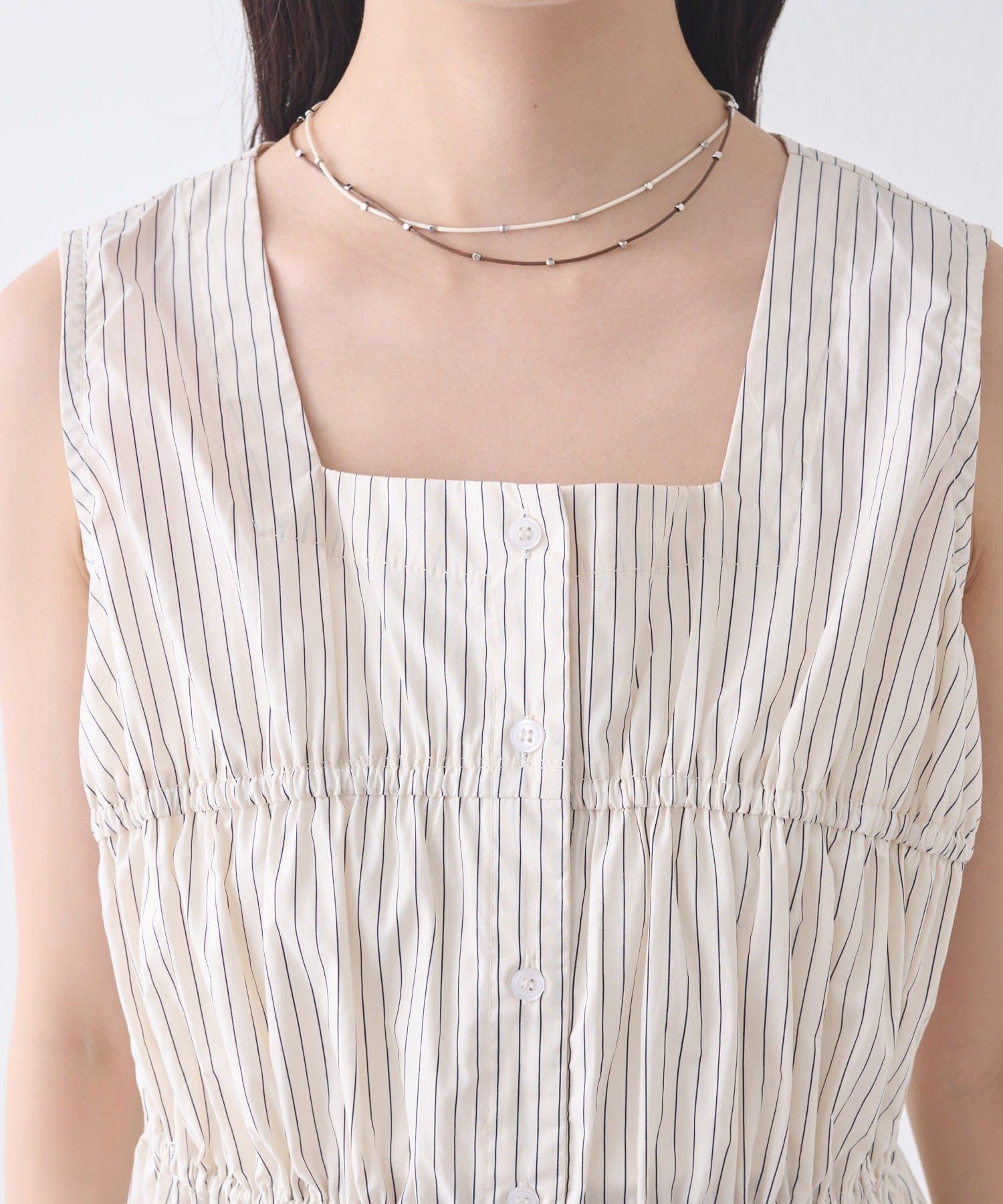 ・首元がスクエア型でデコルテ部分がよく見えるので、アクセサリーをプラスしてこなれ感を出すのも◎