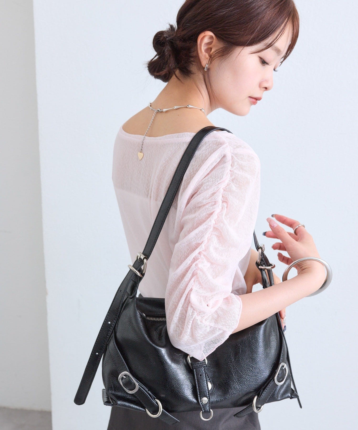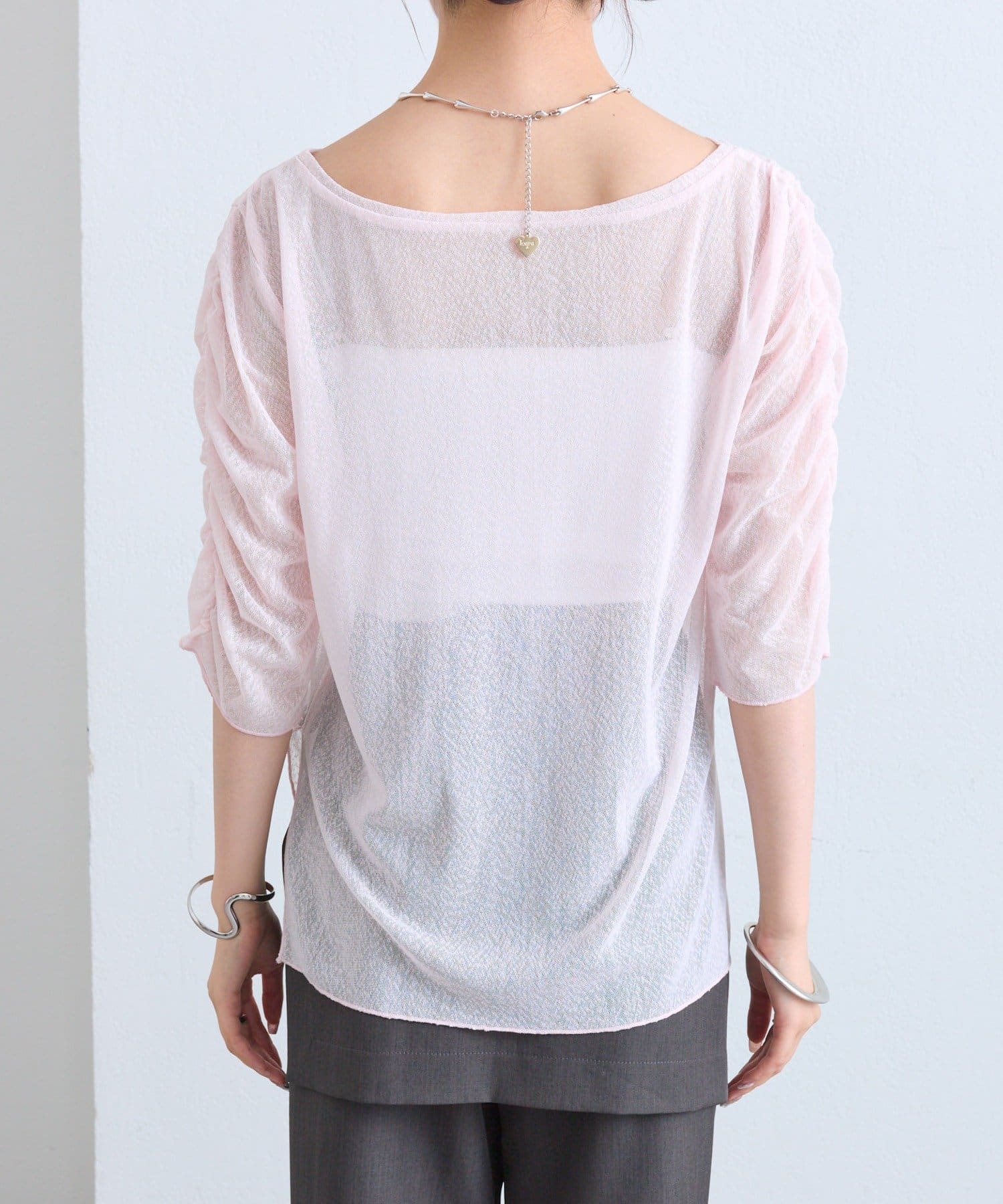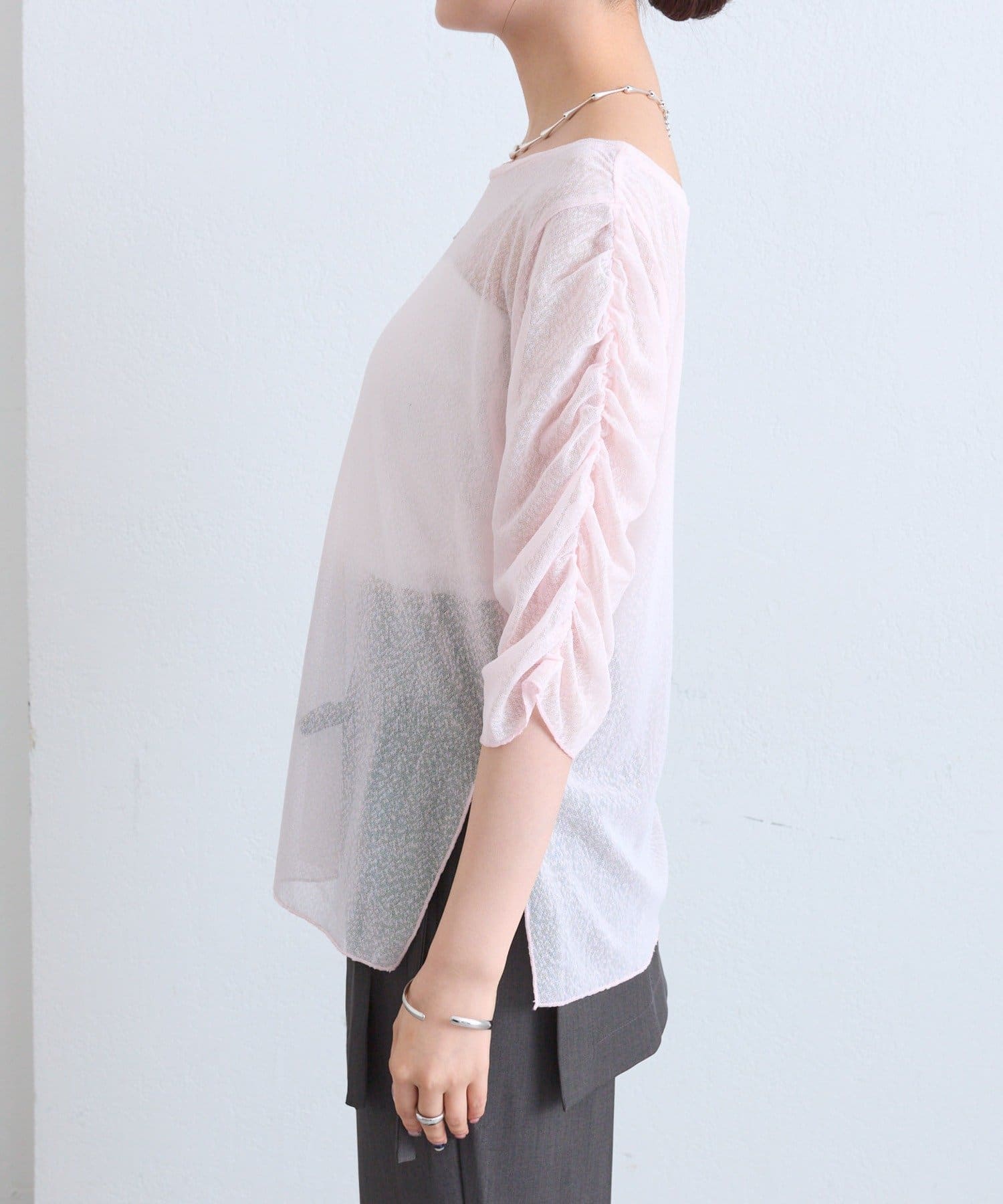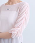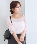 ・袖はギャザー仕様になっており、1枚でもインナーとしても着ることができる万能なトップスです。