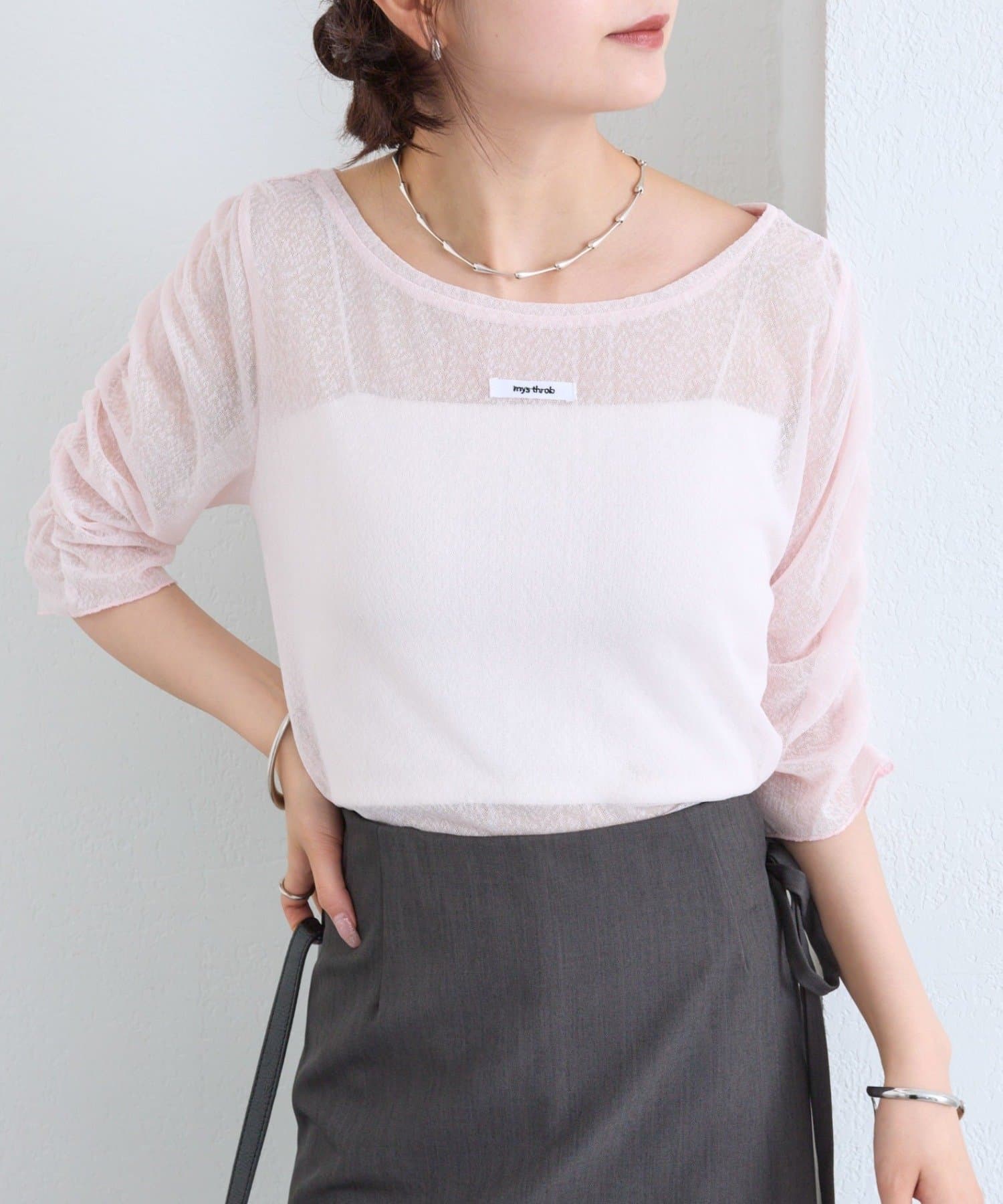 ・シアー素材で程よく透け感と横のスリットで抜け感を演出してくれるアイテム♩