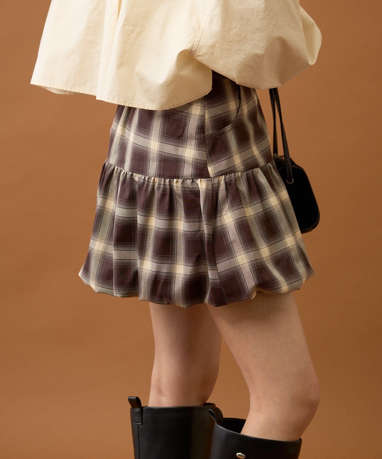 ・バルーン×チェック柄で可愛らしく、秋らしい雰囲気を与えてくれます。