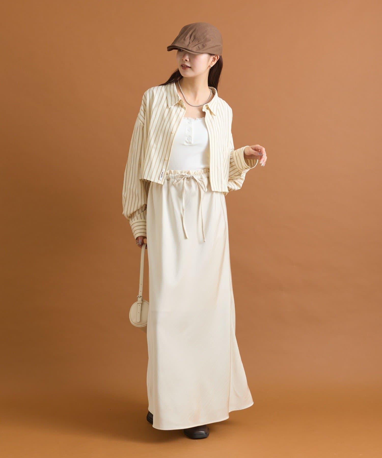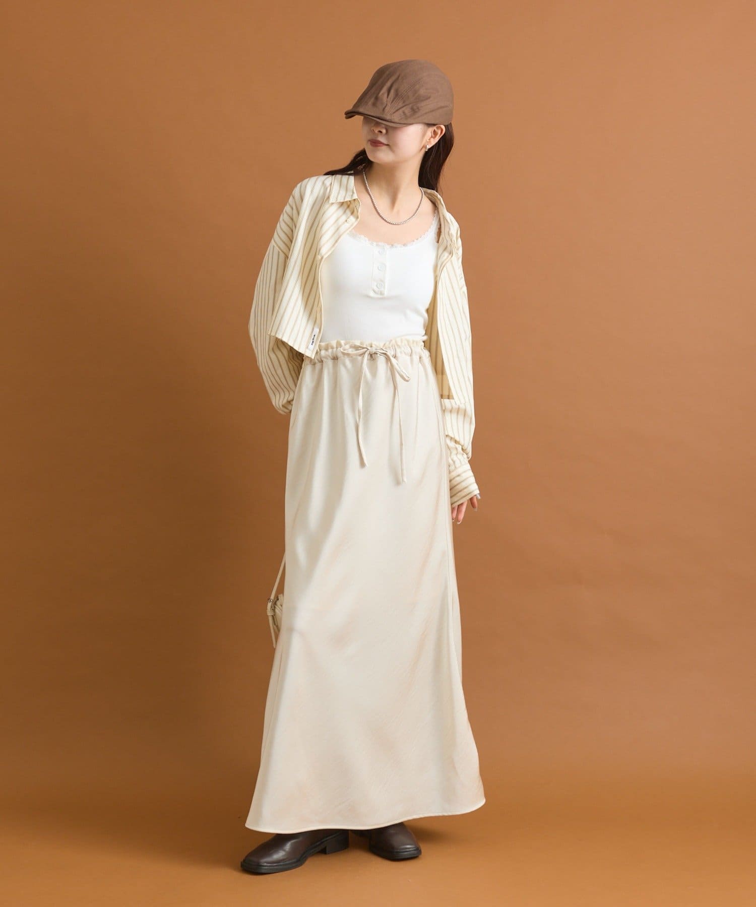 ・ウエスト周りは紐で縛れるような仕様になっておりインをしても可愛く着用できます。