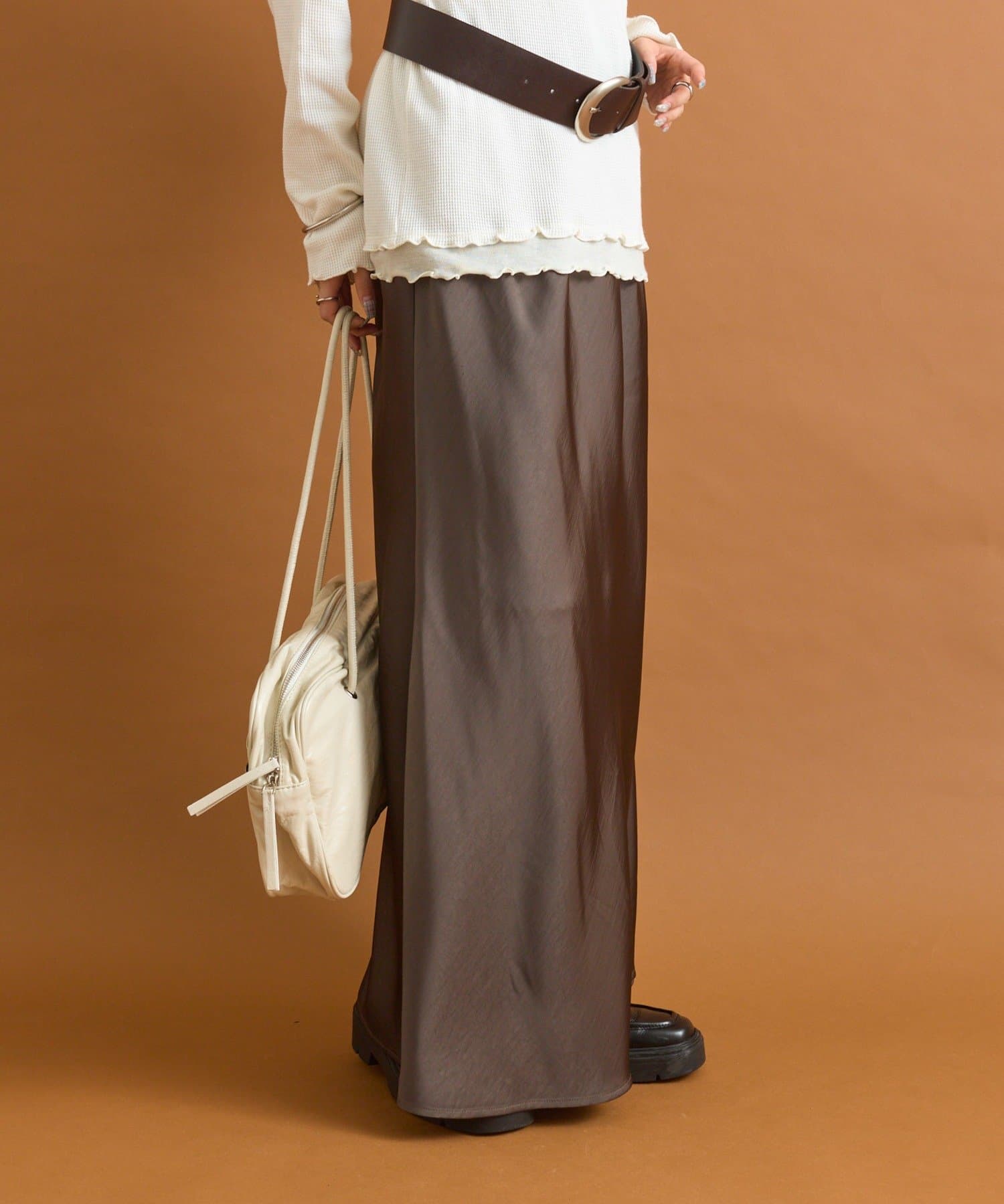・マーメードシルエットでありながらも、足先に向かって程よい広がり仕様であるためシルエットを拾いすぎない美シルエットなアイテムです◎