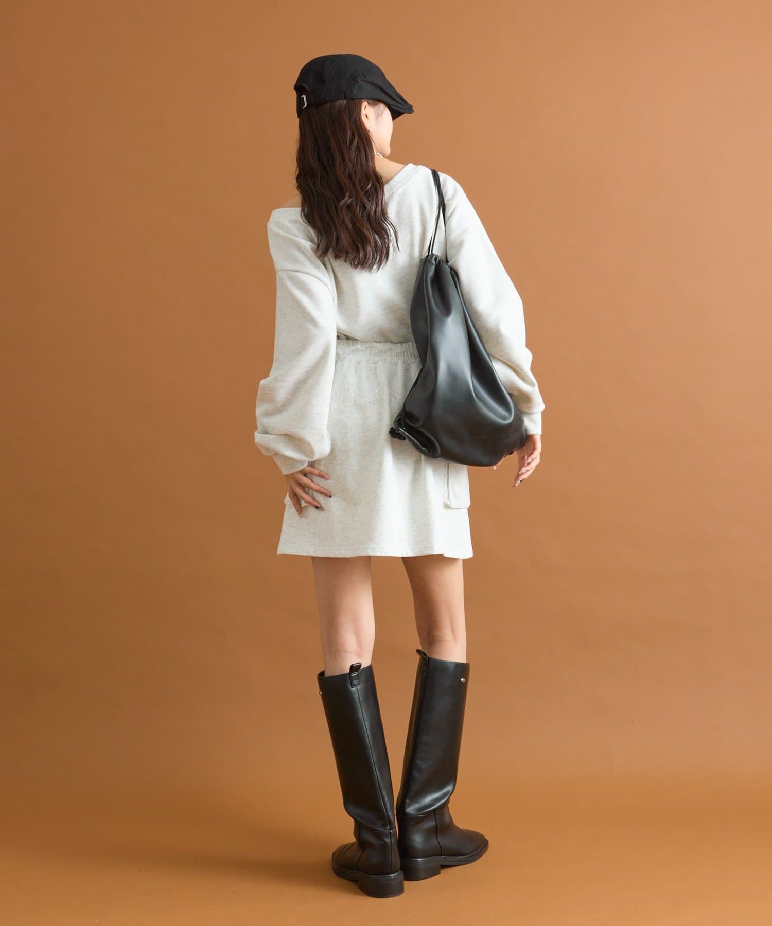 ・スウェット素材のトップスと合わせてセットアップのようなスタイリングも◎