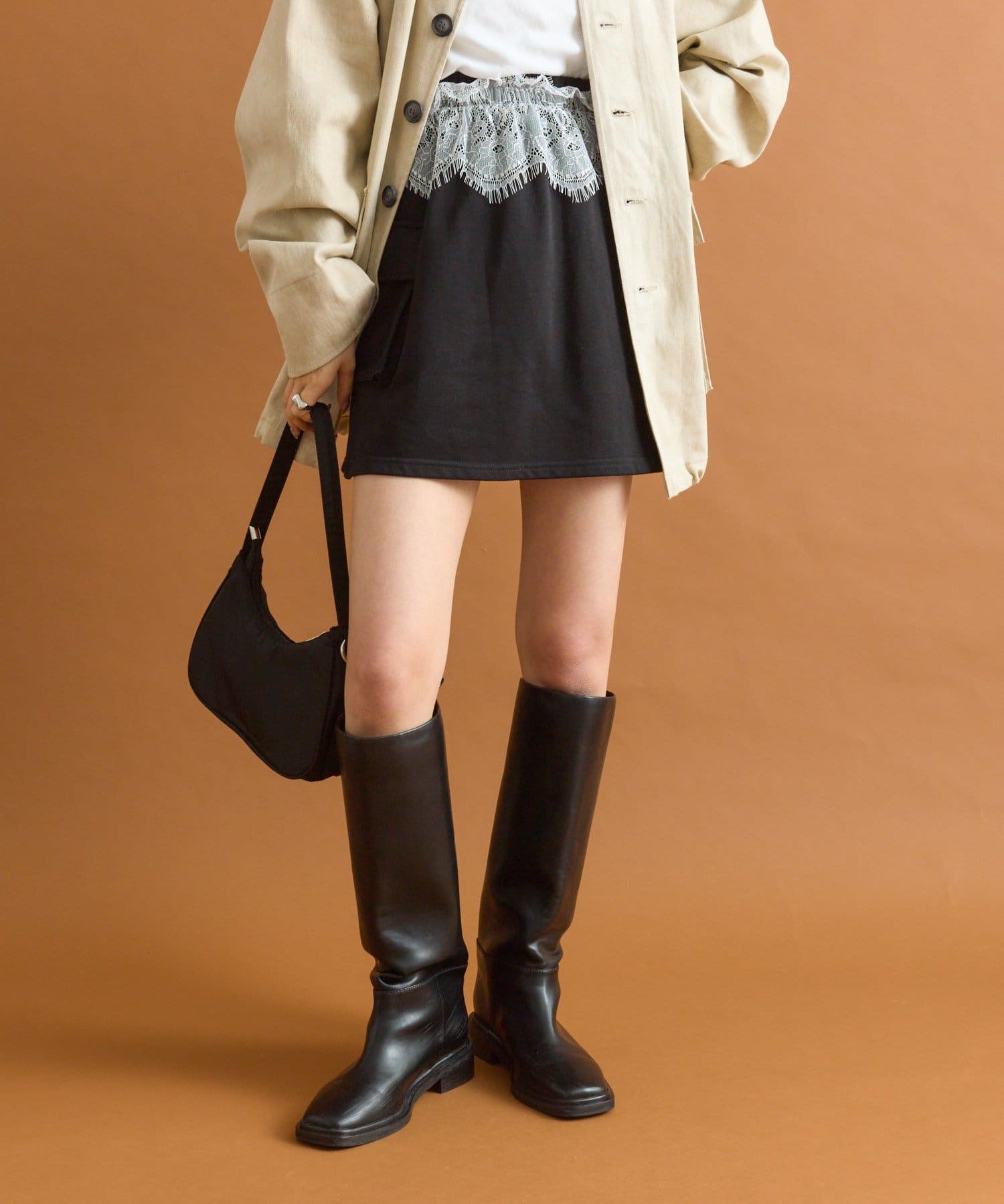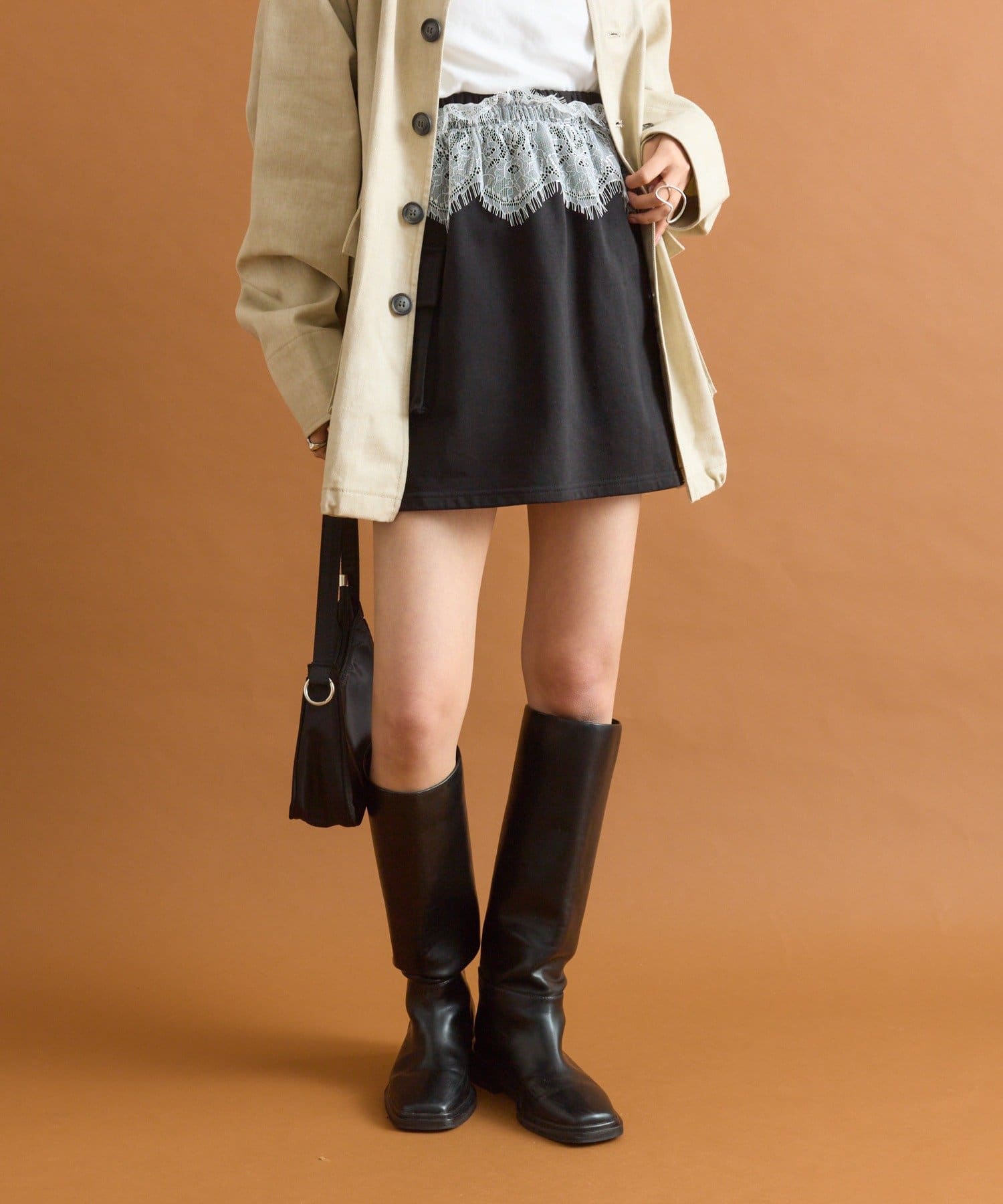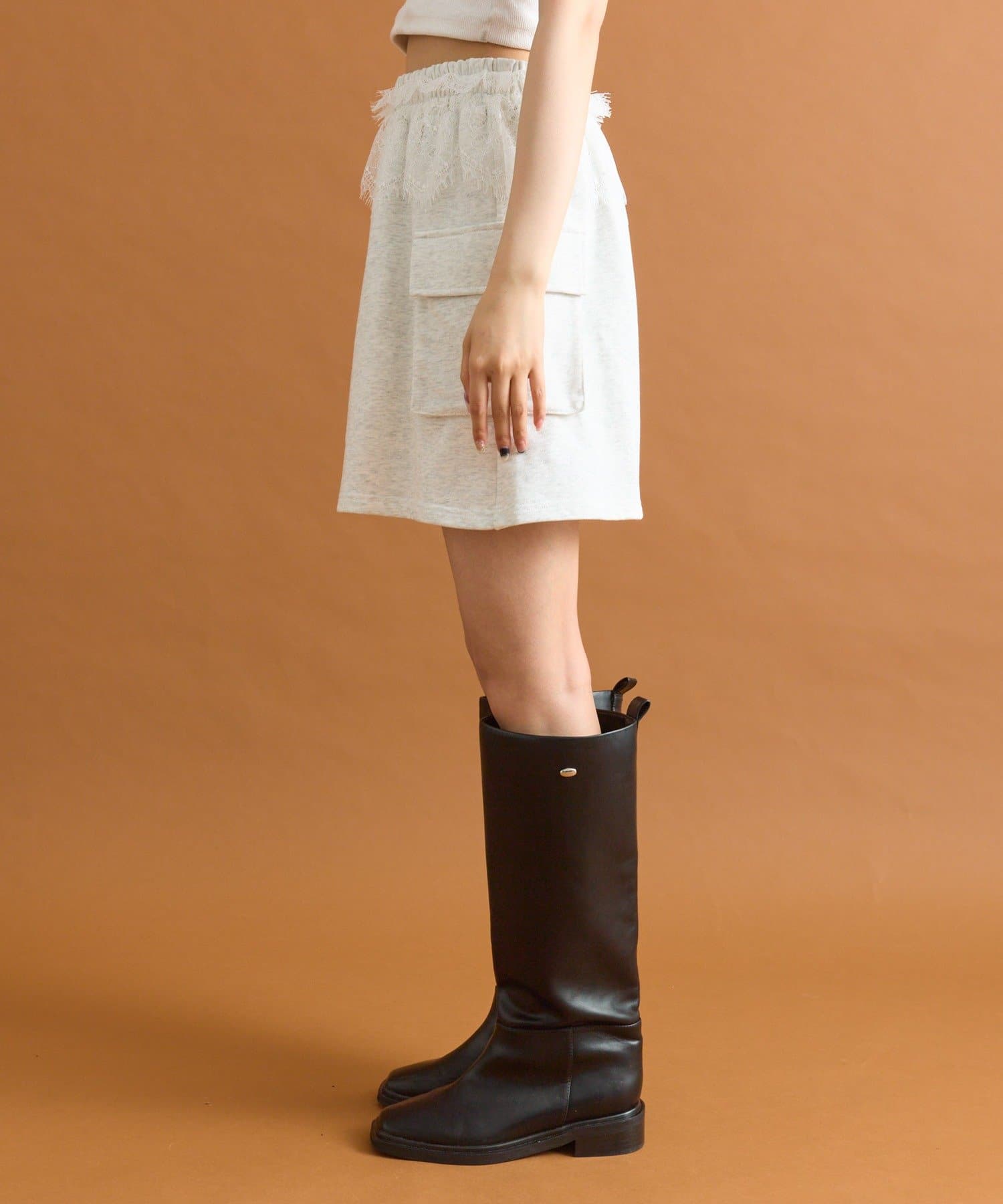 ・ウエスト部分にほどこされたレースが目を惹きます。スウェットのカジュアルさとレースの甘さがちょうど良いバランスです♡
