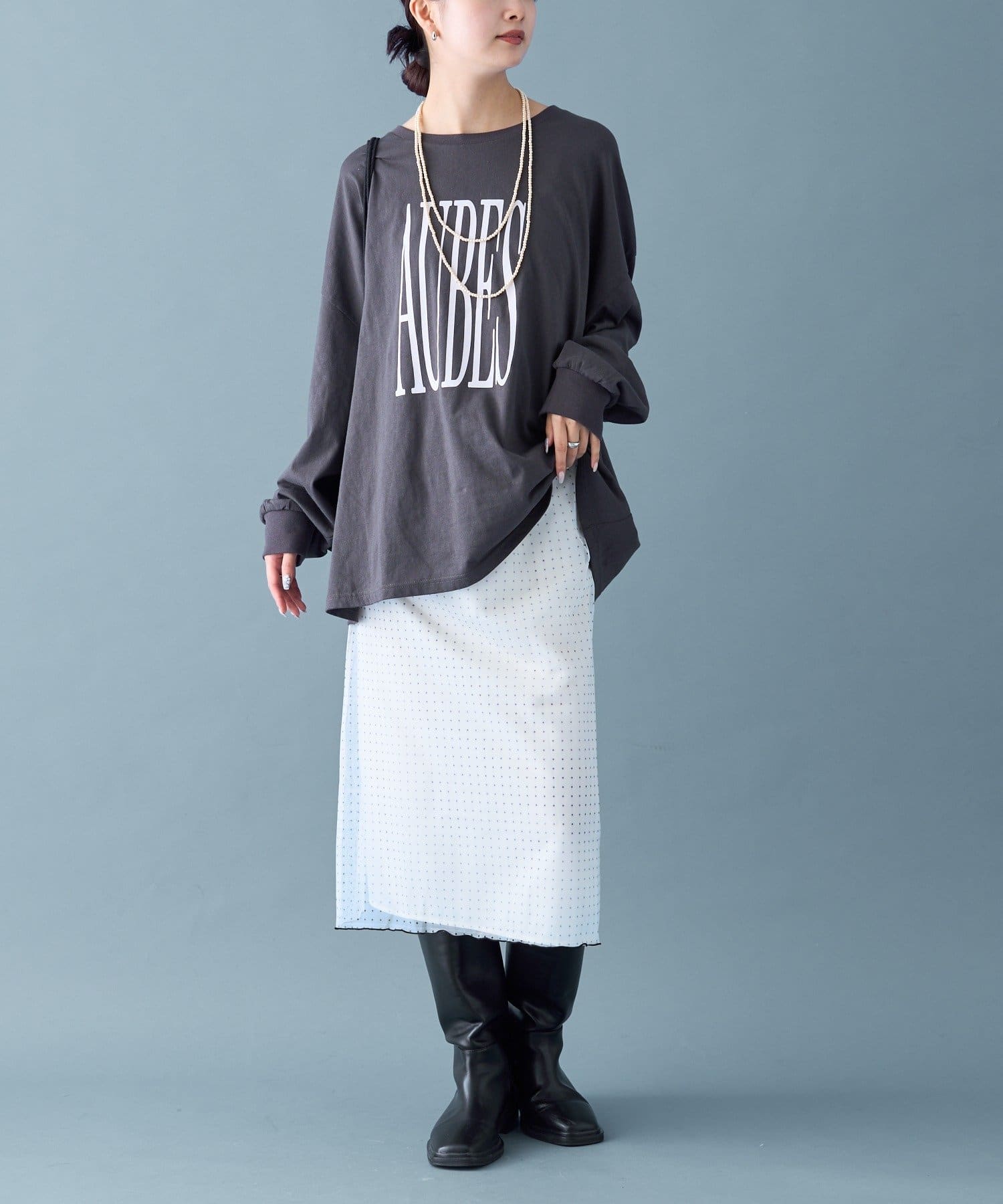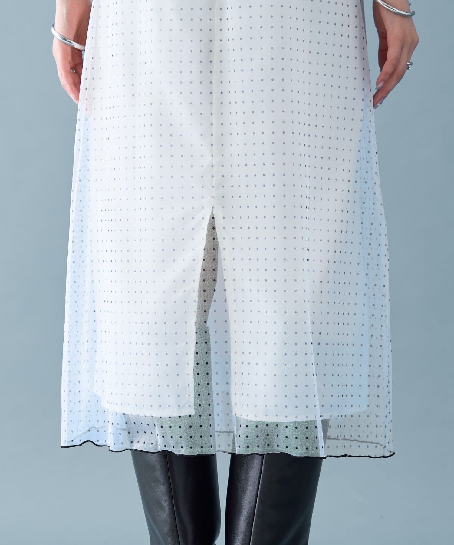 ・ドット柄とチュールの素材が女性らしい可愛さで、お出かけに1着は持っておきたいアイテムです◎