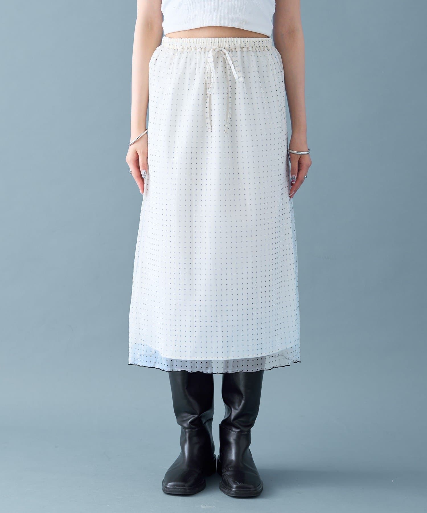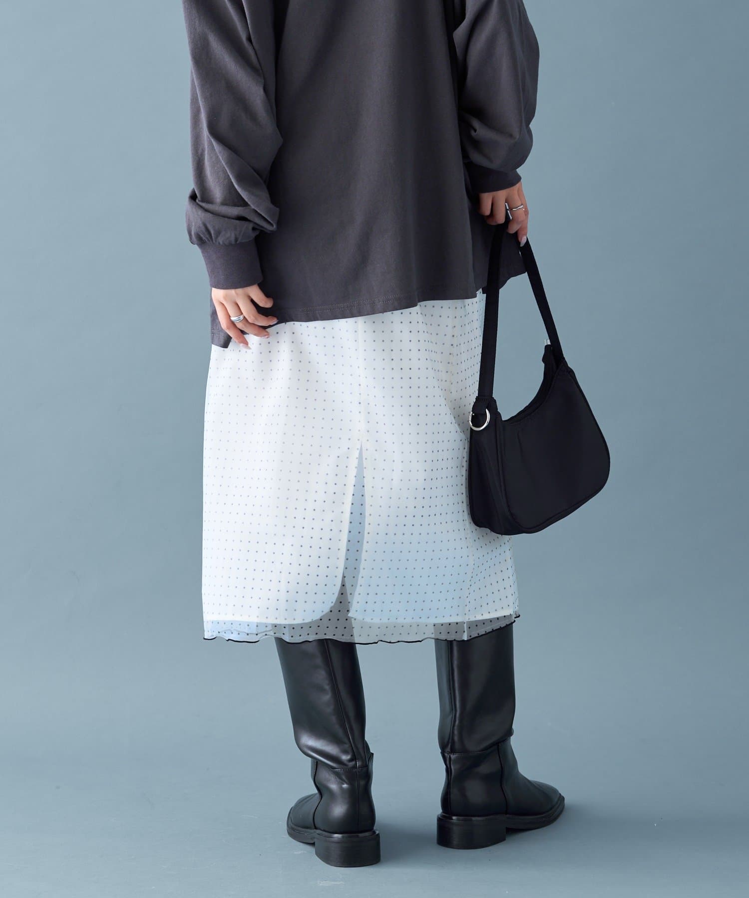 ・可愛らしいドット柄と透け感が特徴の華やかなドットチュール スカート♡