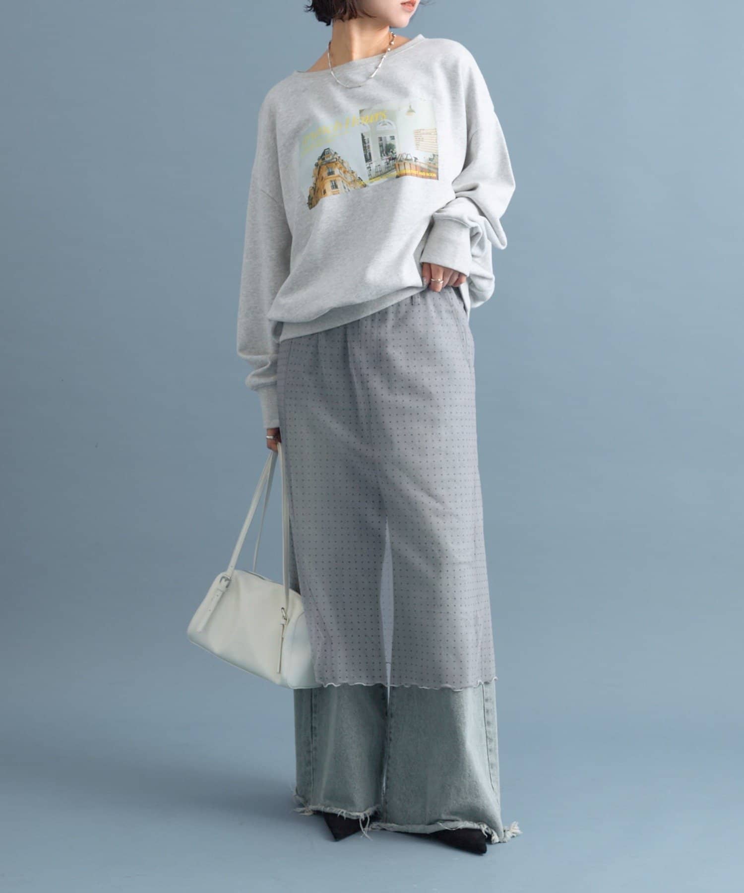 ・チュールだけで着用できるのも嬉しいです!デニムパンツと合わせると今っぽいスタイルになれます!