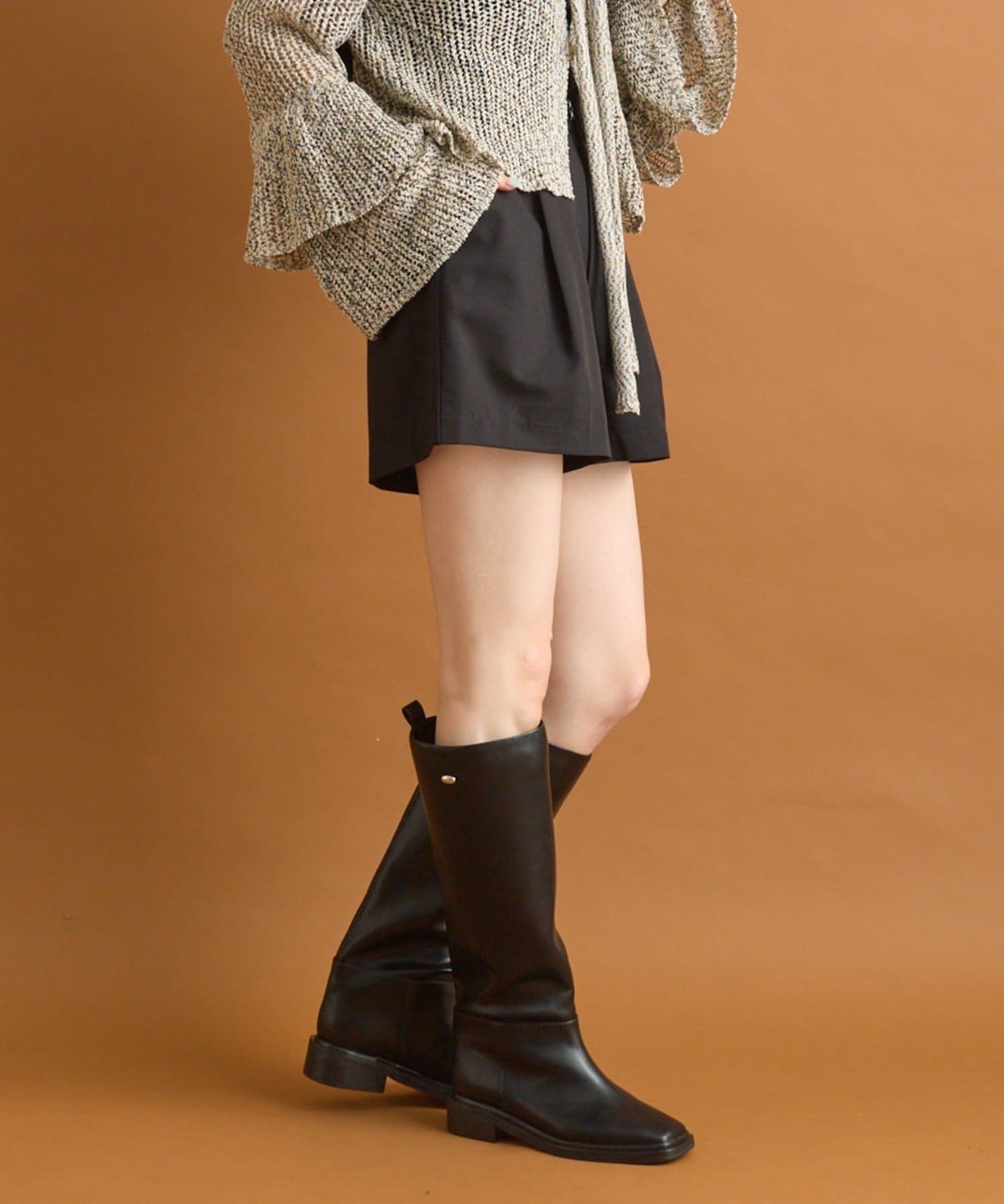 ・ロングブーツと合わせて目を惹くスタイリングに♡